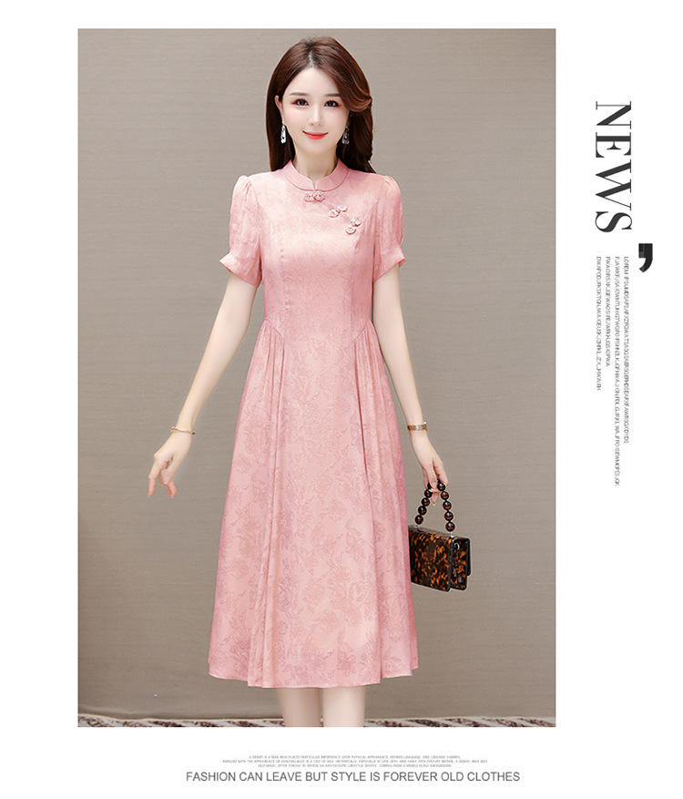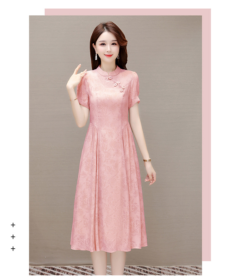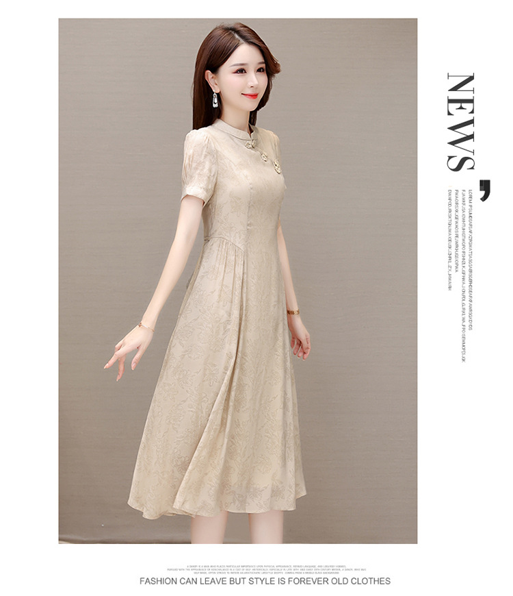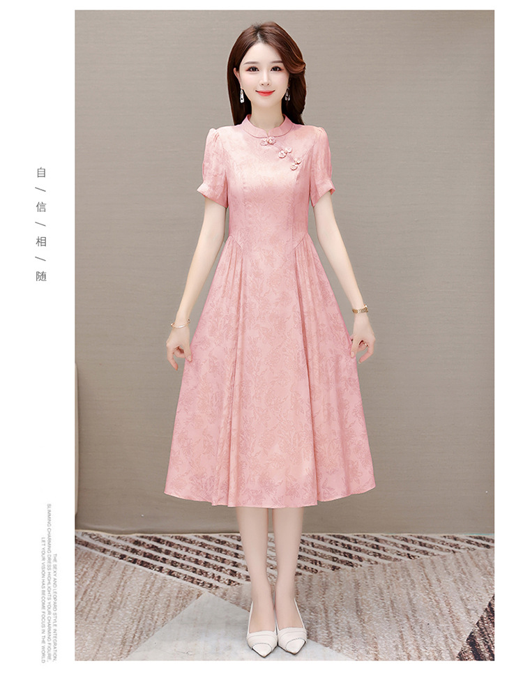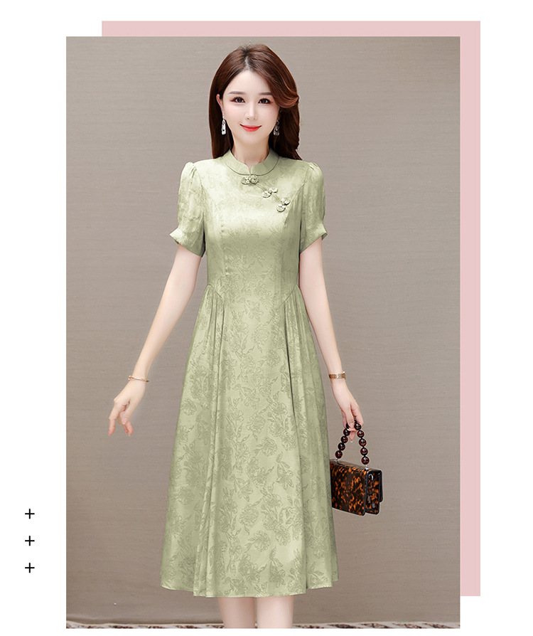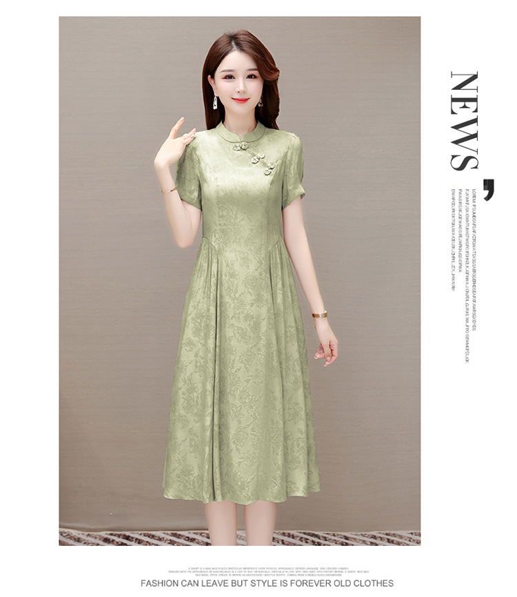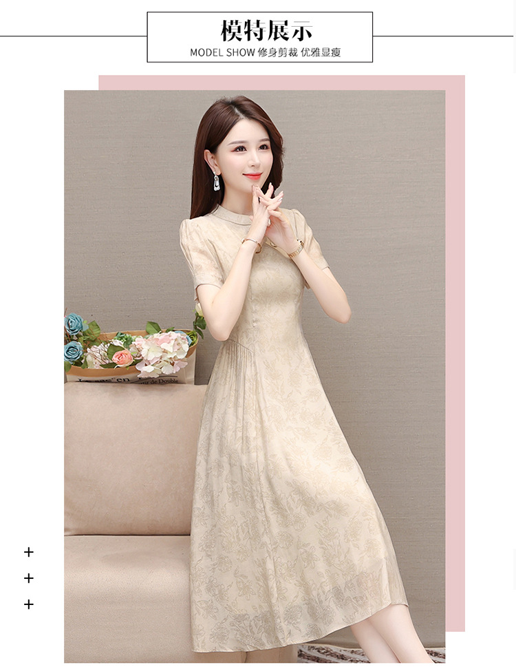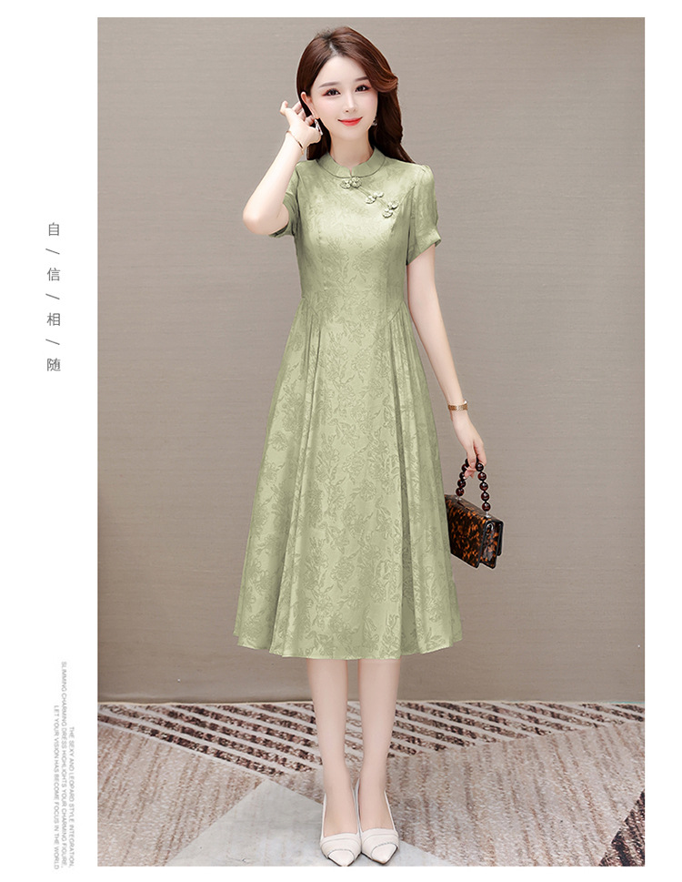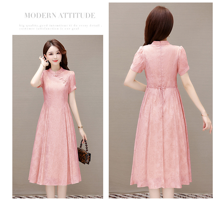 复古连衣裙印花裙中长款妈妈装短袖旗袍裙高腰A字裙QYM-YX-LC23051-Y
