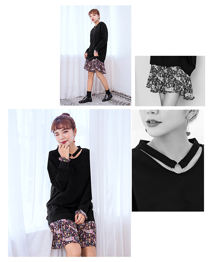 娜娜日记2018春装新款女装时尚碎花粉色宽松百褶长袖连衣裙女冉