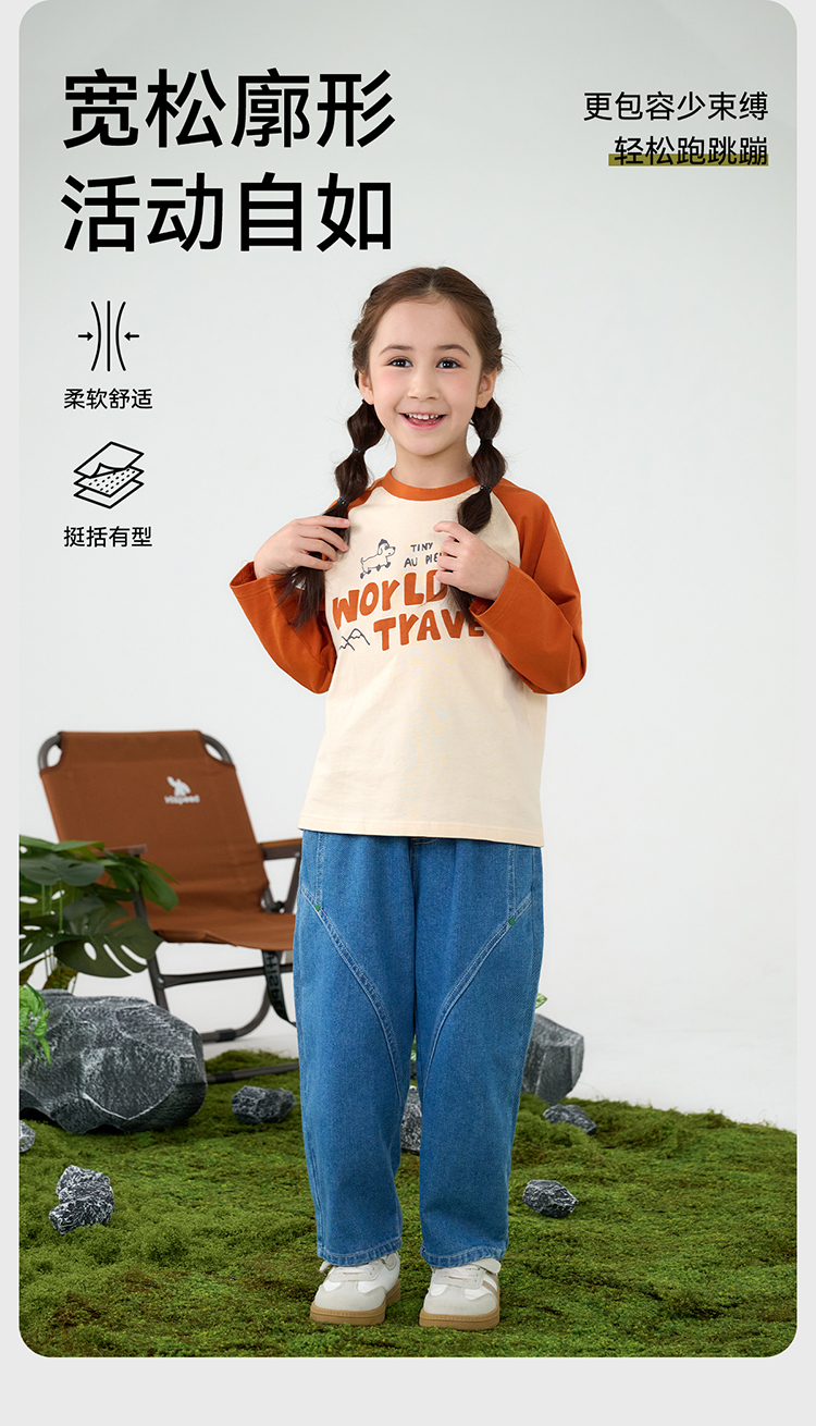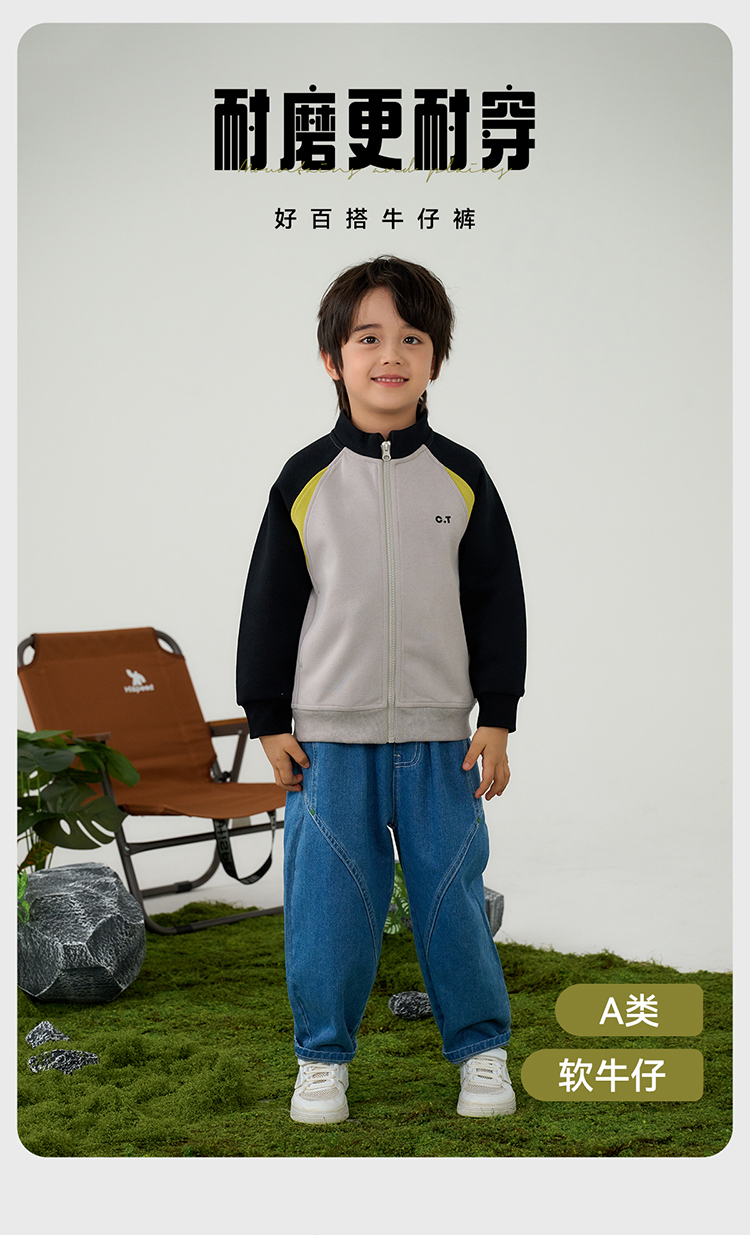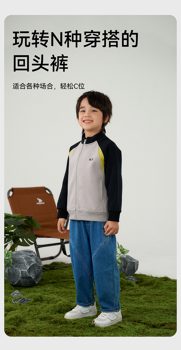 棉花堂春款潮酷分割百搭牛仔童装裤-FD61105