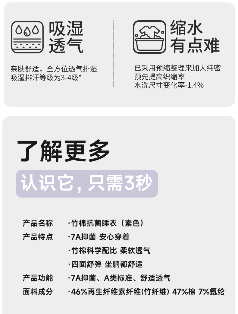 竹棉抗菌睡衣(素色)