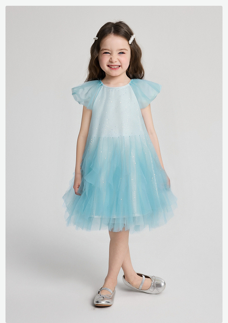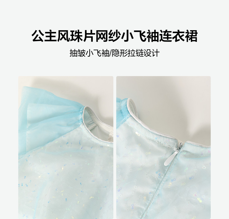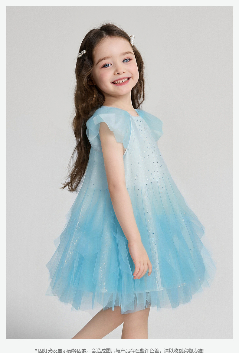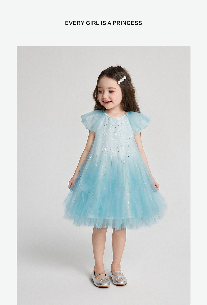 笛莎Deesha 2026年夏季新款小童女童精致公主网纱小飞袖连衣裙珠片连衣裙
