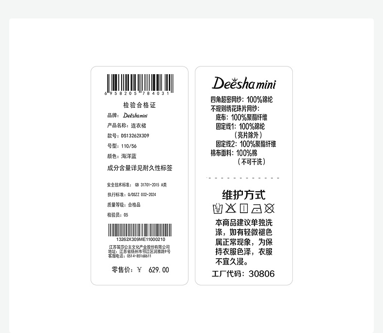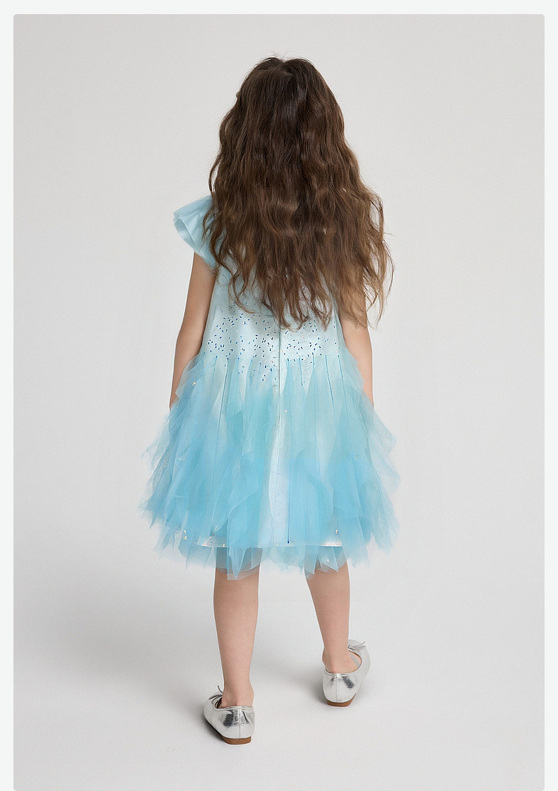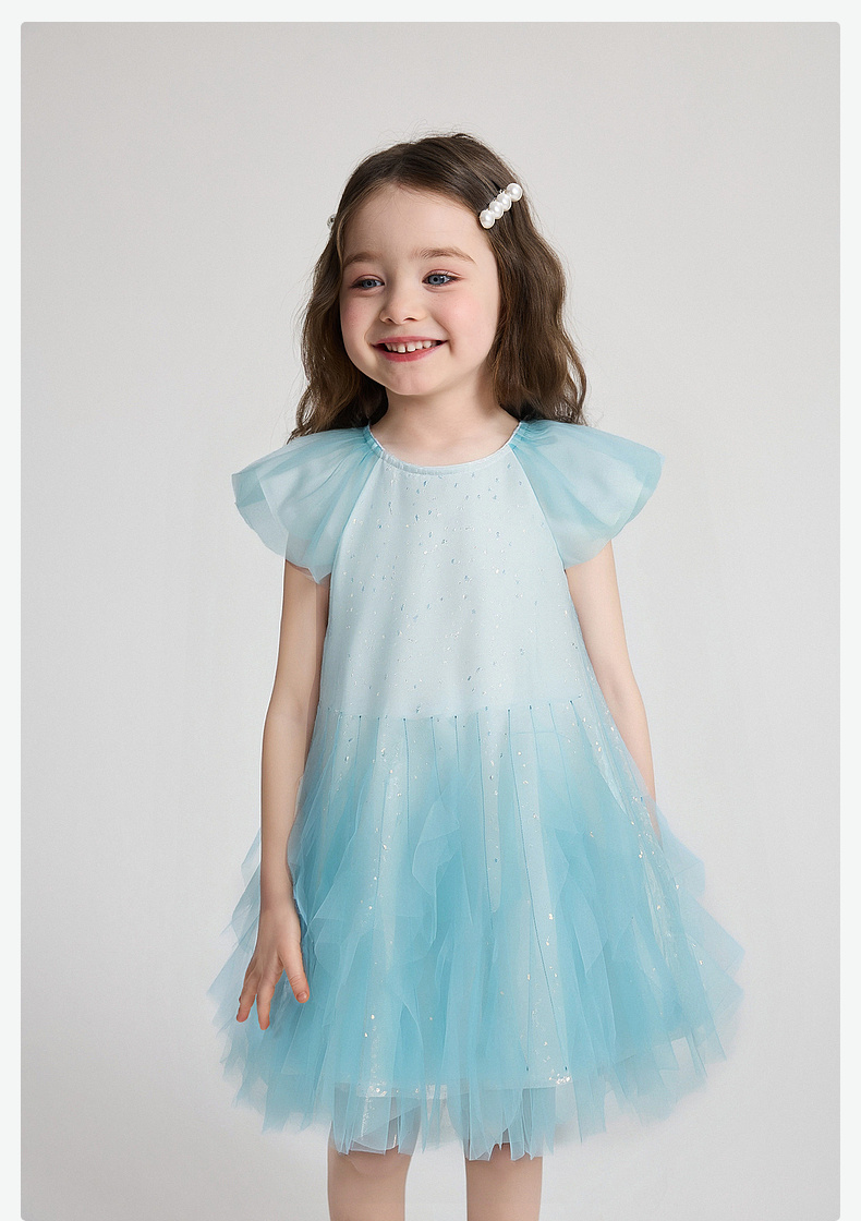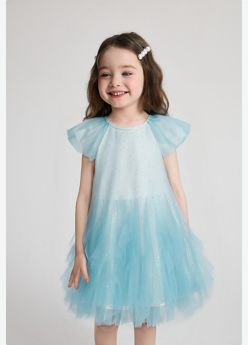 笛莎Deesha 2026年夏季新款小童女童精致公主网纱小飞袖连衣裙珠片连衣裙