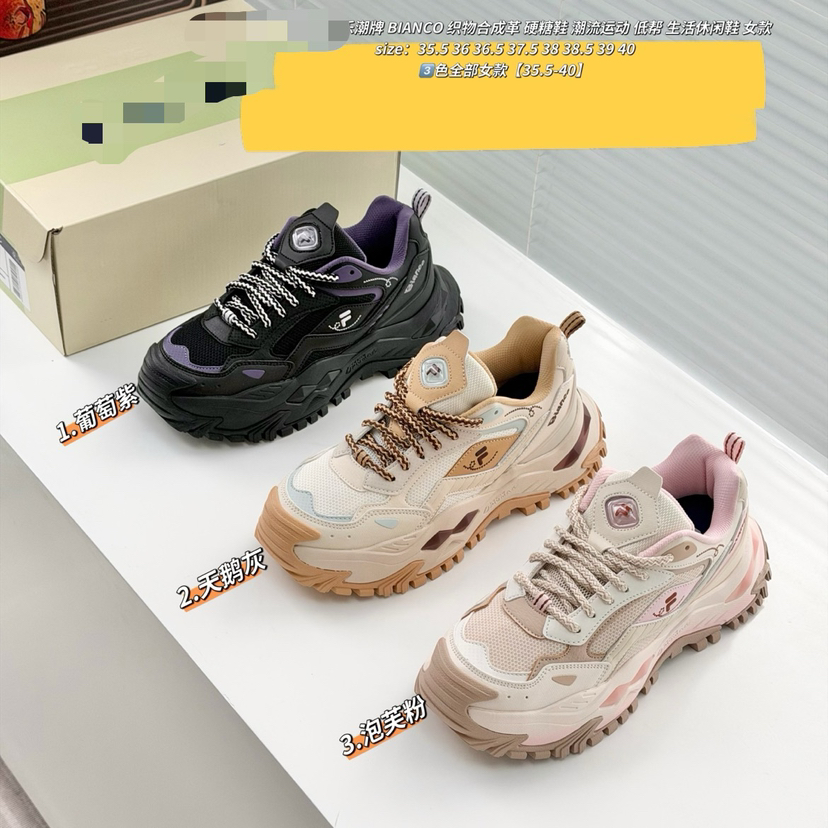 去年走了不少的硬糖系列,依旧老渠道!今年出三色,可谓少女感满满!品质不在赘述,直接看实拍! 增高运动老爹鞋,鞋面上层次丰富感的穿插设计,将流畅的线条美感演绎的恰到好处,增添炫酷时尚感,复古厚底同时加载轻能发泡科技,有效提升搭配效果,更赋予轻量缓震性的舒适穿着体验。