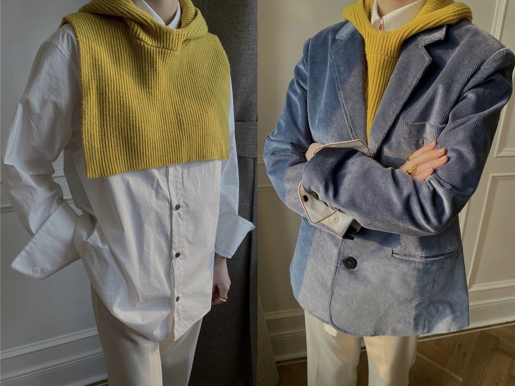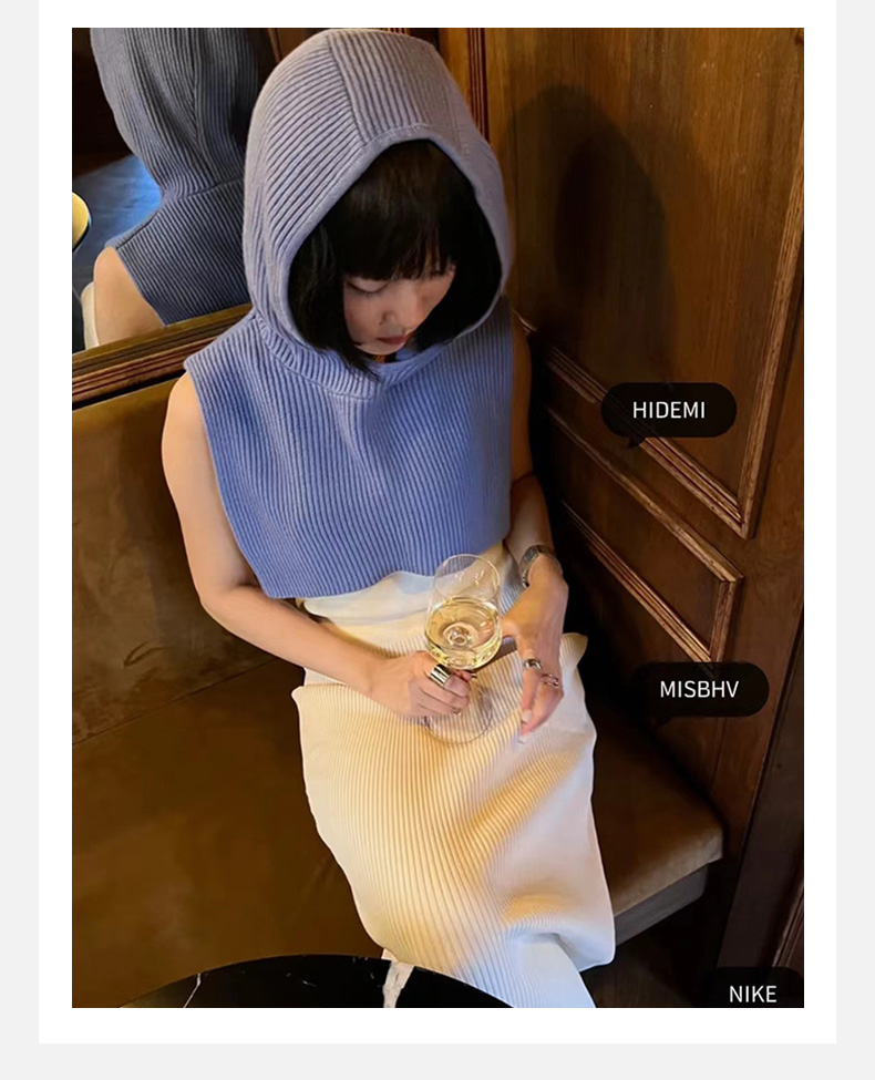 HIDEMI 【董生活同款】云朵系列亲肤柔软薄针织软糯三件套 背心/长袖上衣/百褶半身裙 灰色/巧克力色