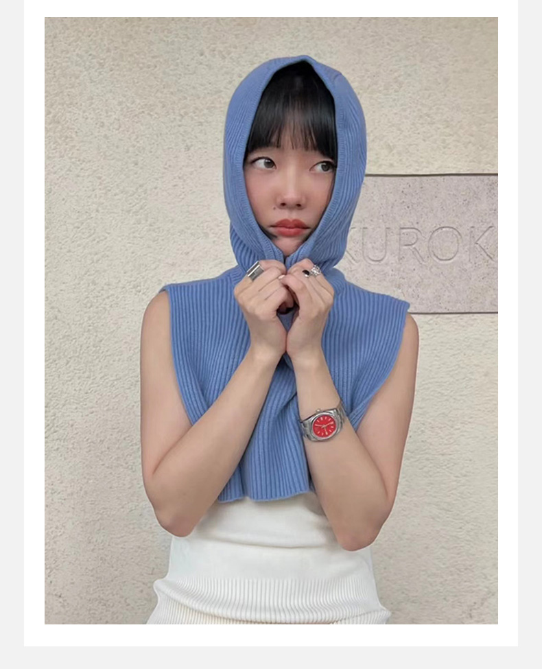HIDEMI 美利奴羊毛趣味设计感连帽式围巾