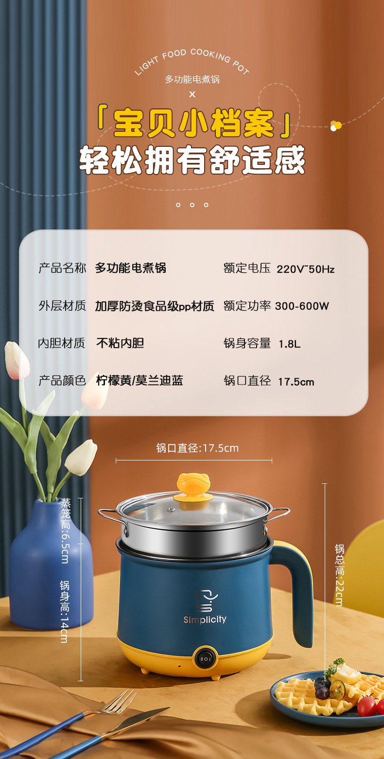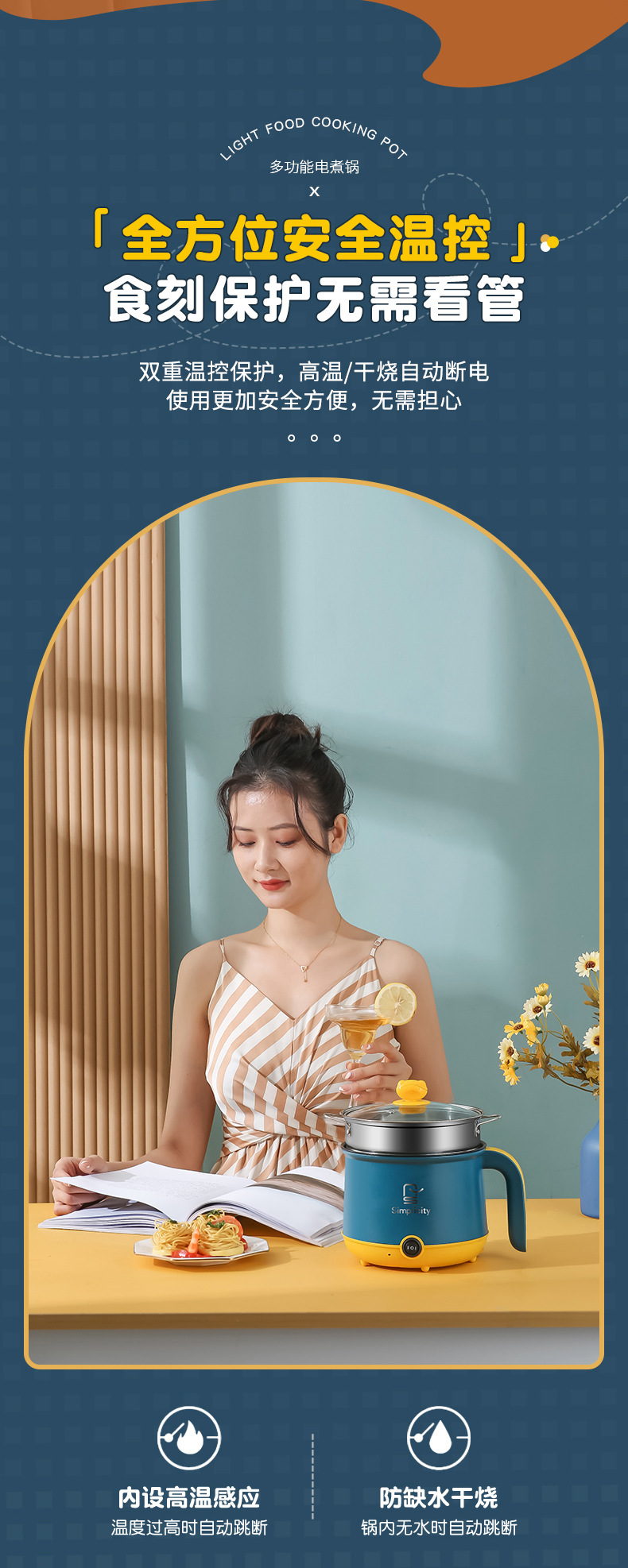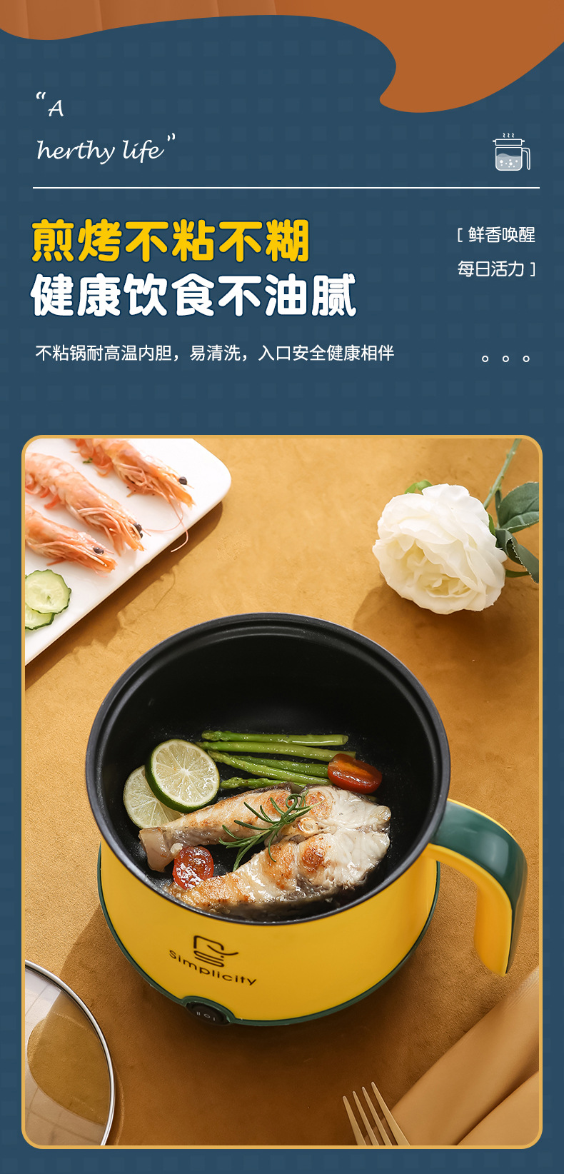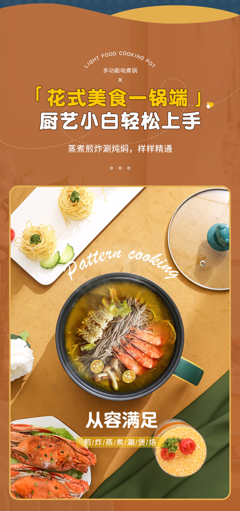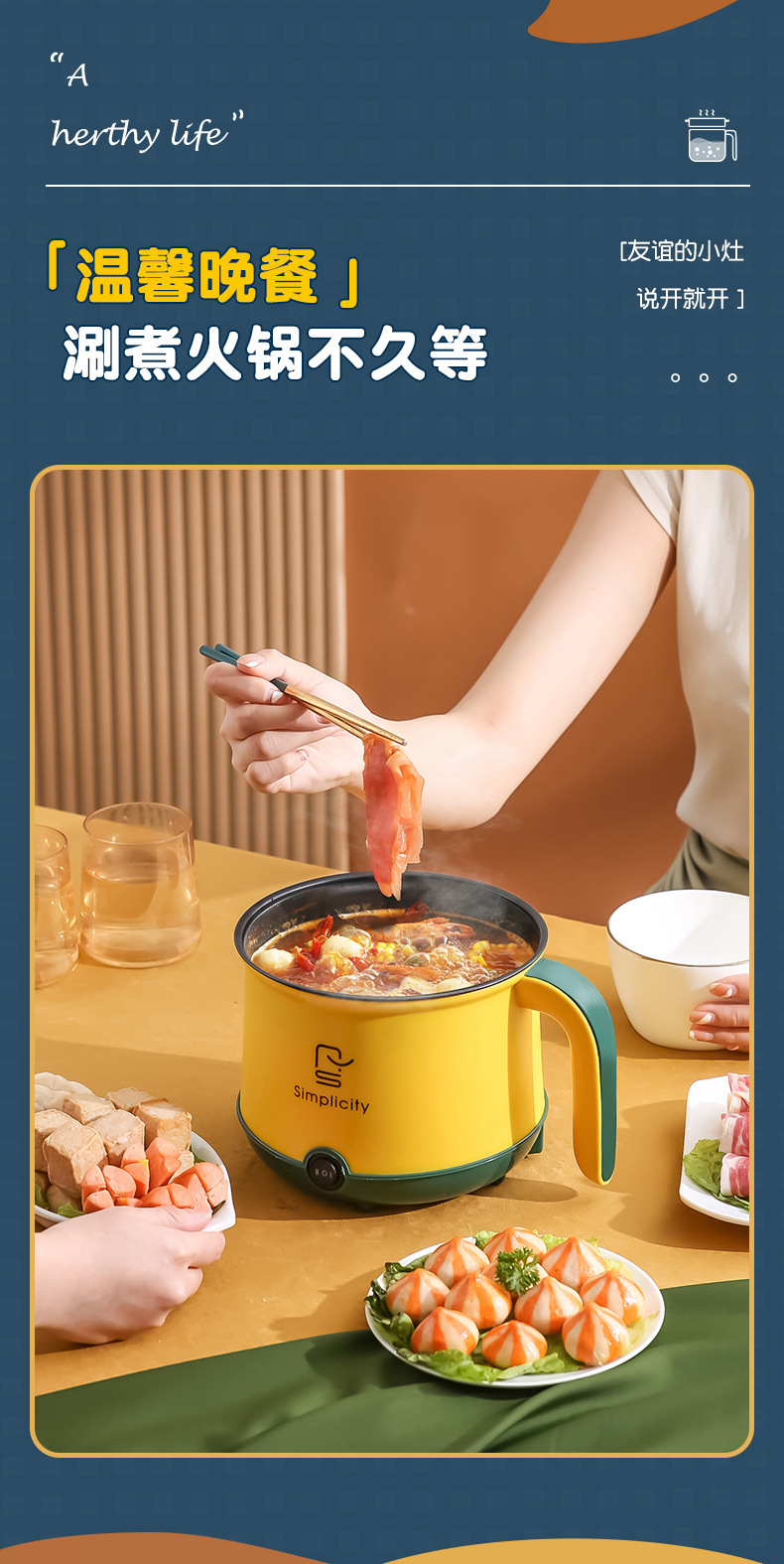 【一锅『暖暖哒」 不负美食不负爱】110V美规现货跨境电煮锅迷你电热锅电火锅多功能不粘锅泡面锅蒸锅。ry