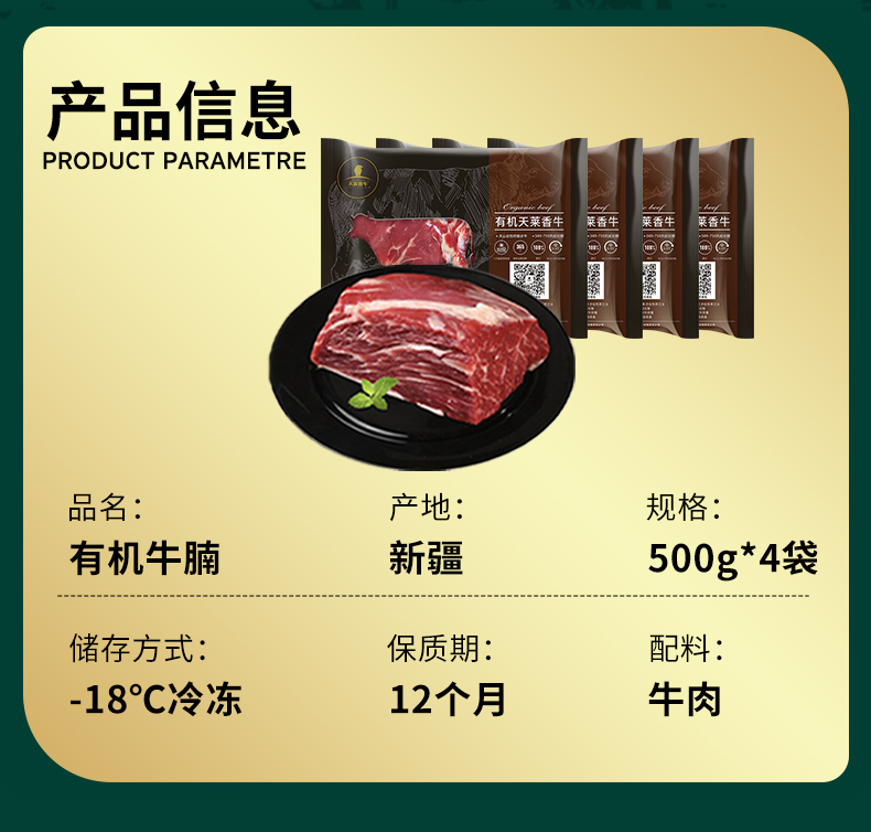 天莱香牛 国产原切有机谷饲牛腩 500g*4袋