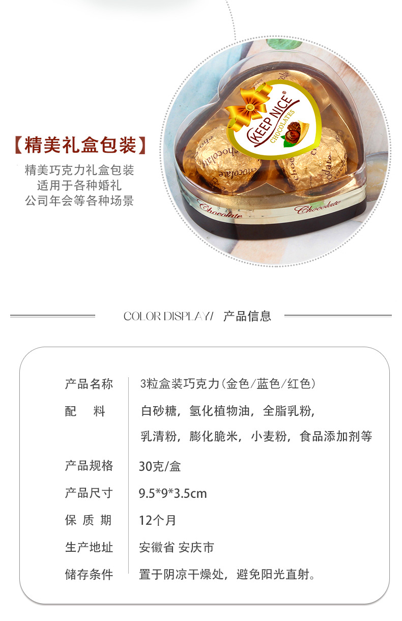 限时特卖!【多层好料!外酥里软】精美礼盒,心心相印,典趣三粒心形巧克力糖果礼盒情人节送女生礼物商超休闲小零食。ha
