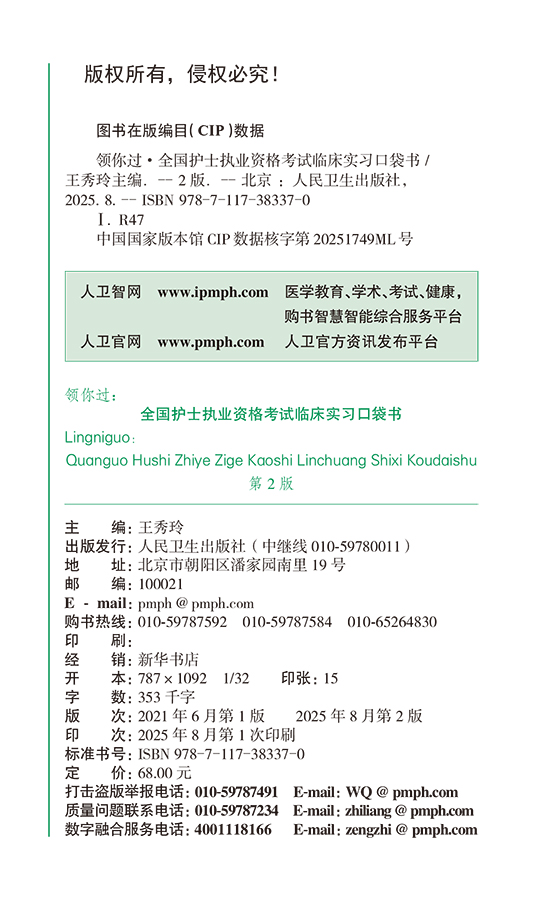 书名:领你过:全国护士执业资格考试临床实习口袋书(第2版)