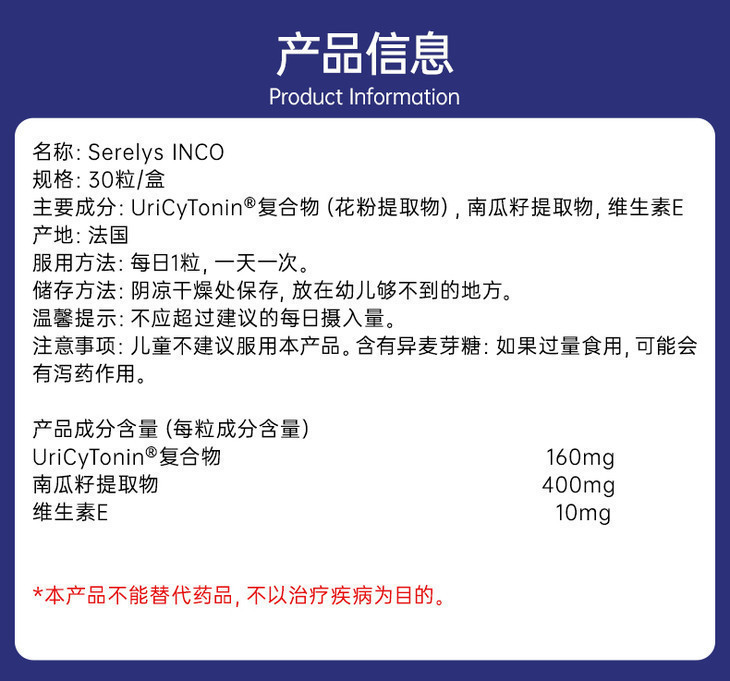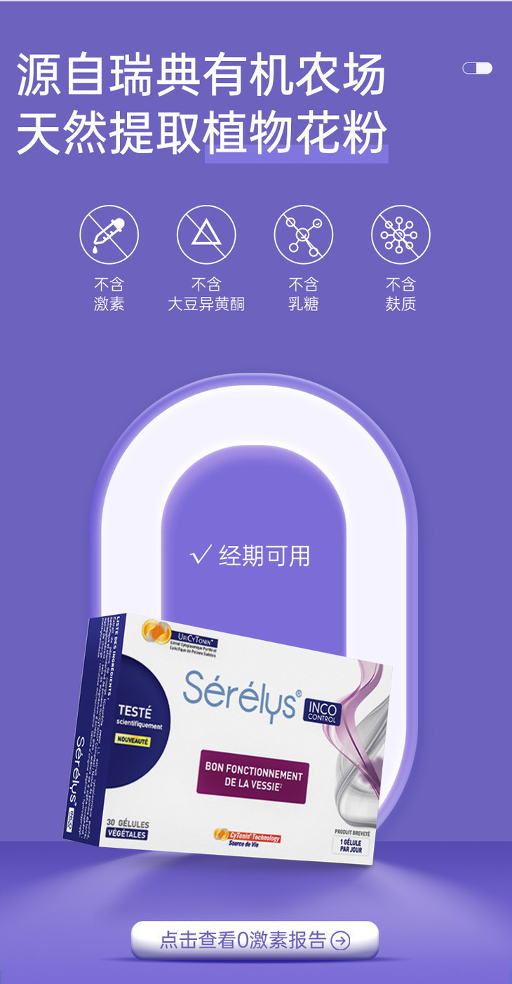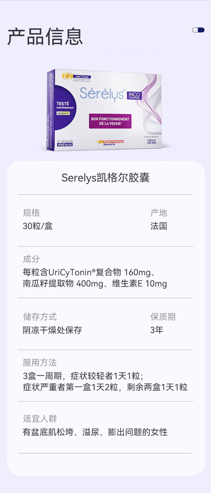 ³ 发三盒【法国Serelys “凯格尔”盆底肌胶囊30粒装】UriCyTonin@复合物+南瓜籽提取物+维生素E XN03-CRMM-XJJK
