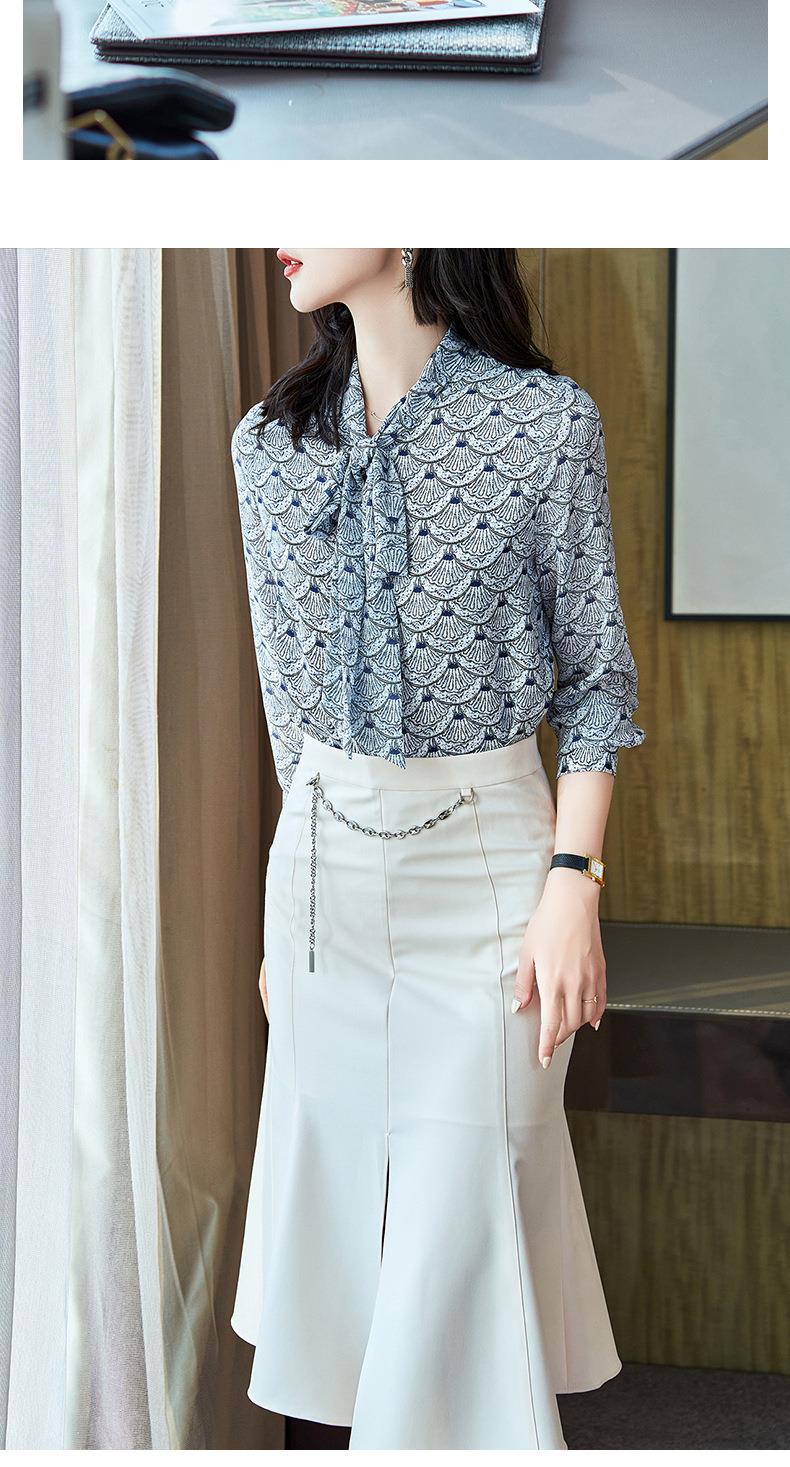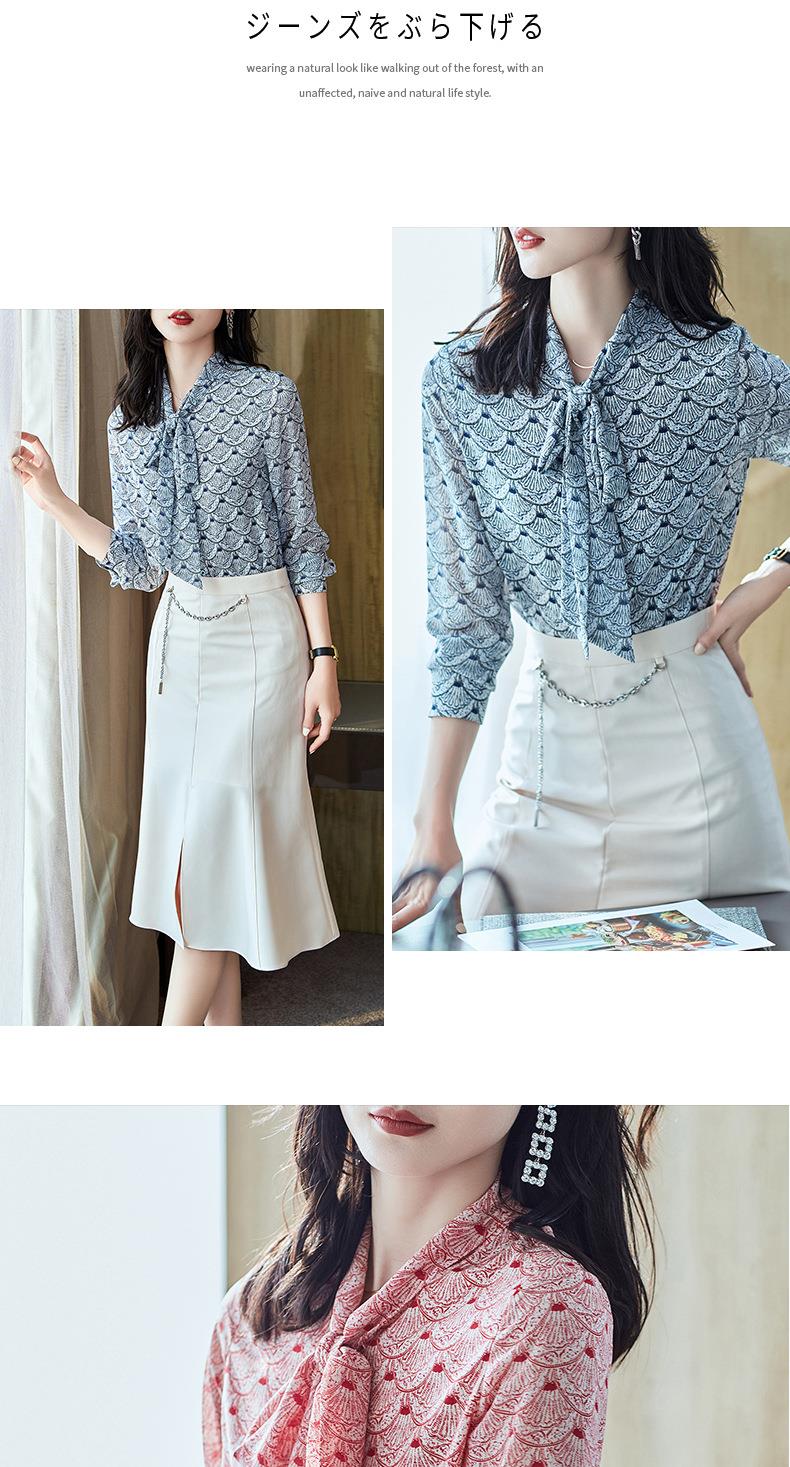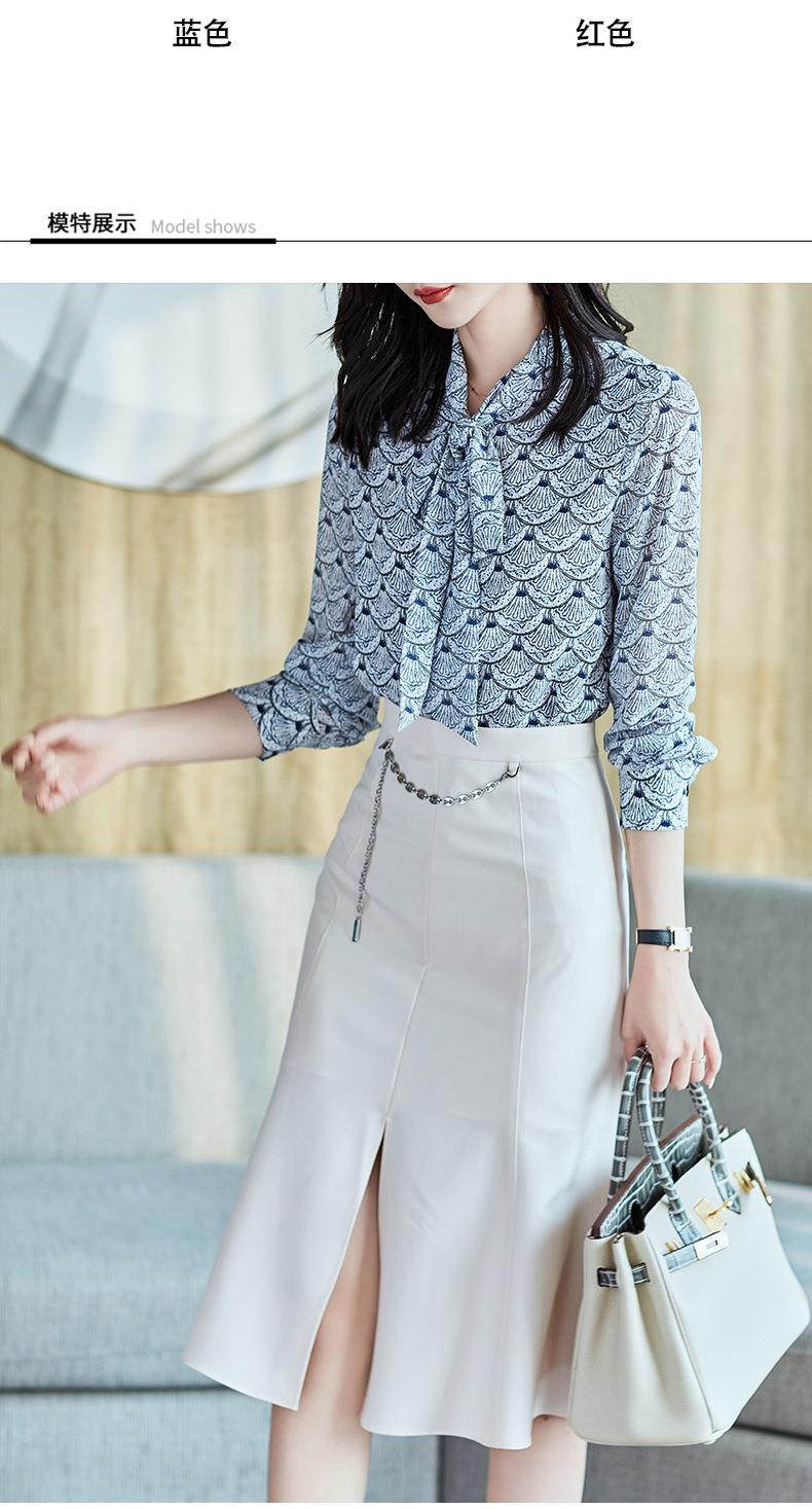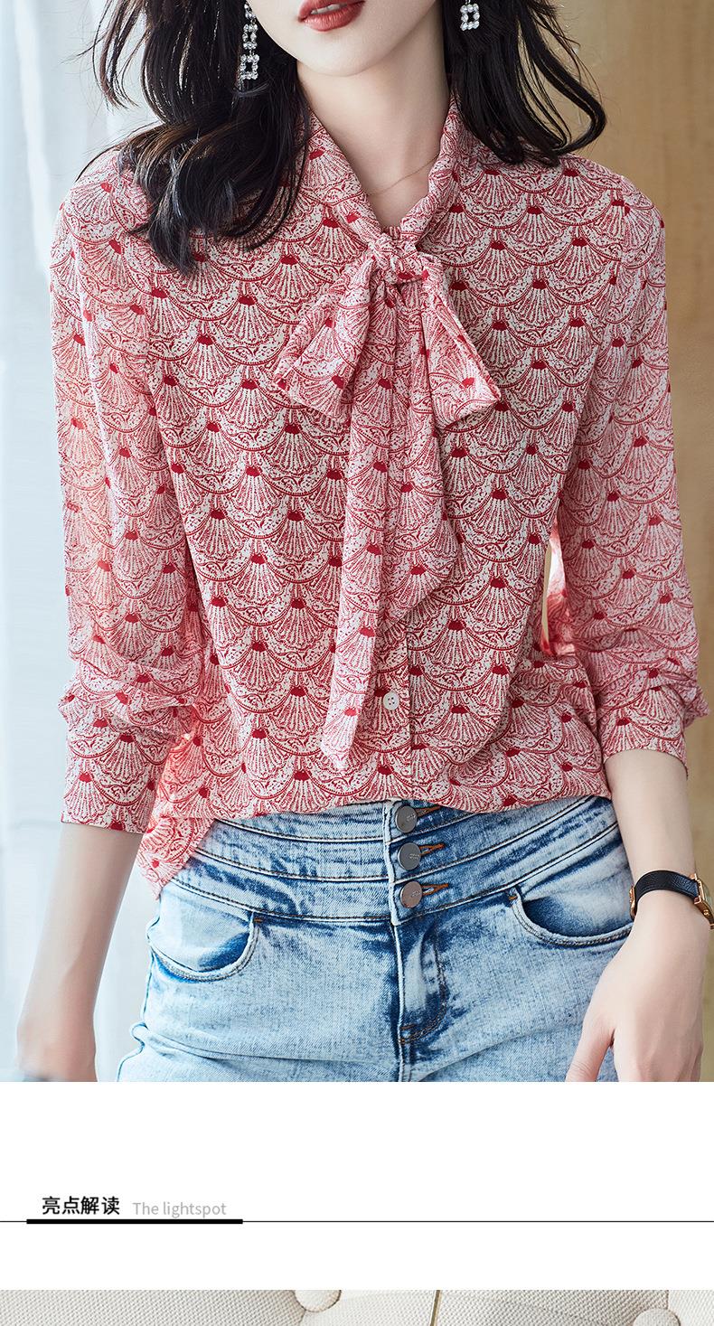 2023秋装新款衬衫女长袖宽松雪纺衫系带女士衬衣A2511