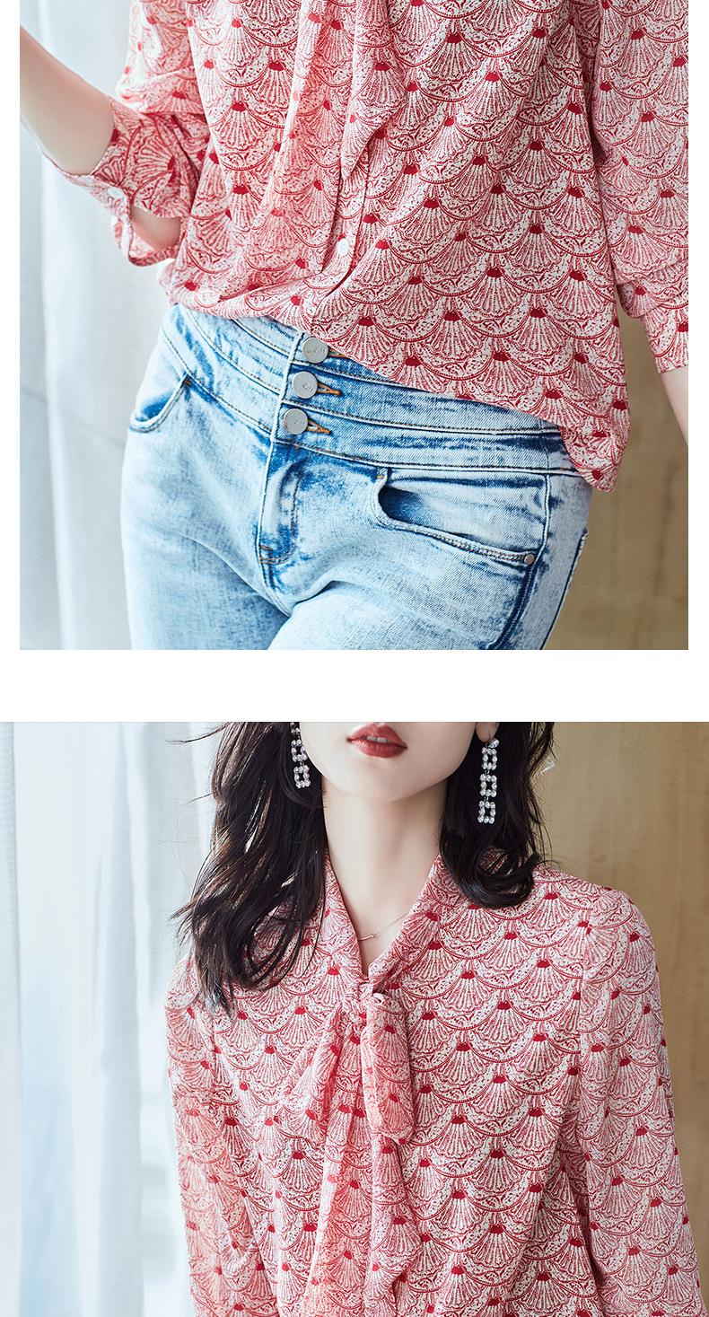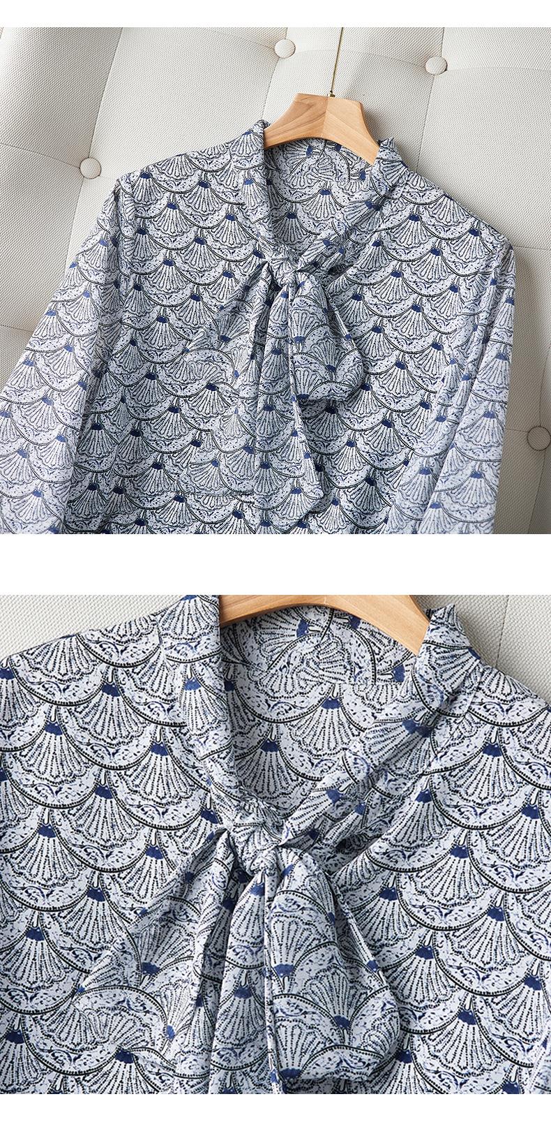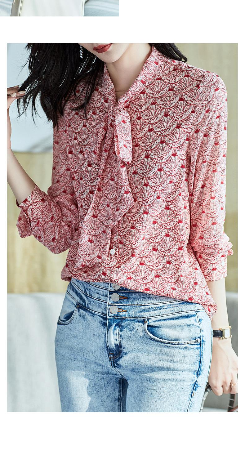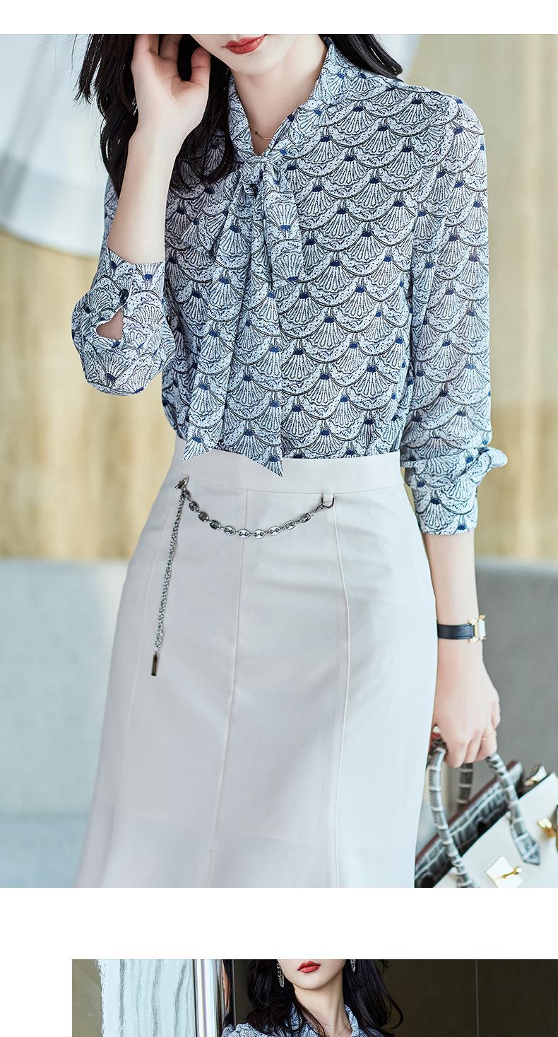 2023秋装新款衬衫女长袖宽松雪纺衫系带女士衬衣A2511