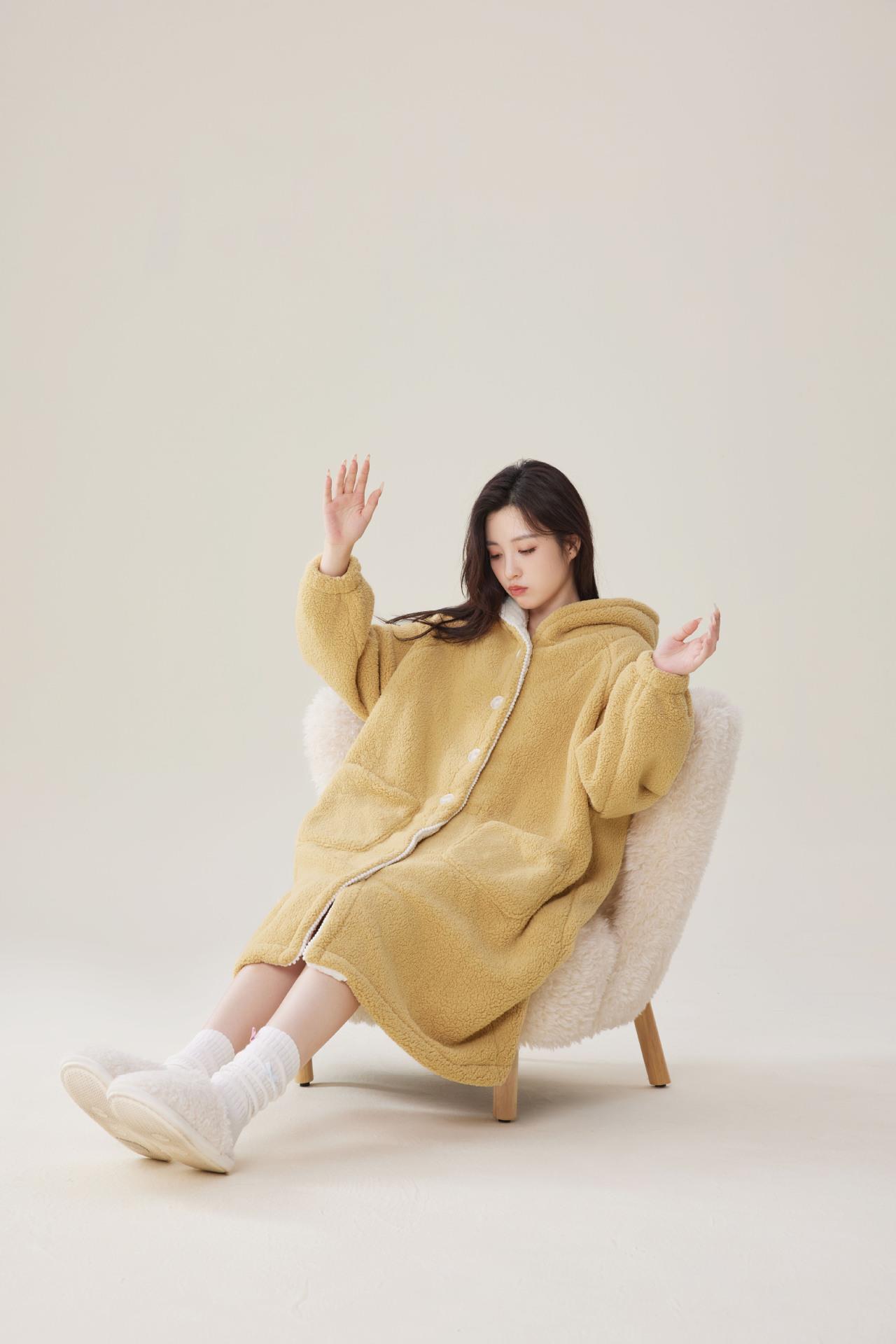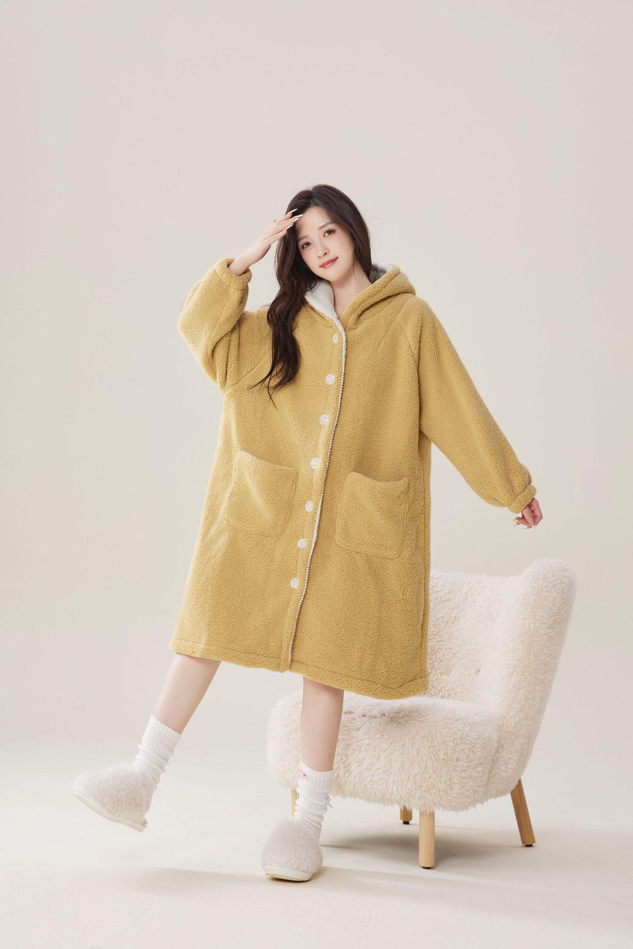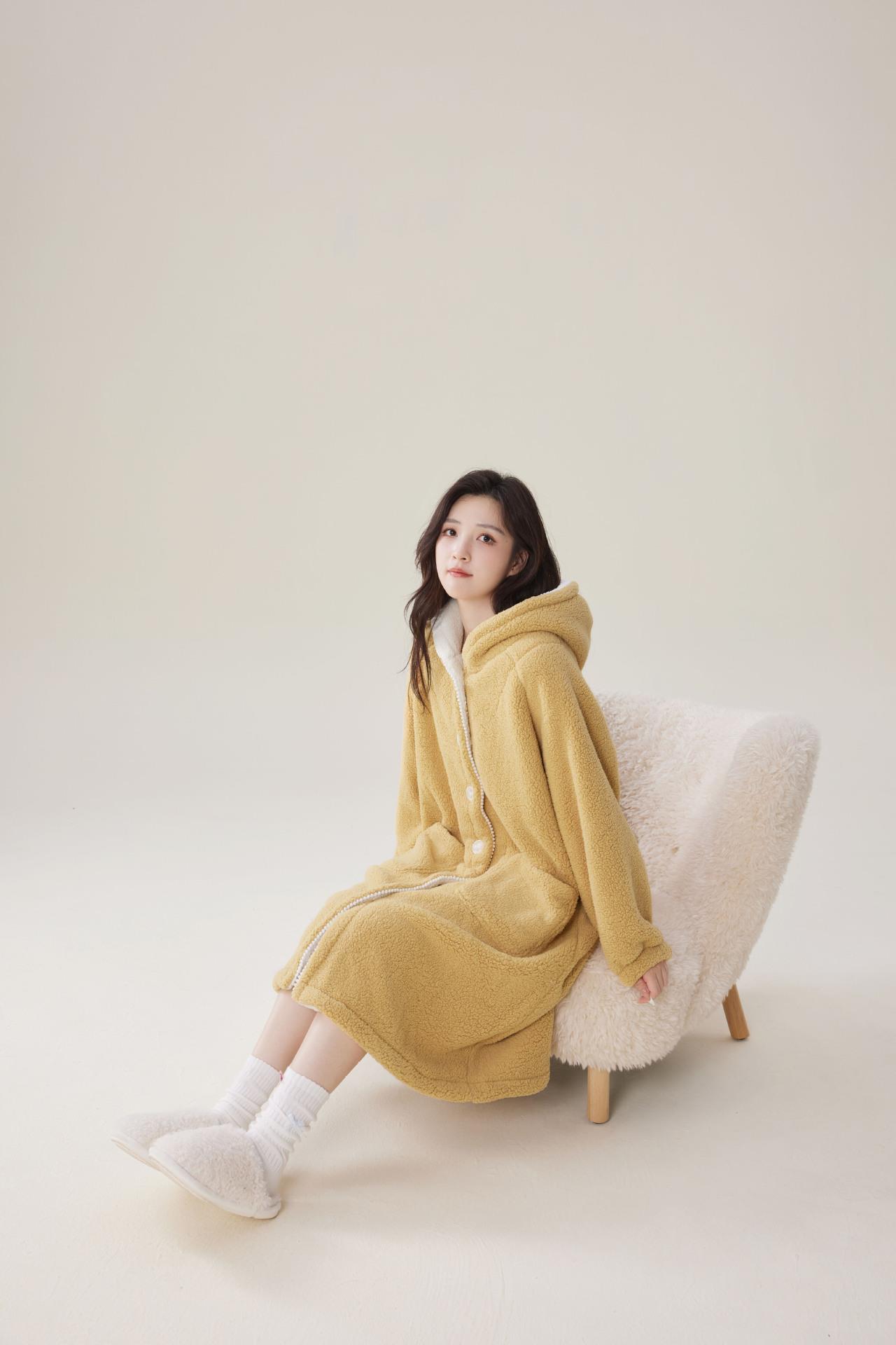 新款羊羔绒睡袍女冬季睡衣保暖加绒加厚浴袍女秋冬长款家居服