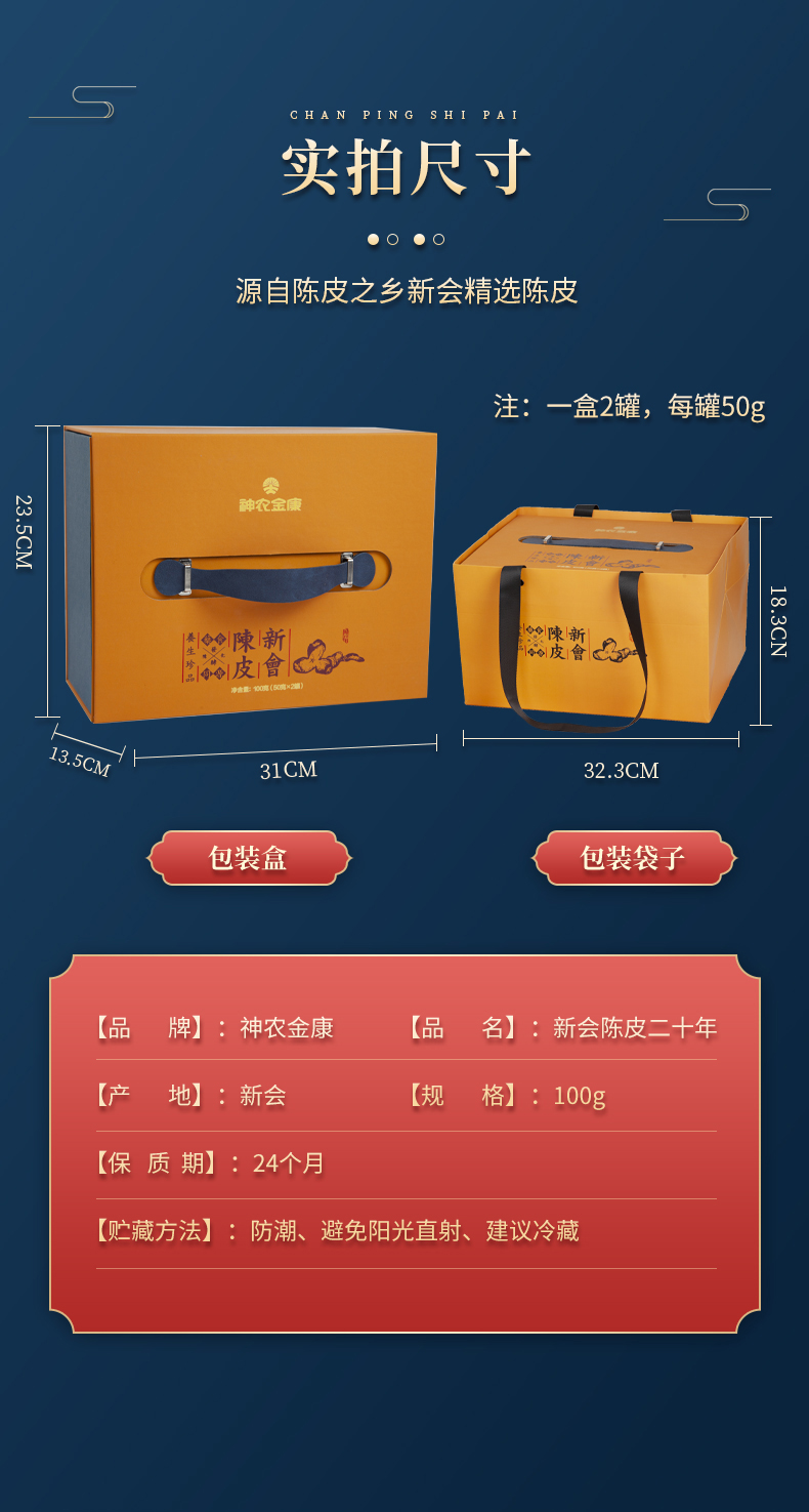 【中秋礼盒】神农金康 新会老陈皮50g*2罐二十年礼盒 新中式滋补礼 原生态真滋补 喝护家人健康