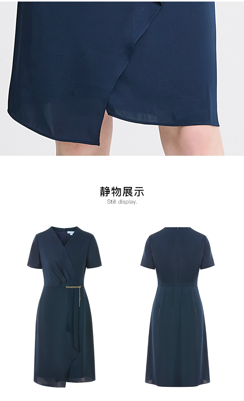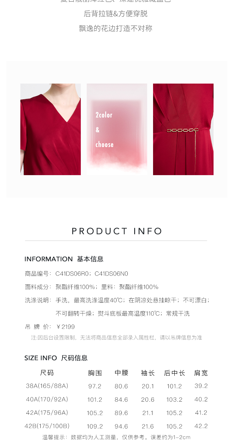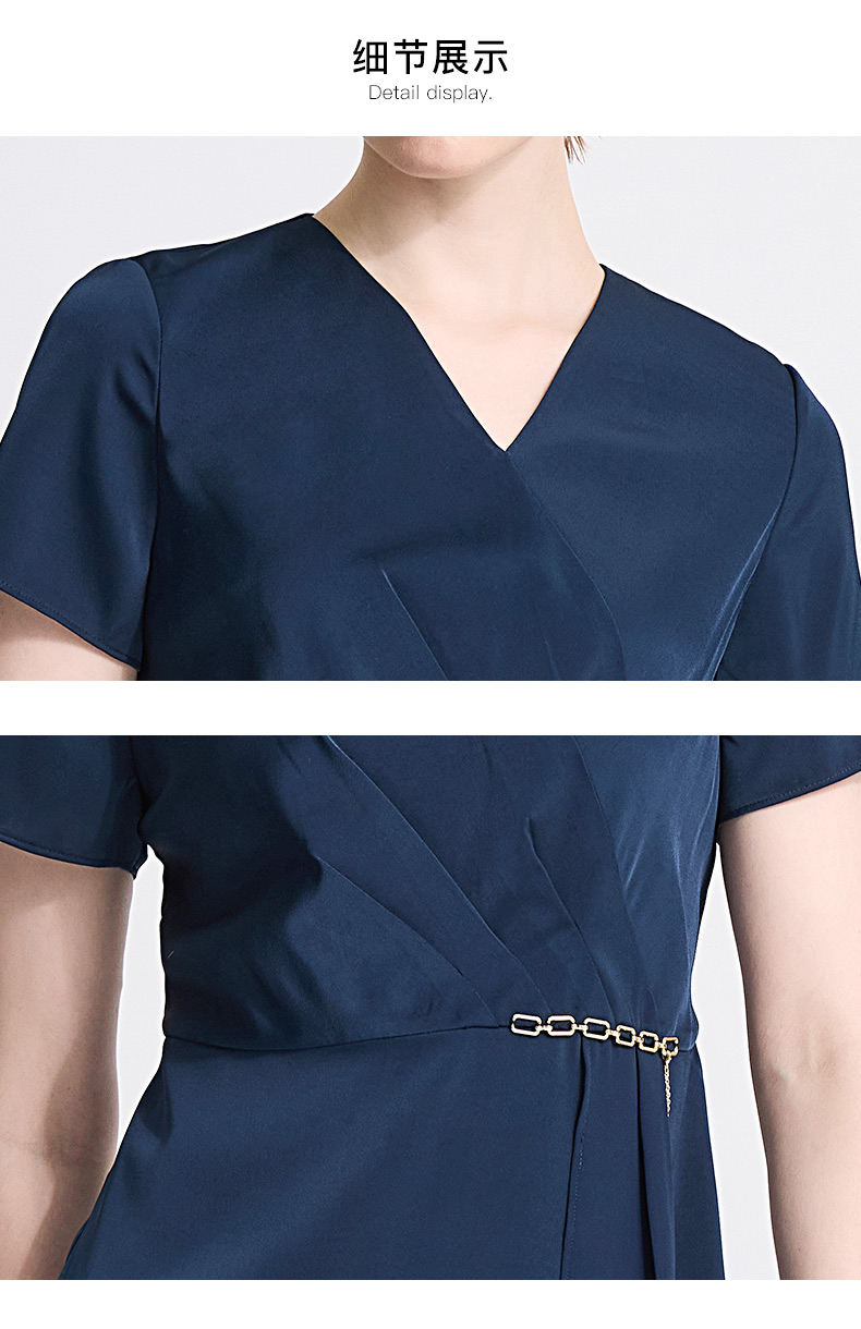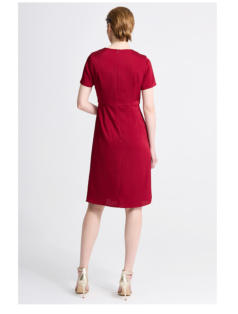 皮尔卡丹女装春季新款短袖V领藏蓝色红色气质连衣裙C41DS06