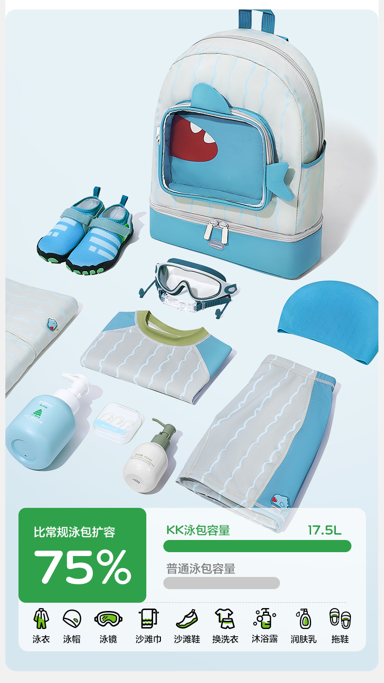 KK树儿童游泳包专用防水包女孩宝宝干湿分离沙滩包男童泳衣收纳袋几何序曲泳包