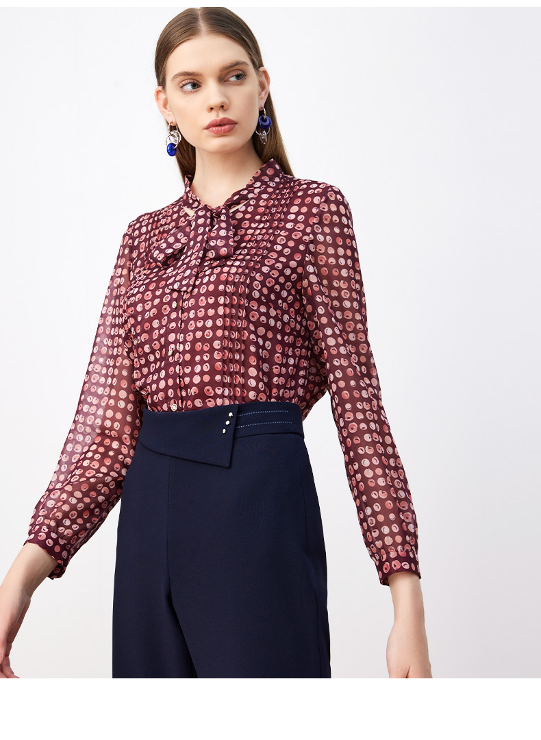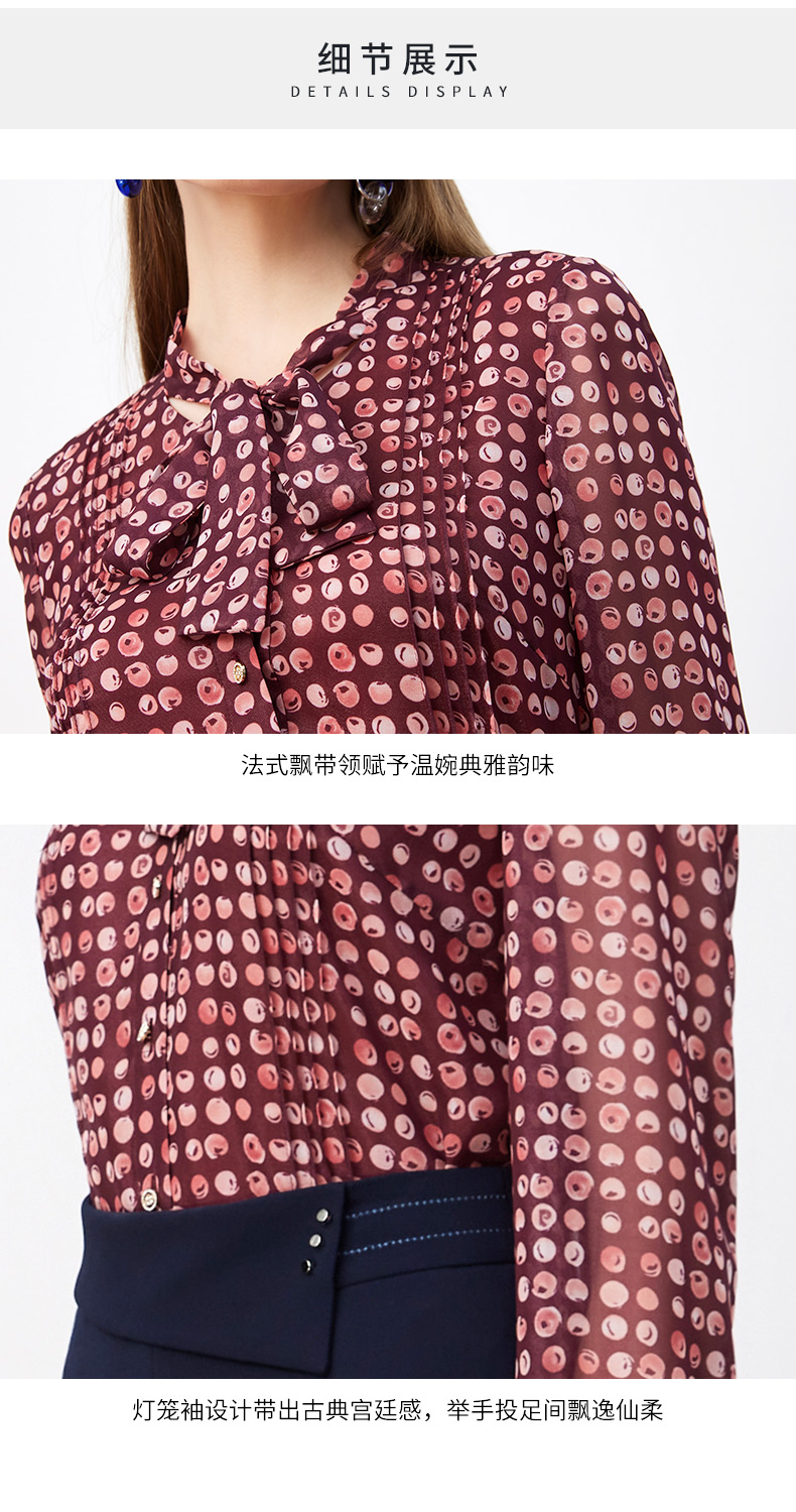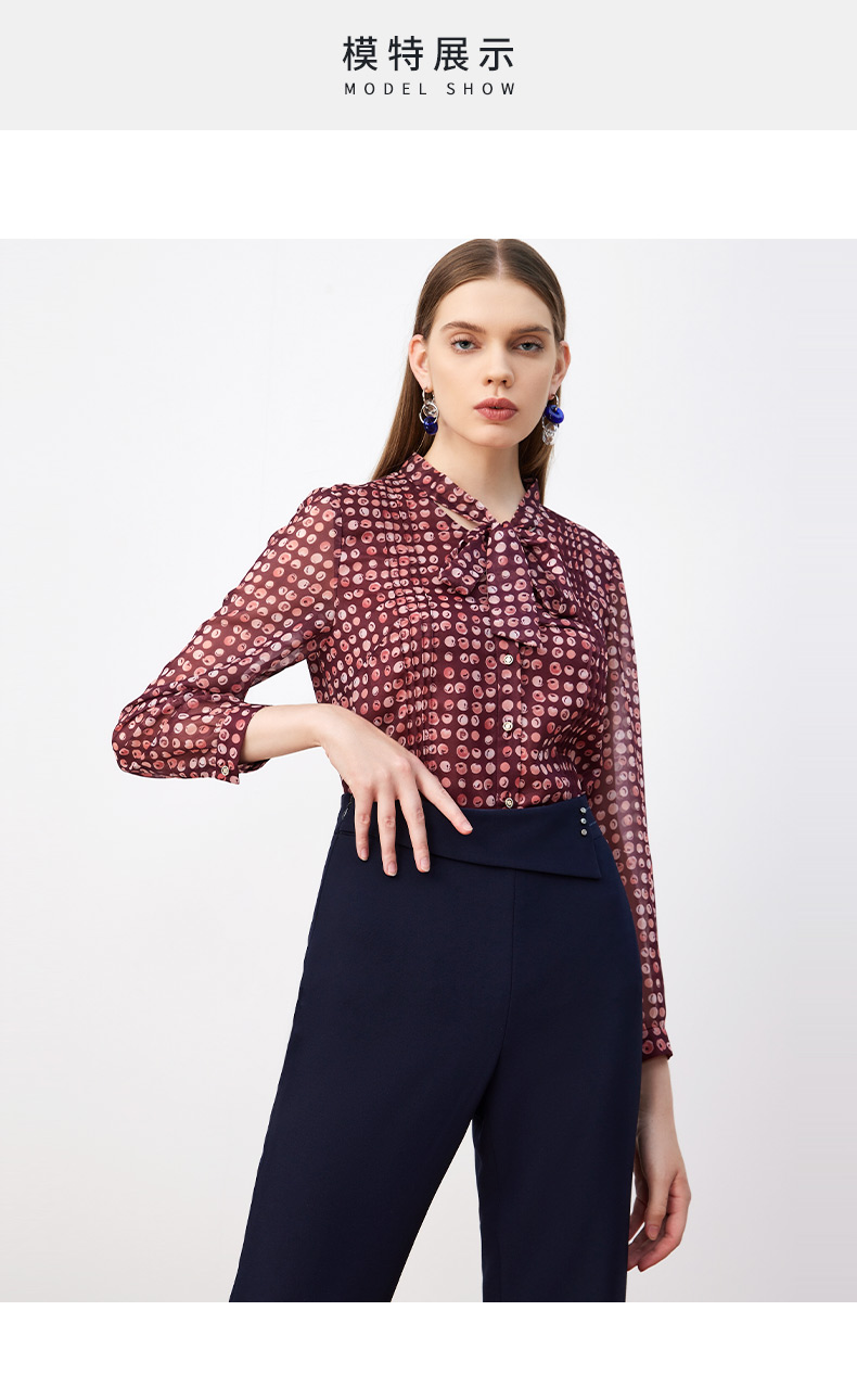 皮尔卡丹女装衬衫印花气质高级感复古法式通勤女衬衣P3351B3983T3