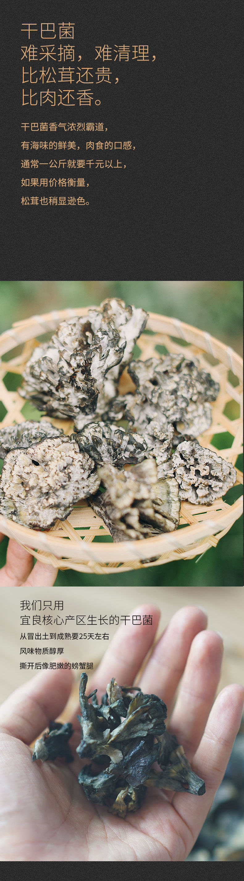 2、专业的事给专业的人做,干巴菌家里清理非常困难,费时费力。我们多花时间,给大家节约时间。大地物源专业野山菌供应链采购处理,最大程度保鲜、稳定价格,保留香气。