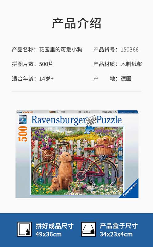 Ravensburger拼图 平面拼图500片花园里的可爱小狗RAVC150366