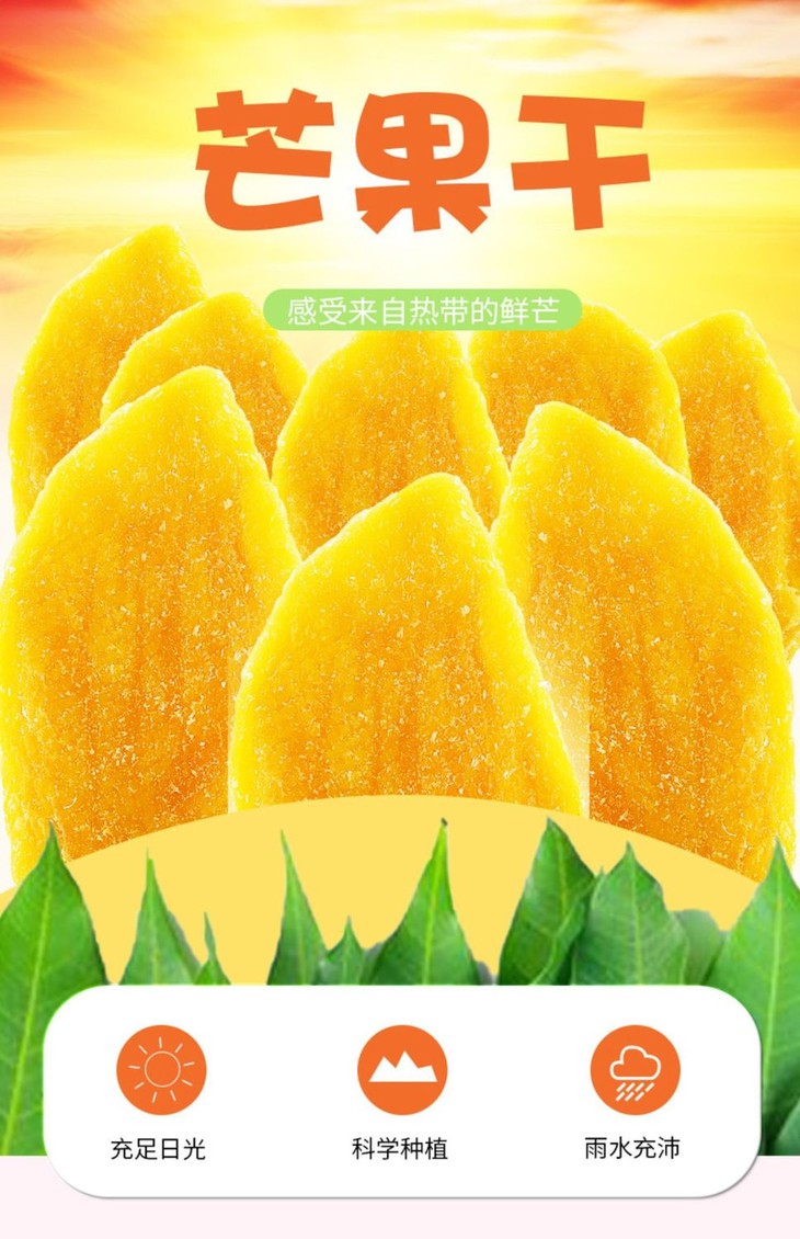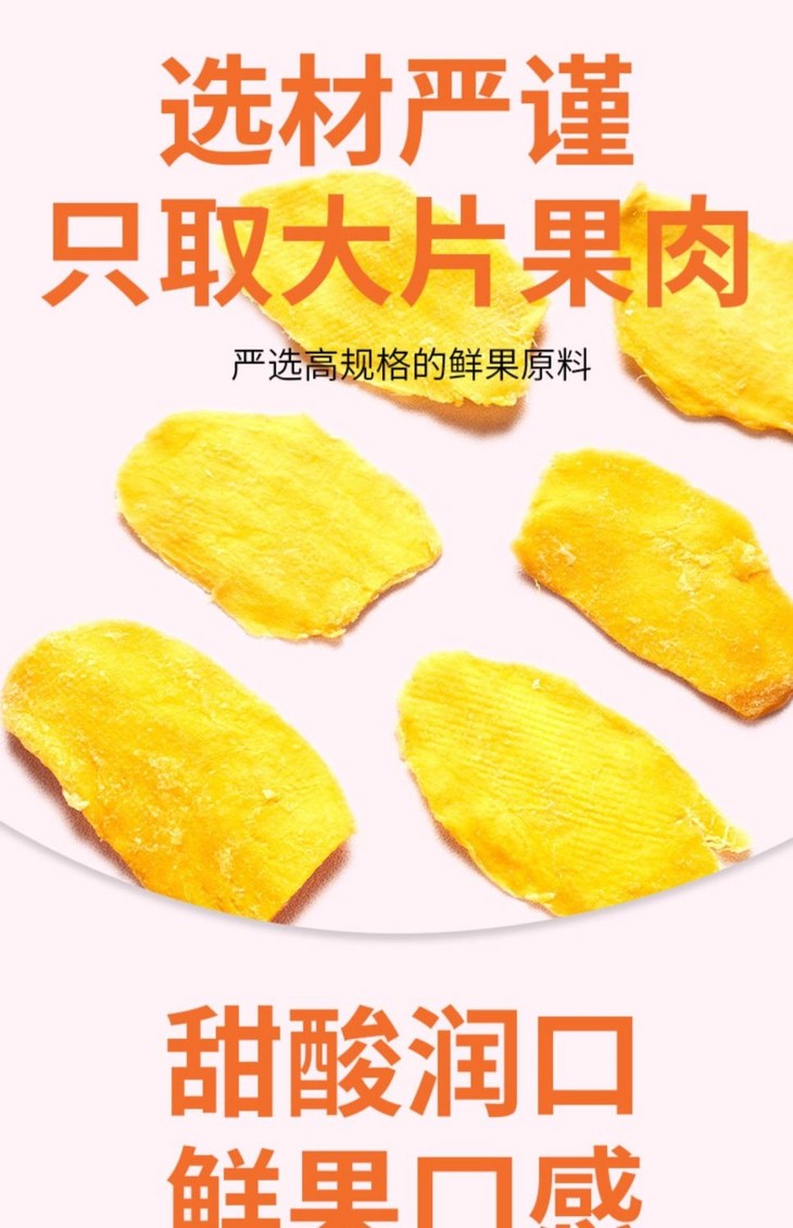 【嘴馋小零食!芒果干蜜饯果脯休闲小零食】果干肉质细腻软糯,果香浓郁,色泽金黄,满足每一次嘴馋,浓浓的芒果香,食品水果干健康