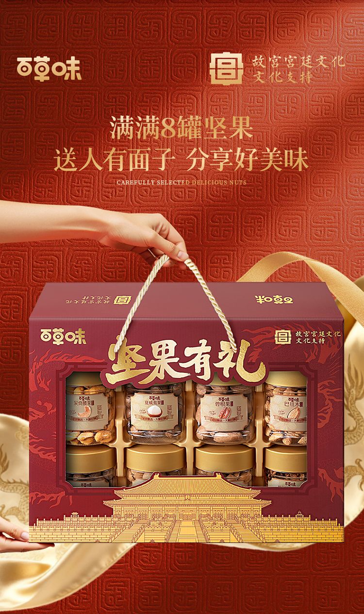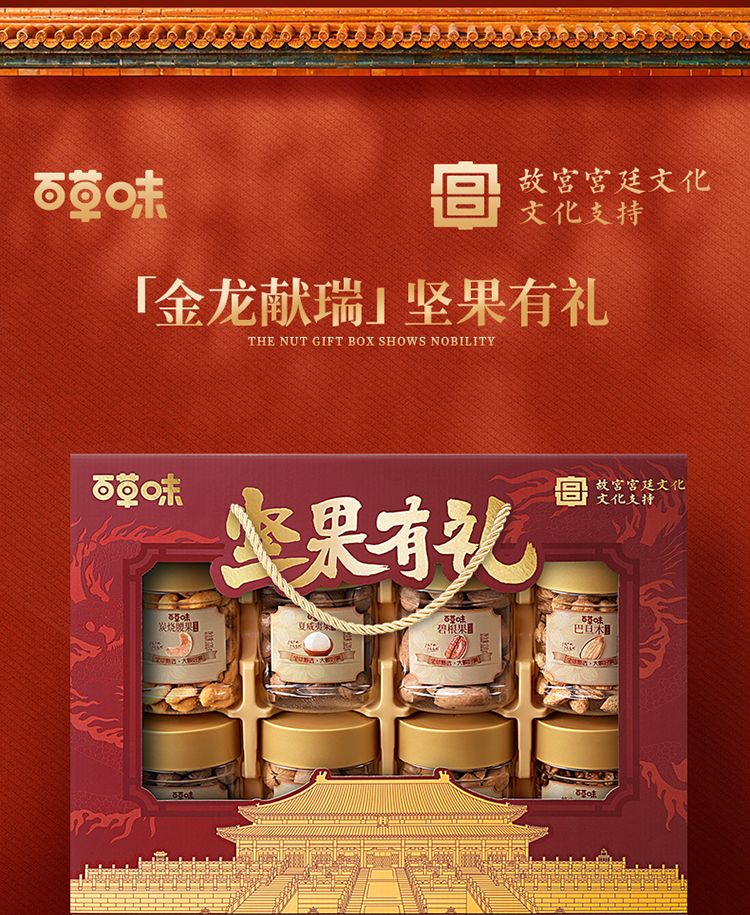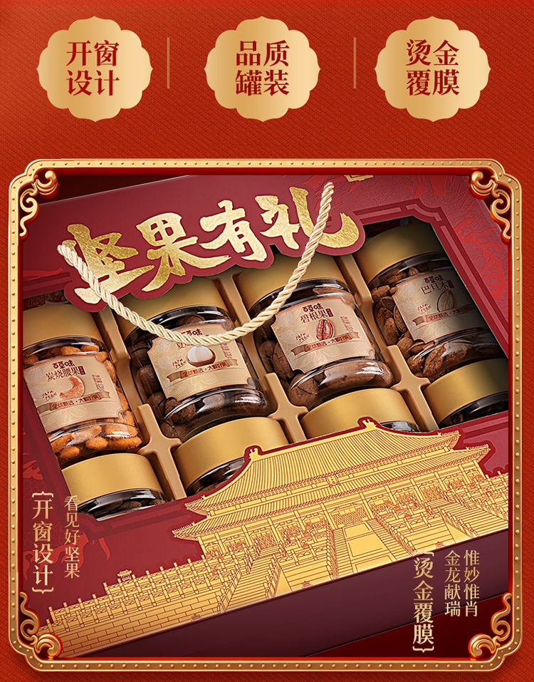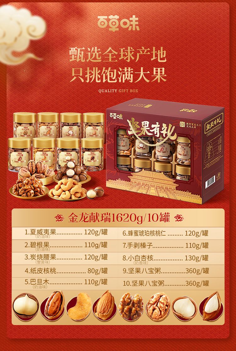 【高端开窗坚果礼!199元2大箱【百草味】罐装坚果礼盒1520g(金龙献瑞)-FF