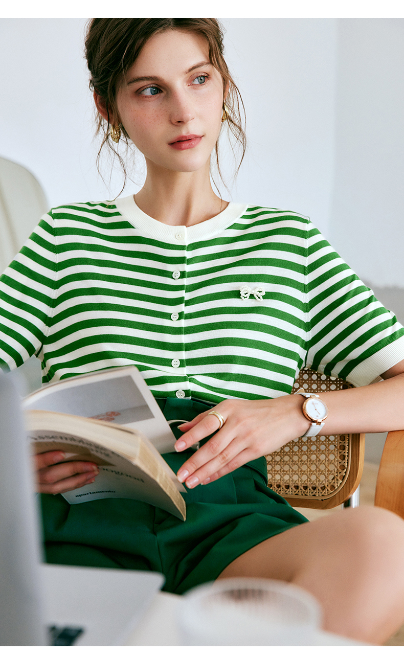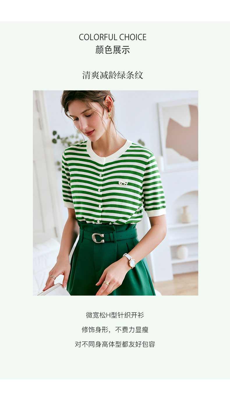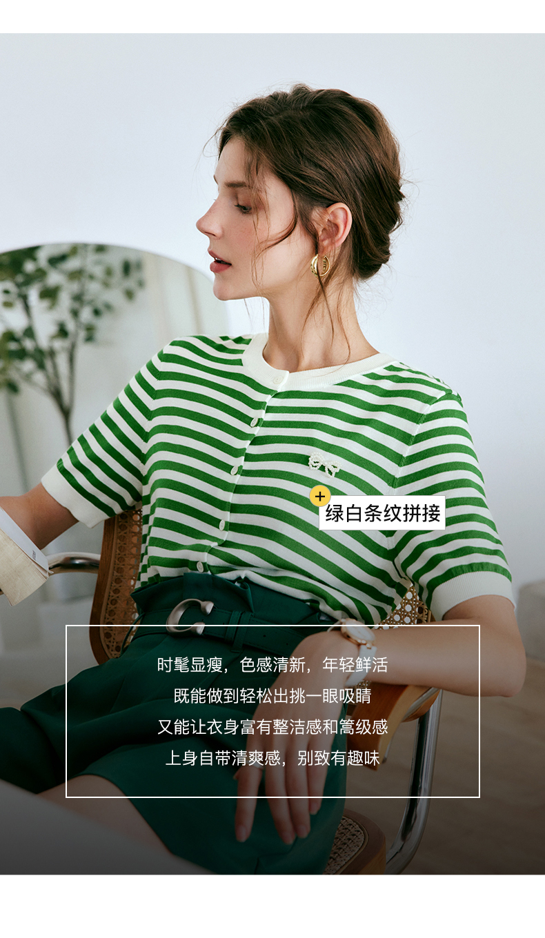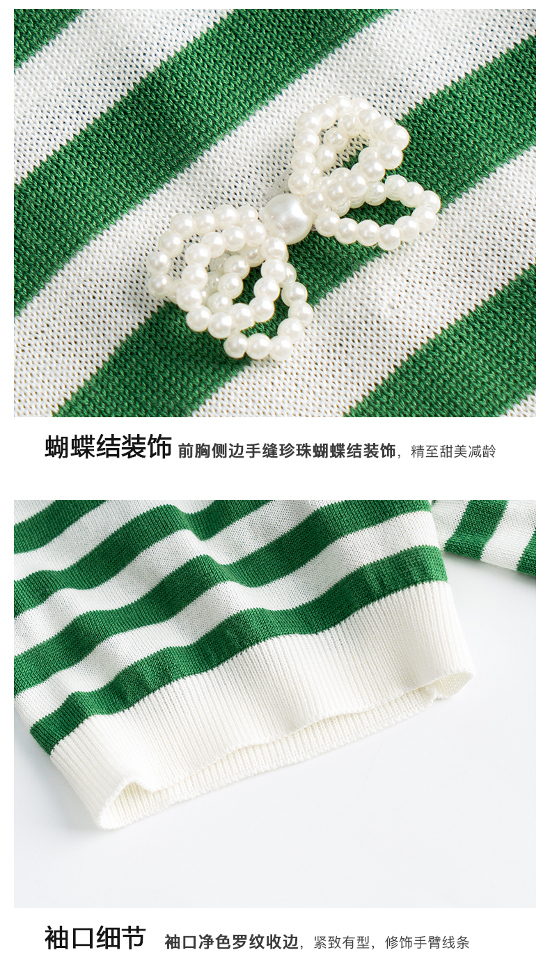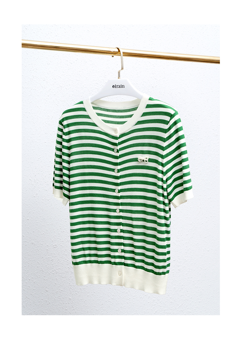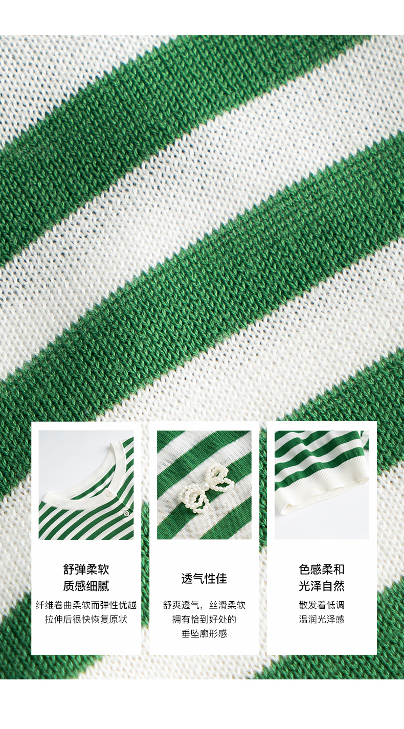 OLrain法式高级穿搭条纹针织衫女夏季2022新款时尚冰爽薄款套头衫