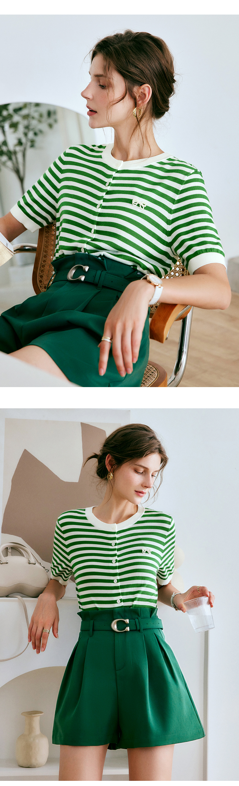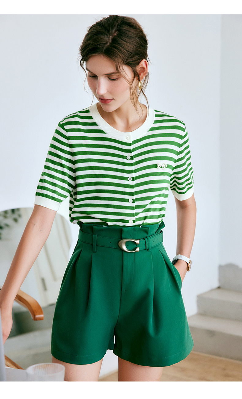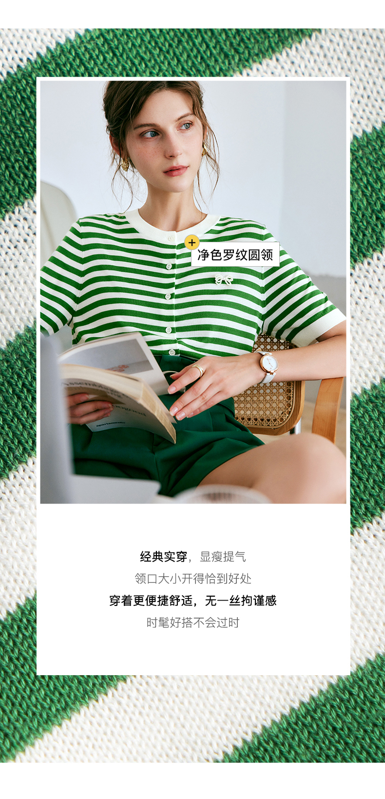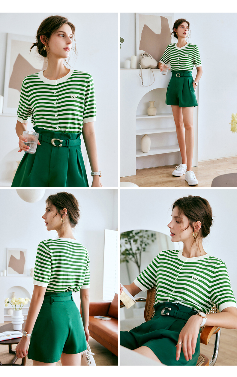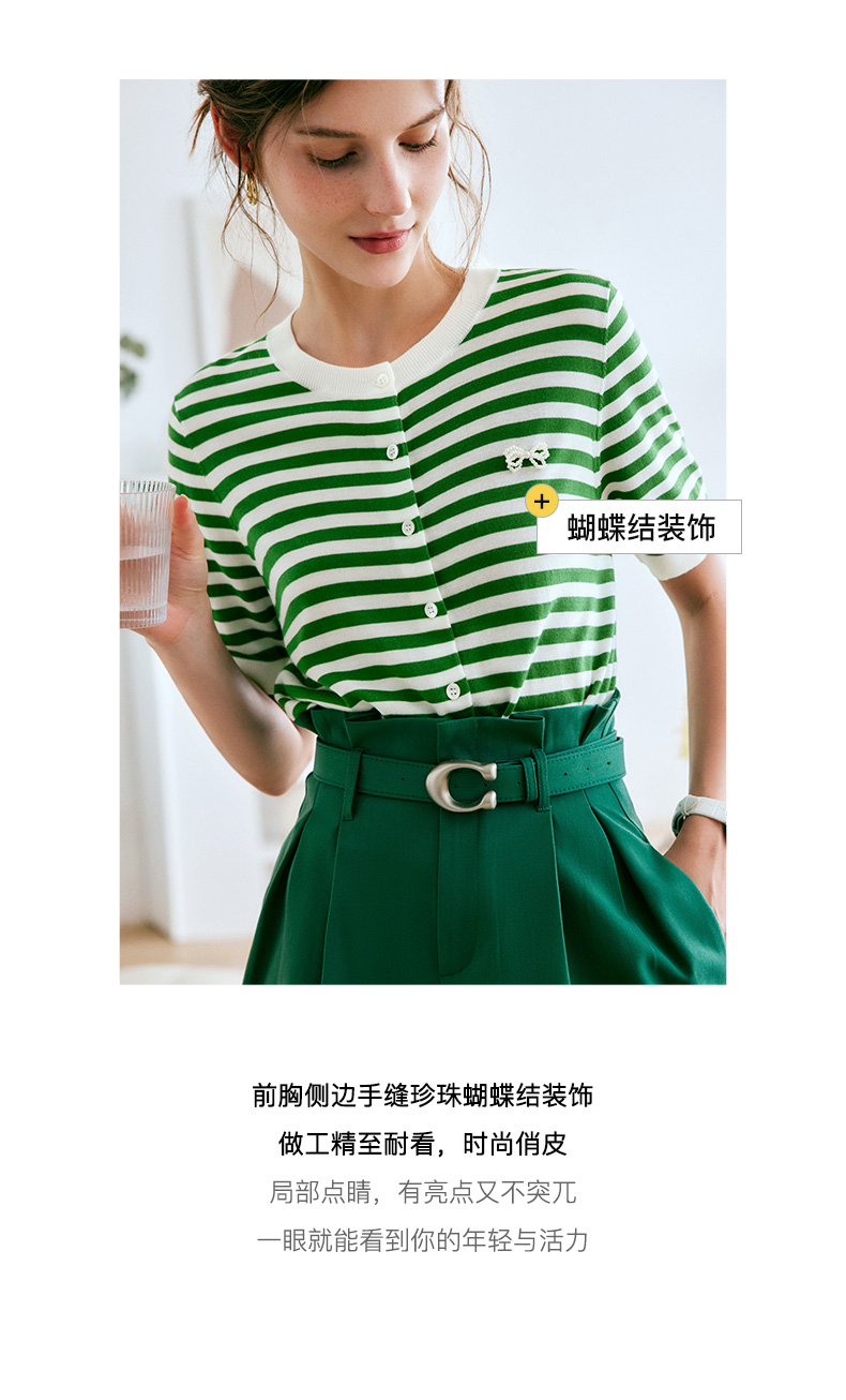 OLrain法式高级穿搭条纹针织衫女夏季2022新款时尚冰爽薄款套头衫