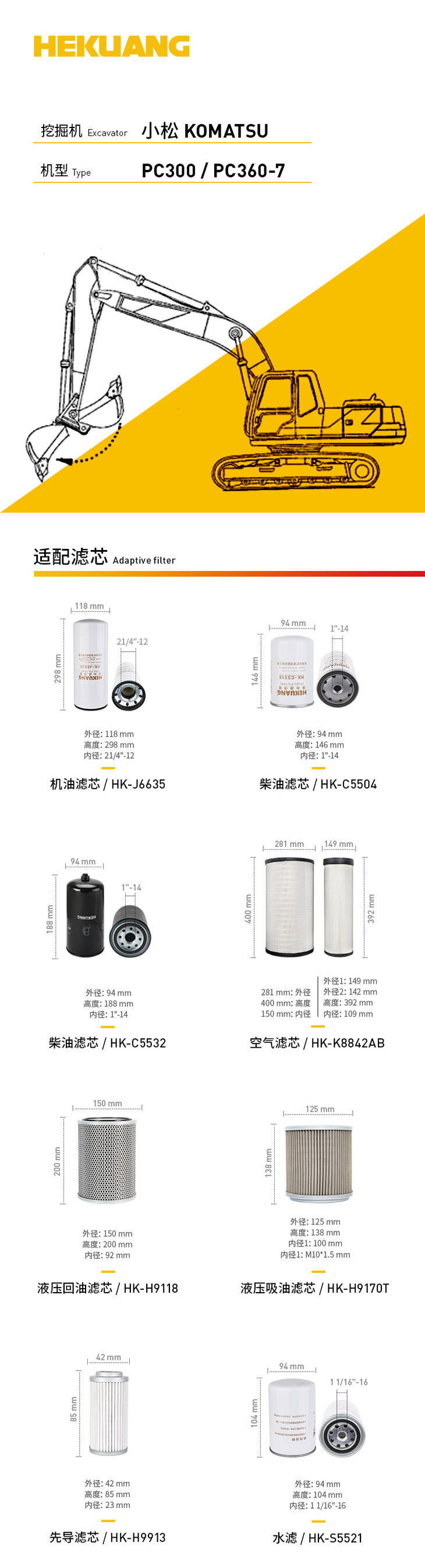 小松PC300/360-7挖掘机滤芯 机油柴油空气滤芯 液压油先导滤芯