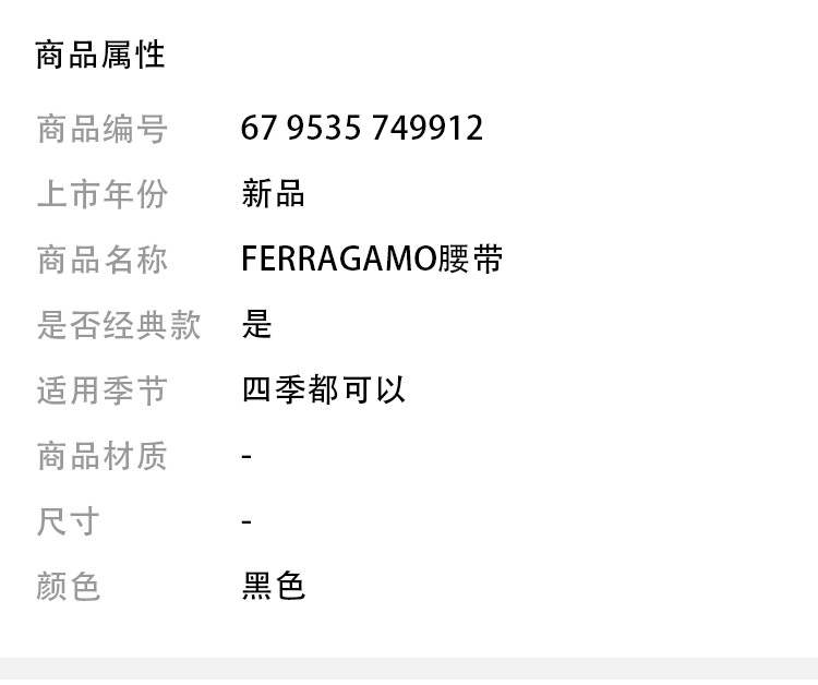 【二】FERRAGAMO 菲拉格慕 男士腰带 黑色 67 9535 749912