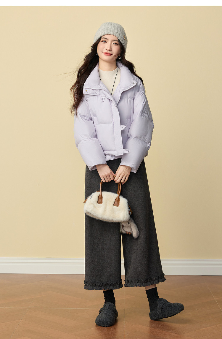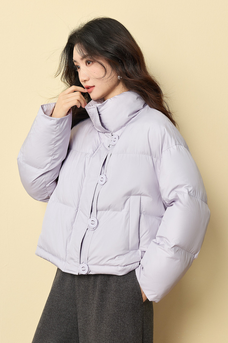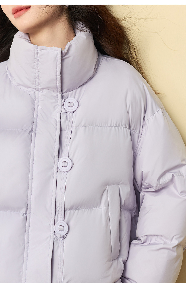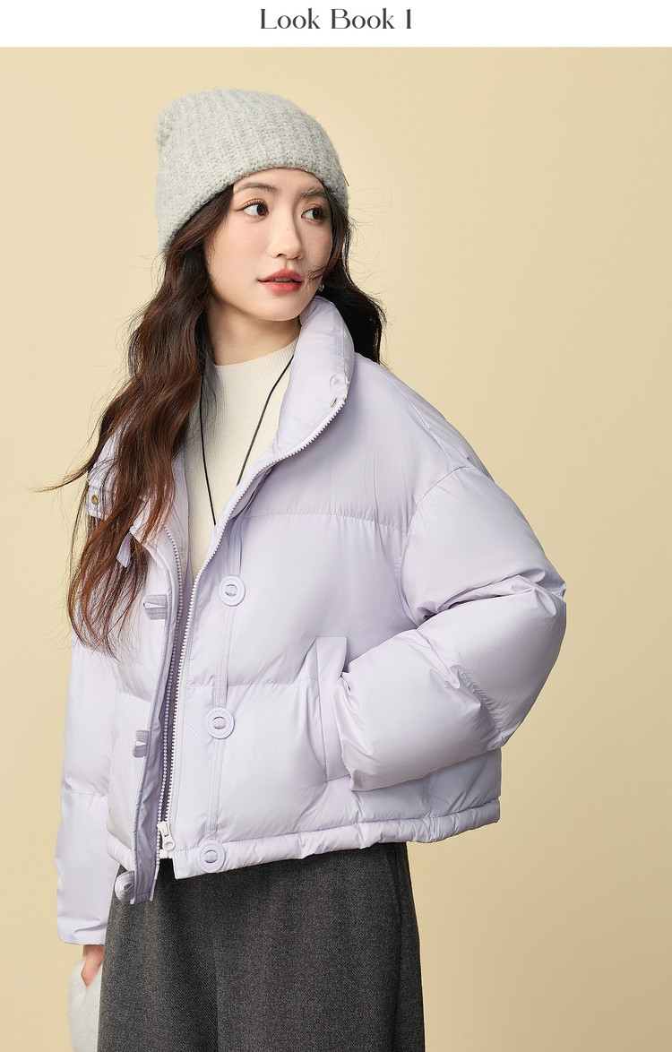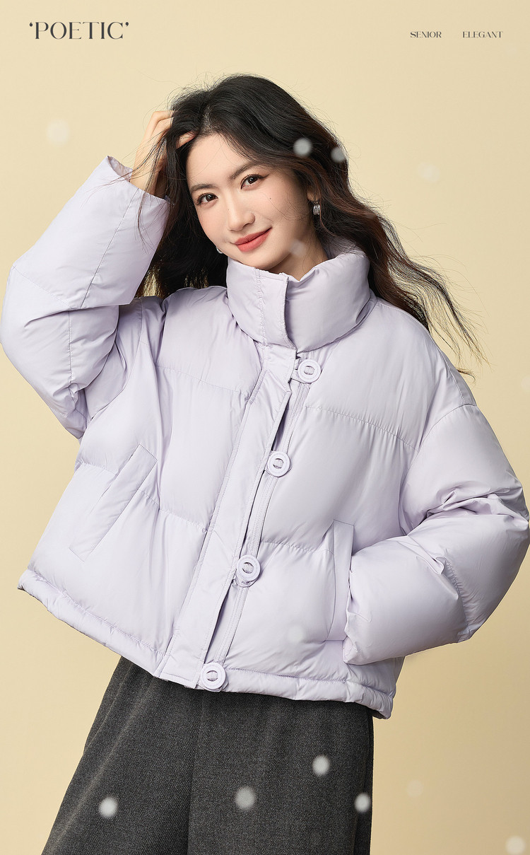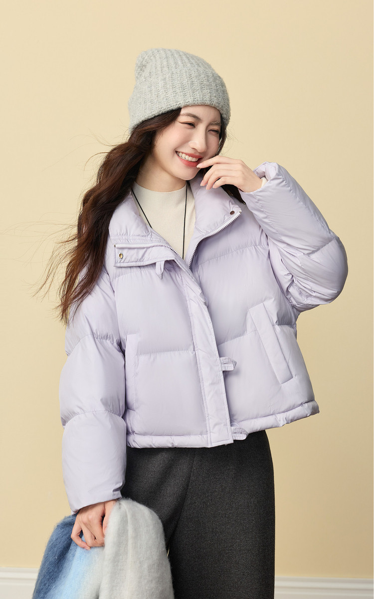 【年货节】熙世界泡芙云朵羽绒棉服女小个子2025冬装新款紫色立领保暖短外套