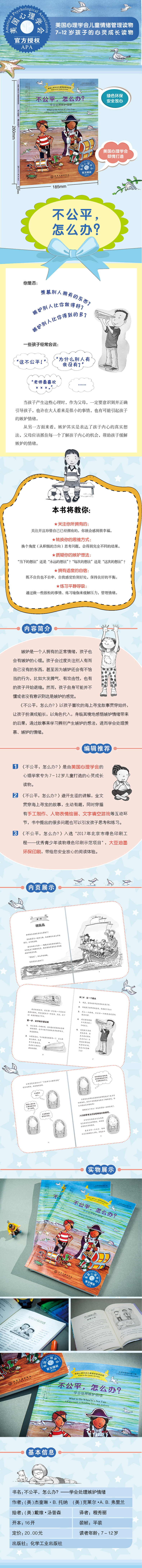 这本书将教给您的孩子学会辨别产生嫉妒的想法,也许并不会消除嫉妒,但是会减少嫉妒的影响。当想法改变了,情绪和行为也会相应改变。通过实践,孩子们会学会如何更现实地思考问题,当这样去做之后,就不会被嫉妒的情绪困扰了。本书内容生动活泼,以孩子喜欢的海上寻宝故事贯穿始终,会让孩子有代入感,书中提出的很多问题也可以引发孩子思考和练习。