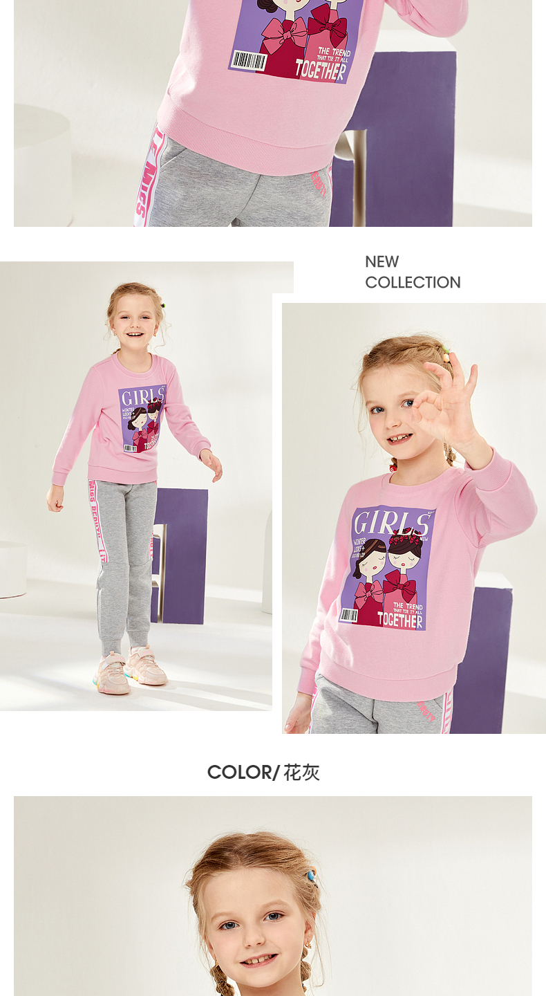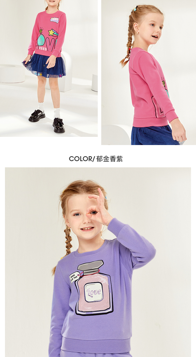 22FW 班尼路童装秋冬新款美妆香味女童圆领卫衣休闲宽松中大童上衣