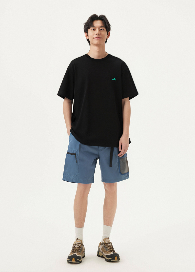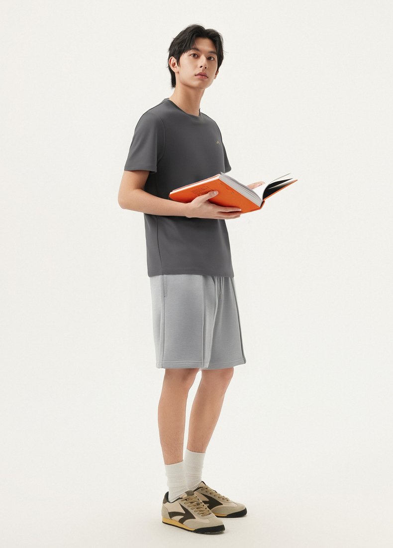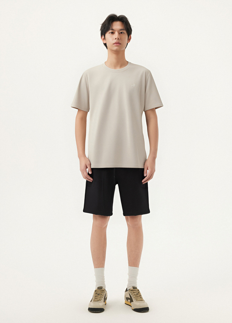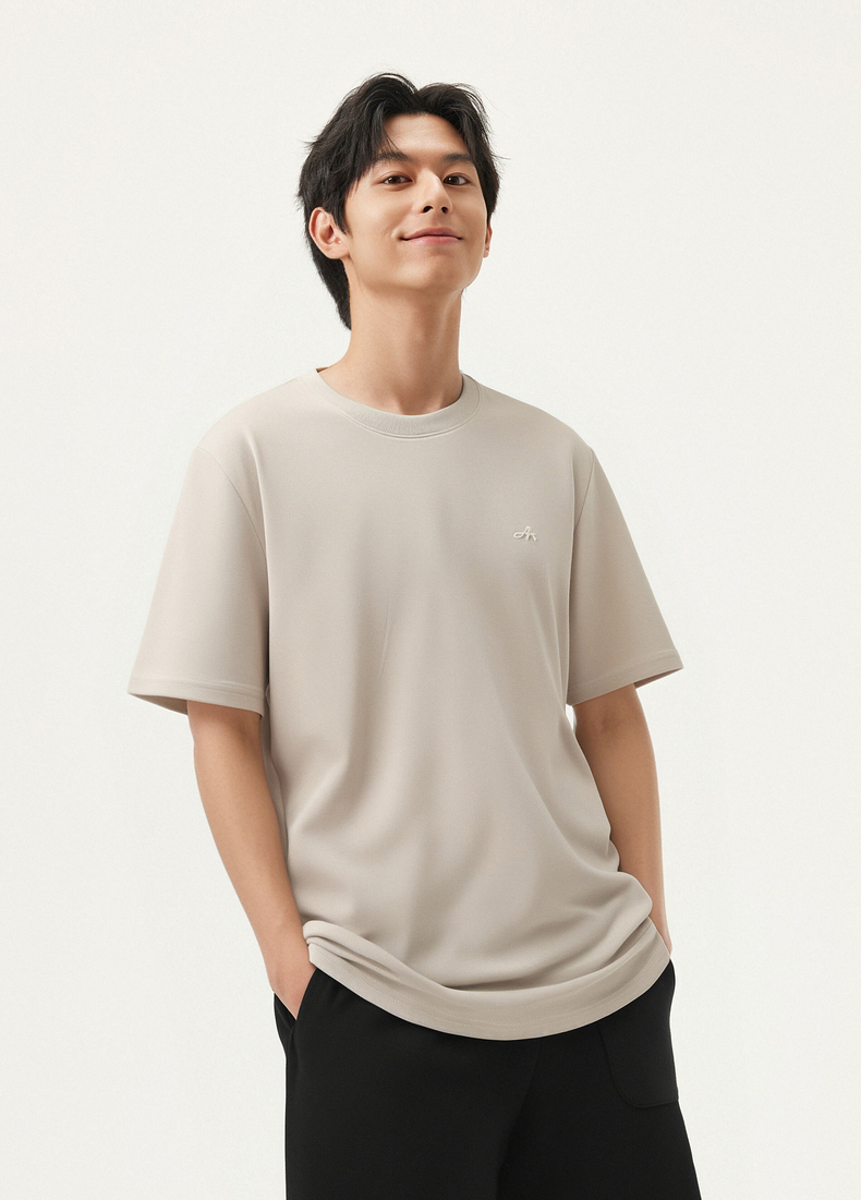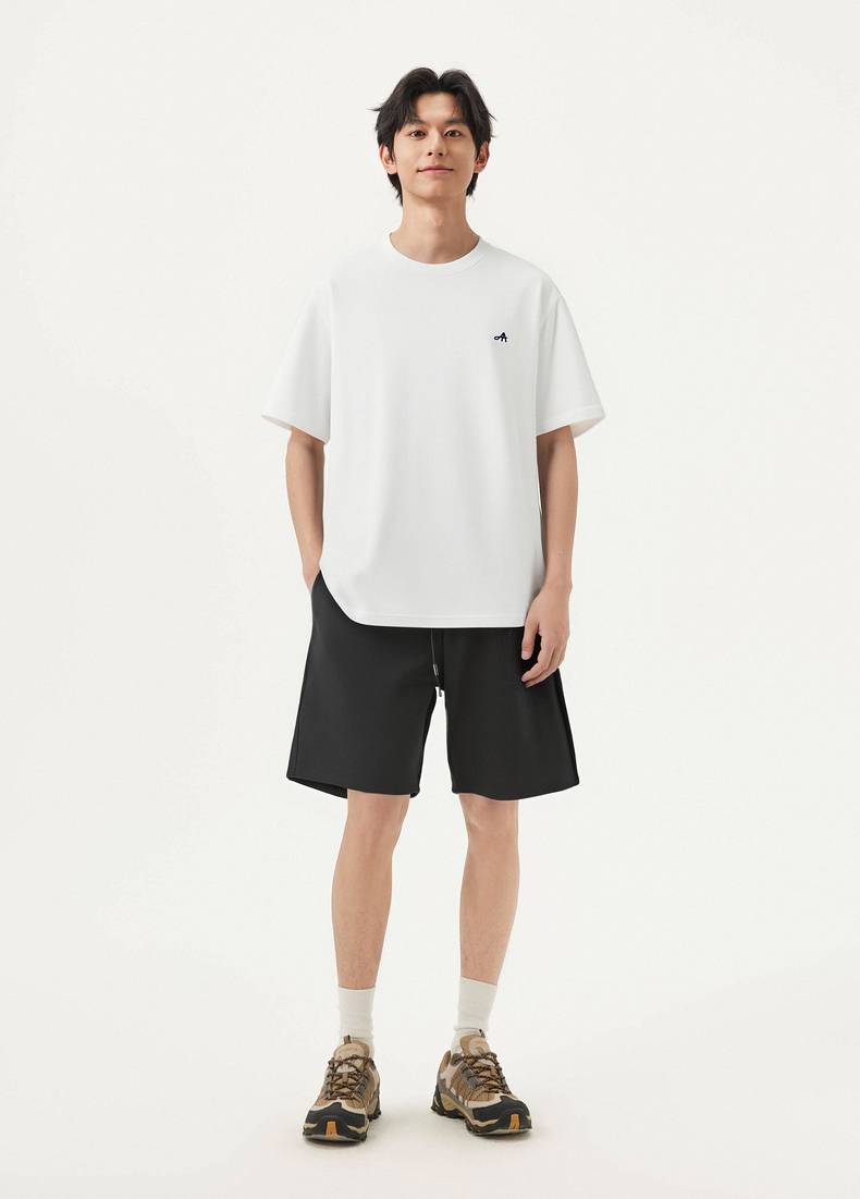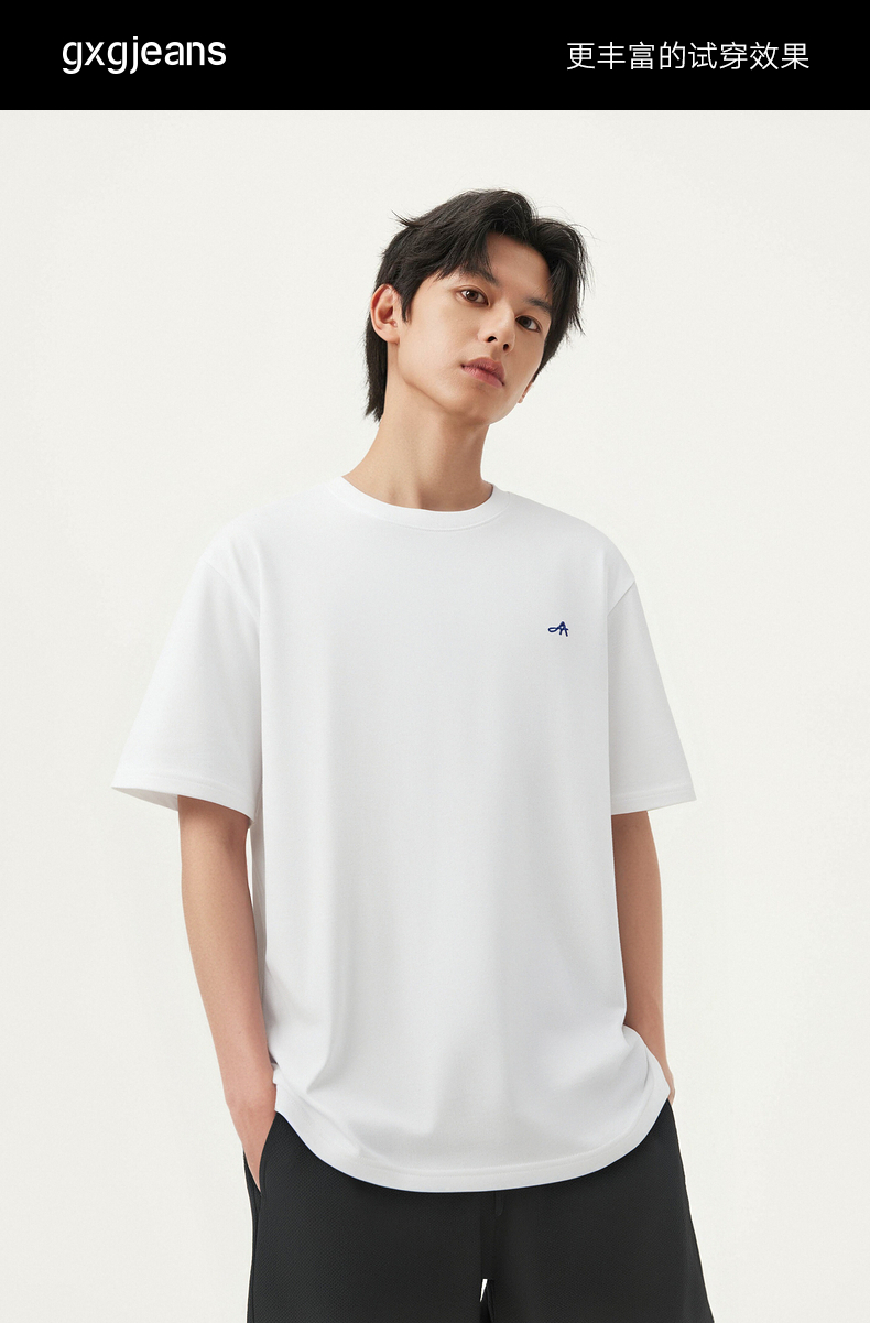 GXG男装 白色简约圆领短袖T恤满身植绒 夏季新品