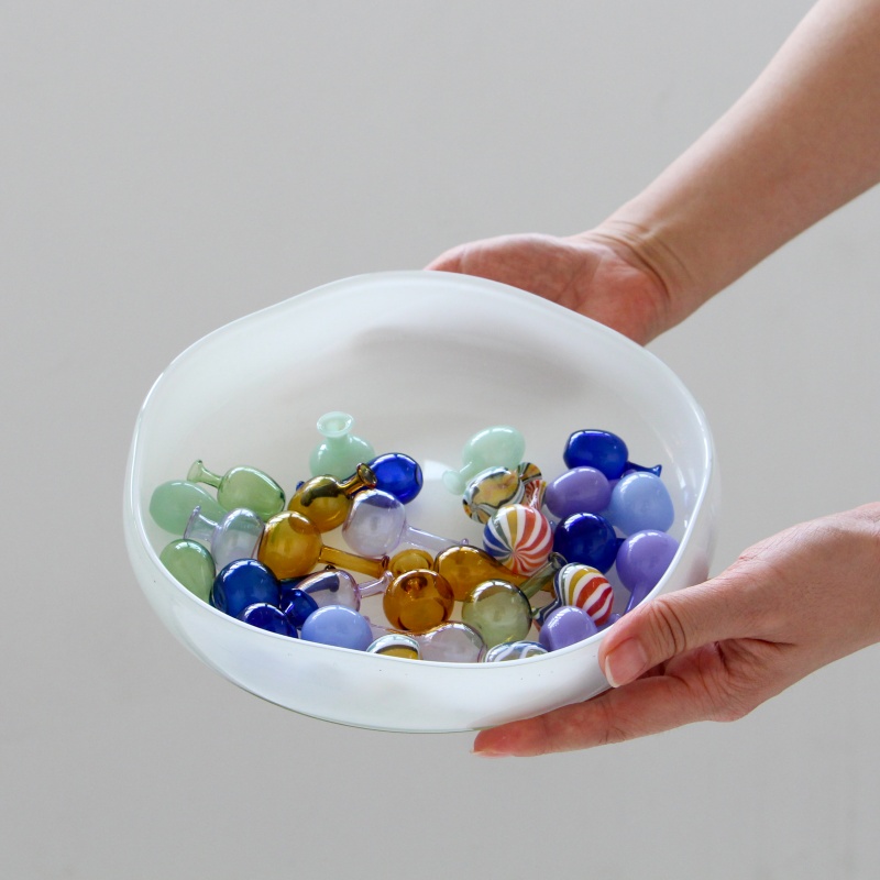 创意仿古褶子手工波浪口白菜玻璃花瓶家居软装台面水培果盘摆件