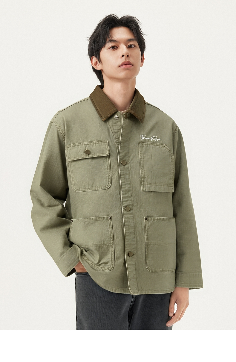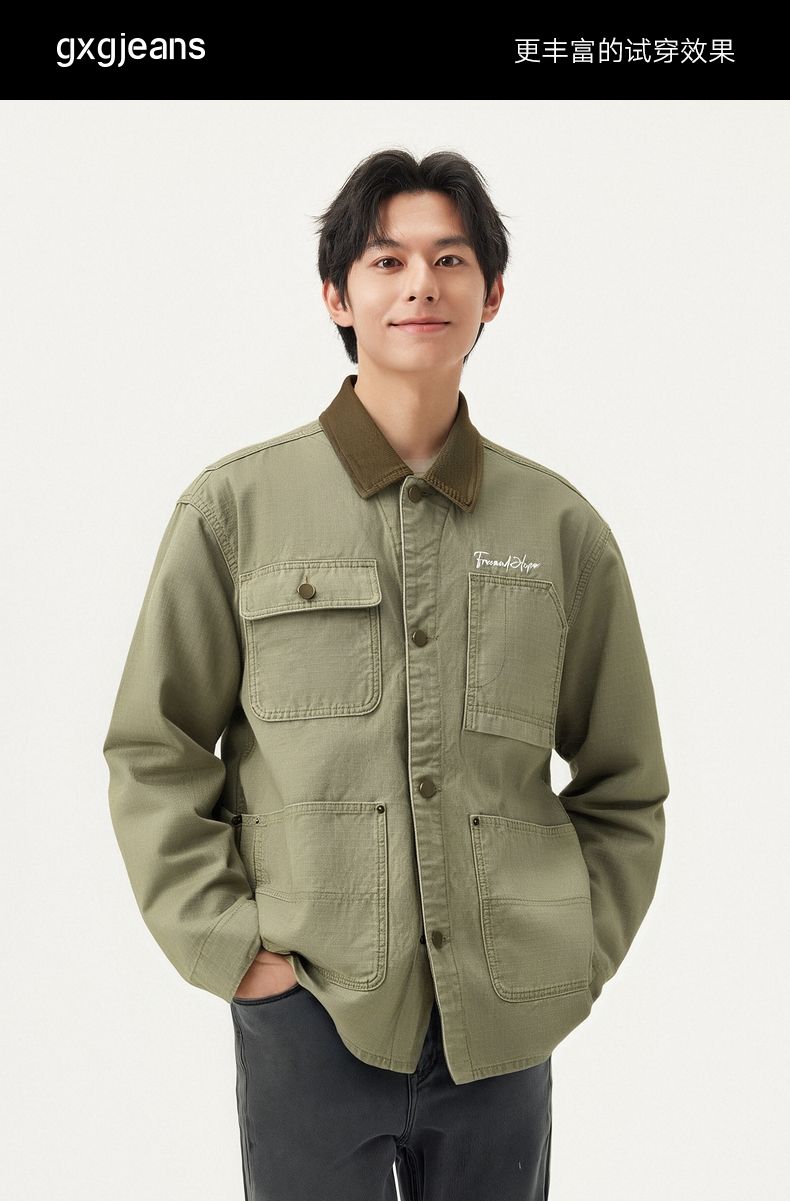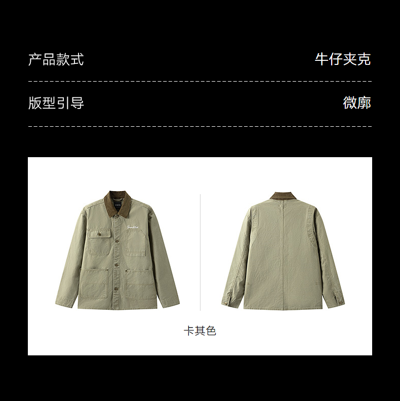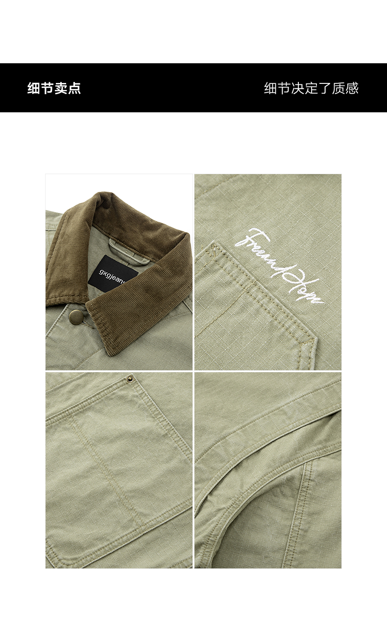 gxg.jeans男装 卡其色灯芯绒拼接巴恩风牛仔夹克外套男 25春热卖