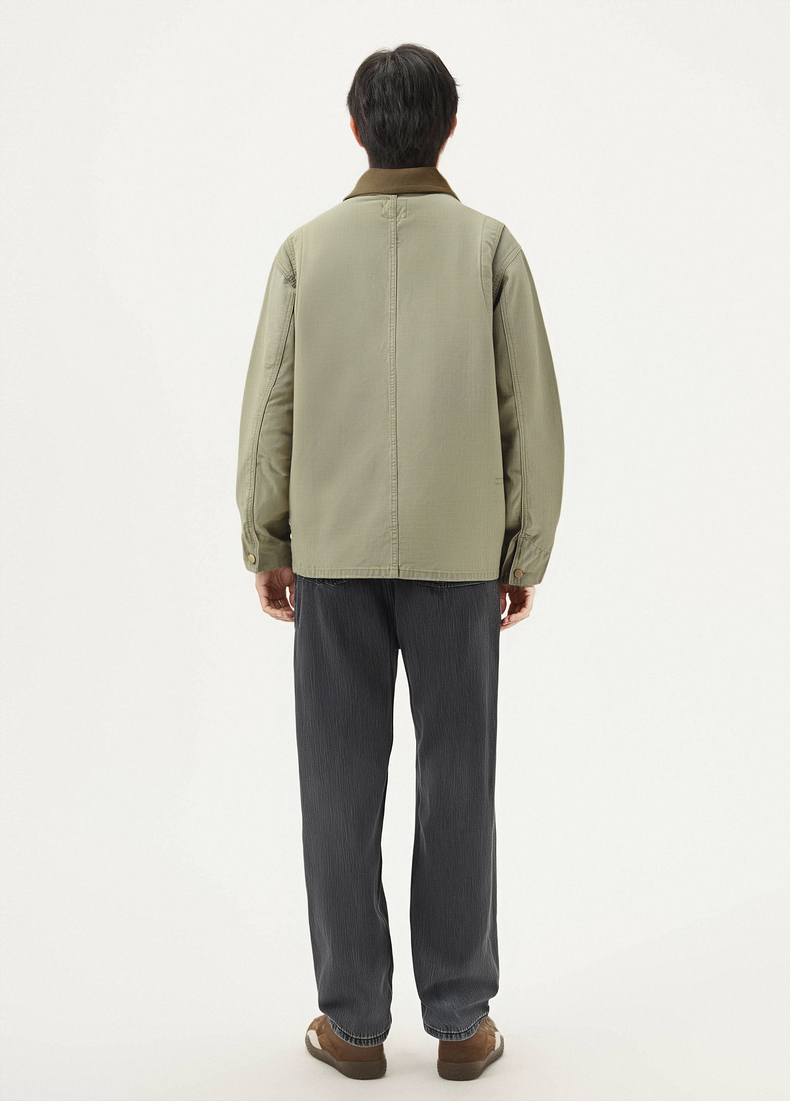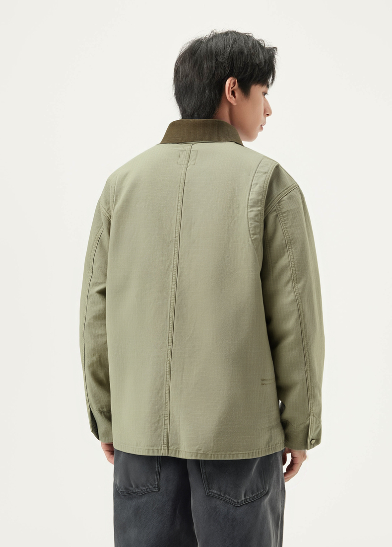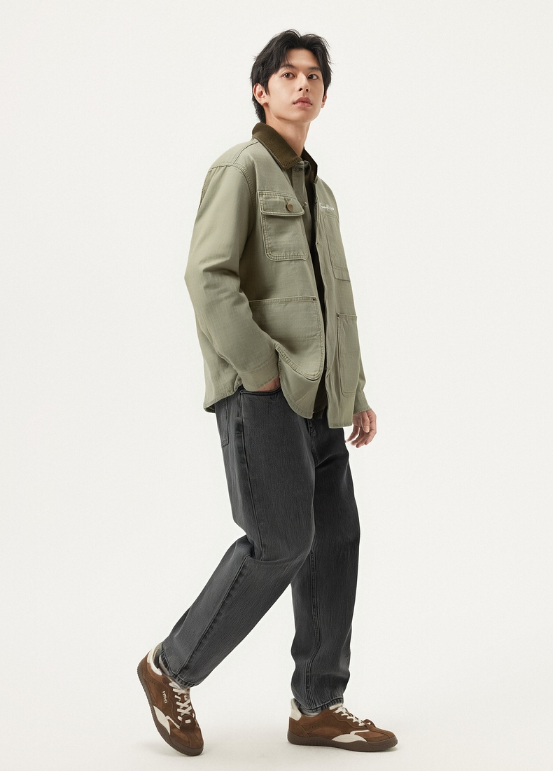 gxg.jeans男装 卡其色灯芯绒拼接巴恩风牛仔夹克外套男 25春热卖