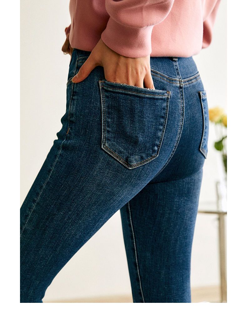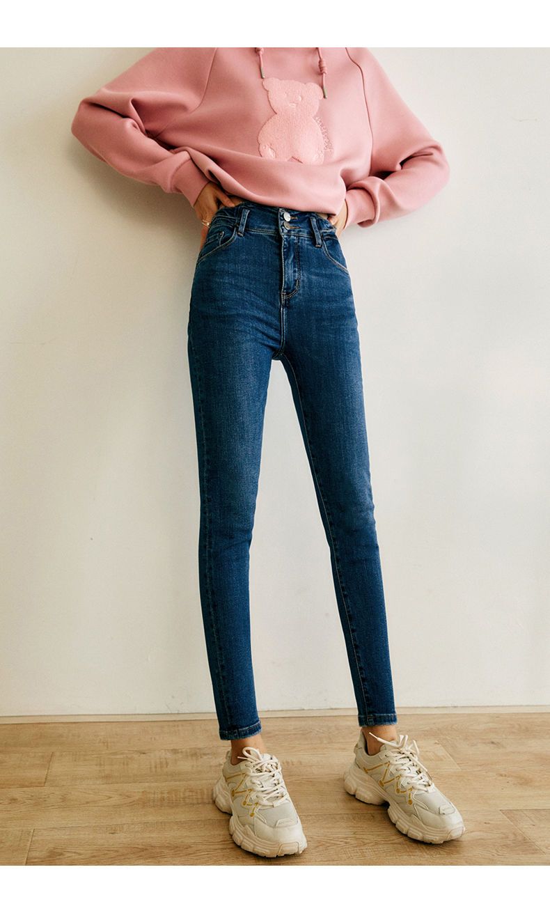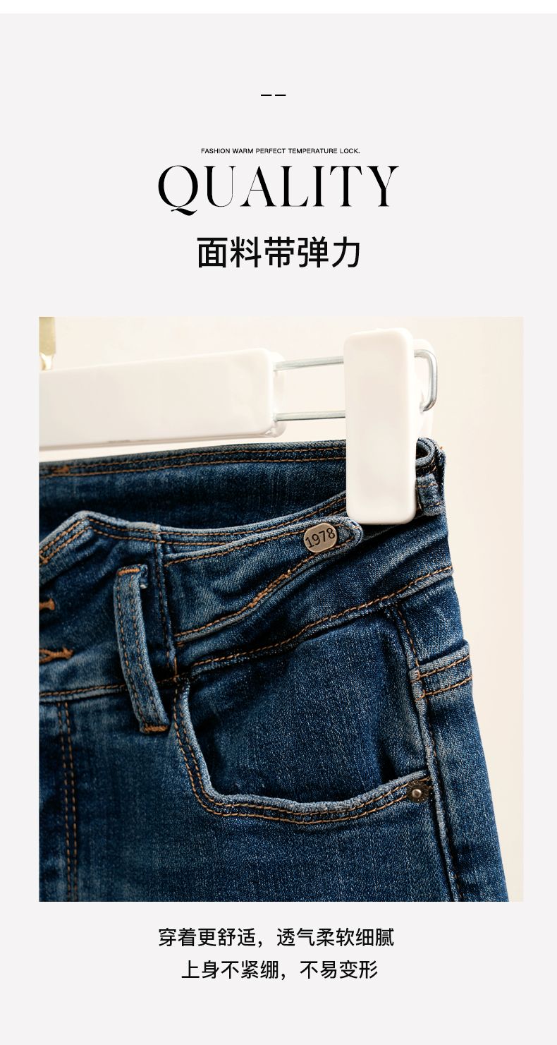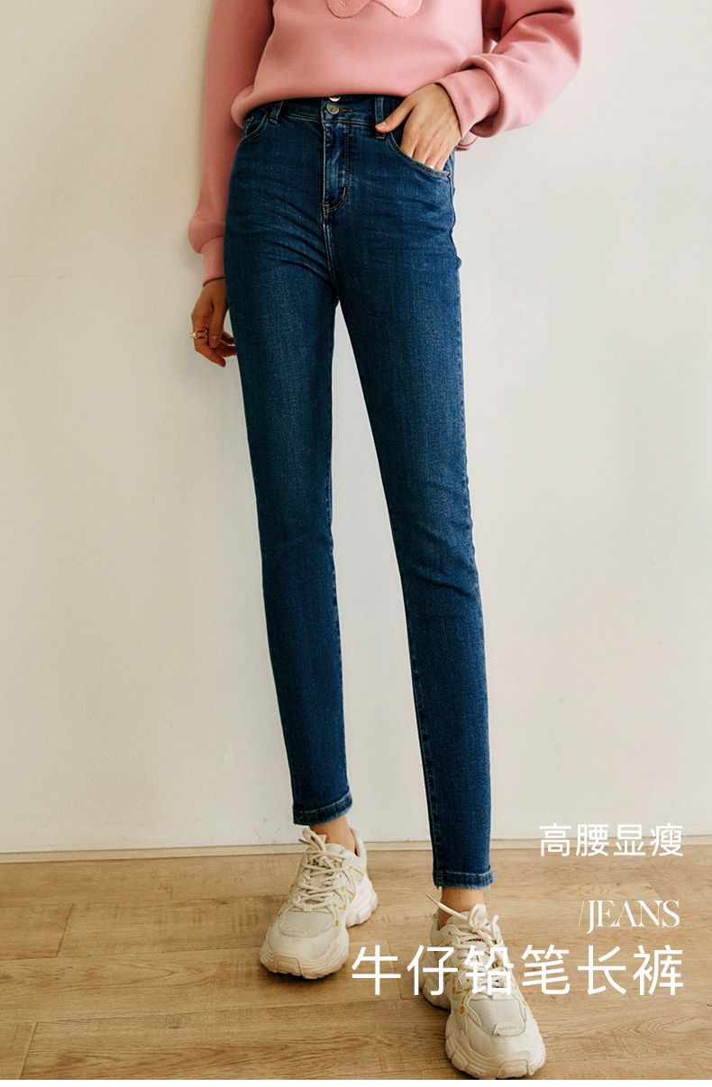 欧芮儿铅笔牛仔裤女2022春季新款高腰显瘦时尚休闲直筒弹力小脚裤