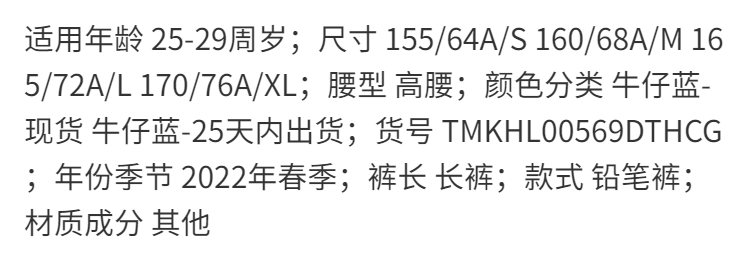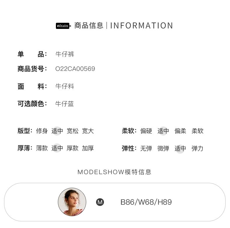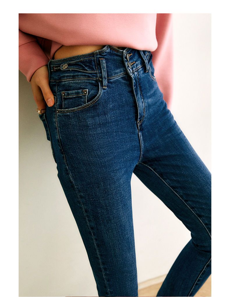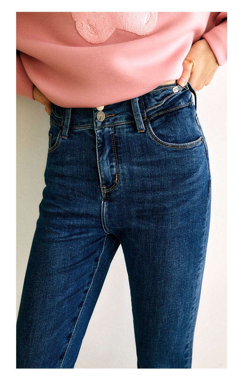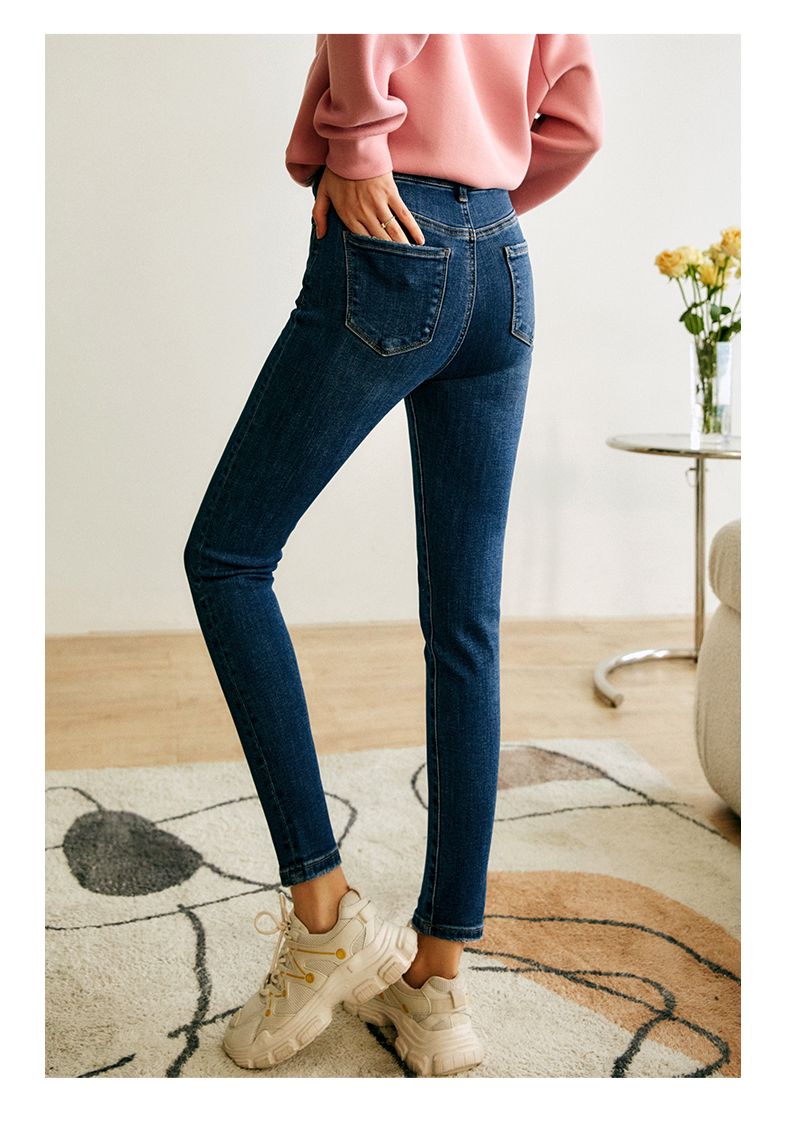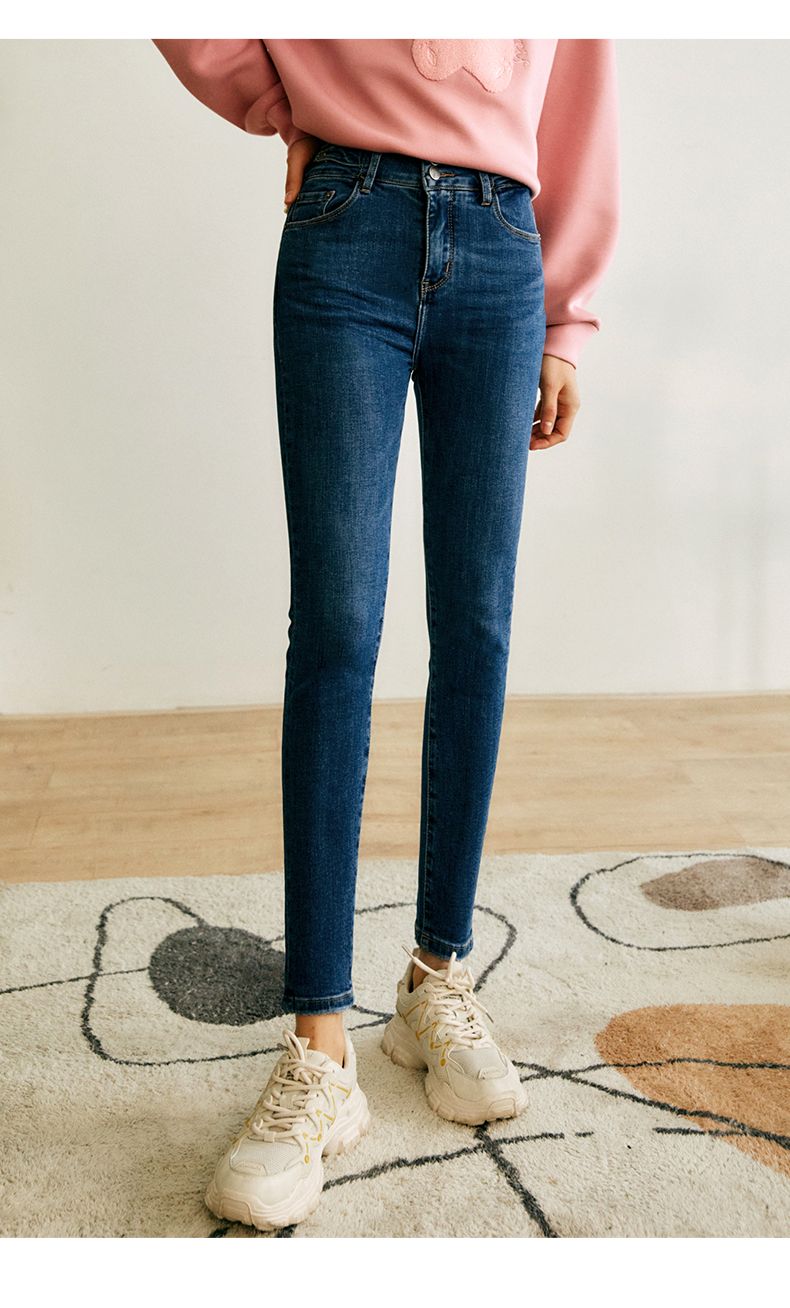 欧芮儿铅笔牛仔裤女2022春季新款高腰显瘦时尚休闲直筒弹力小脚裤