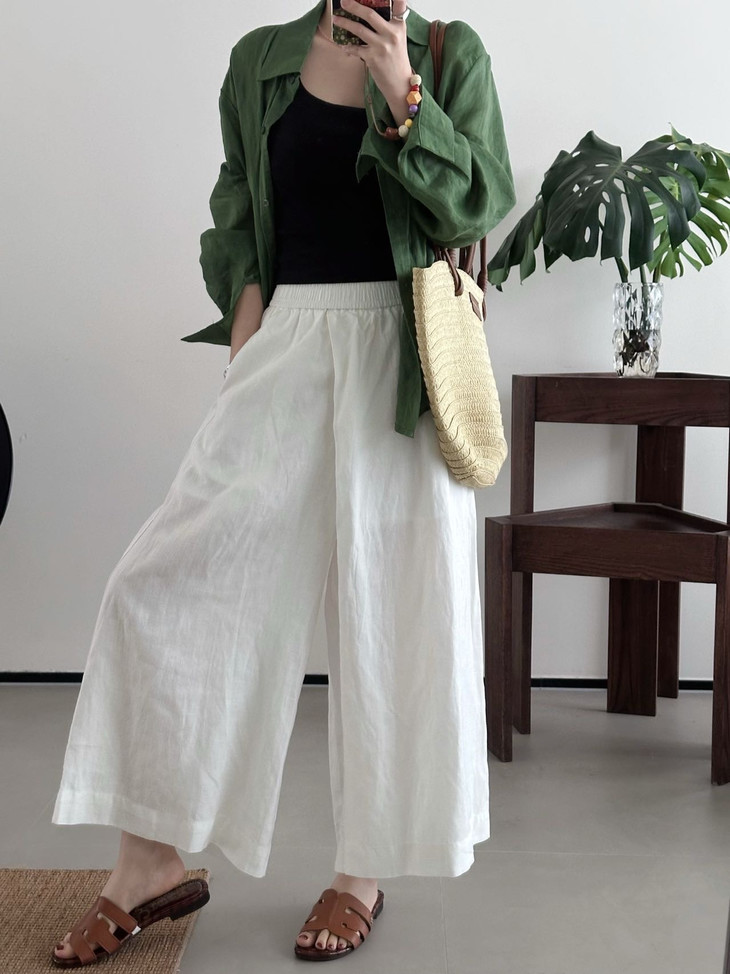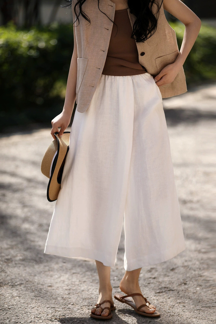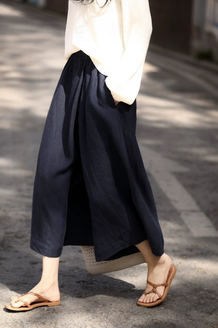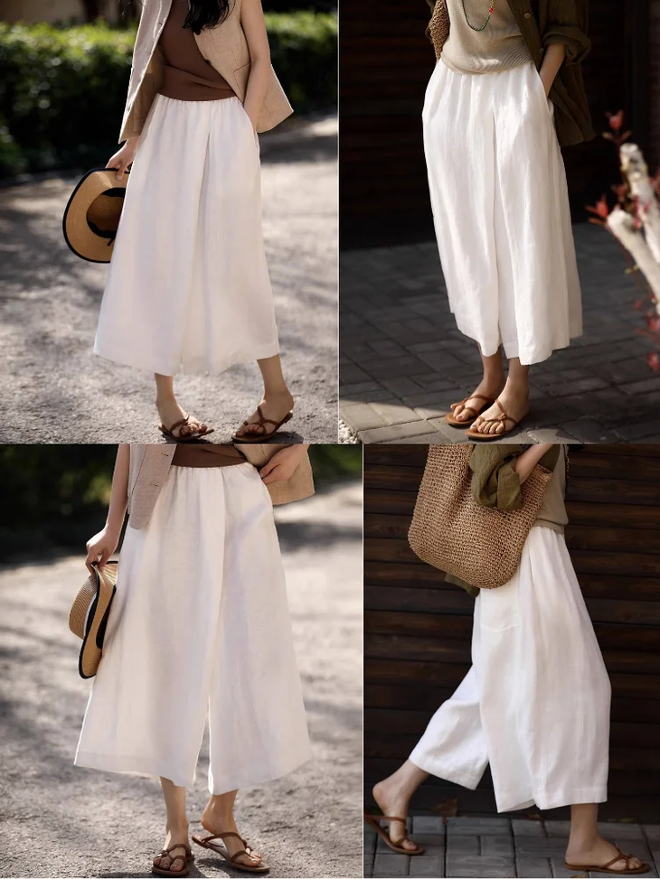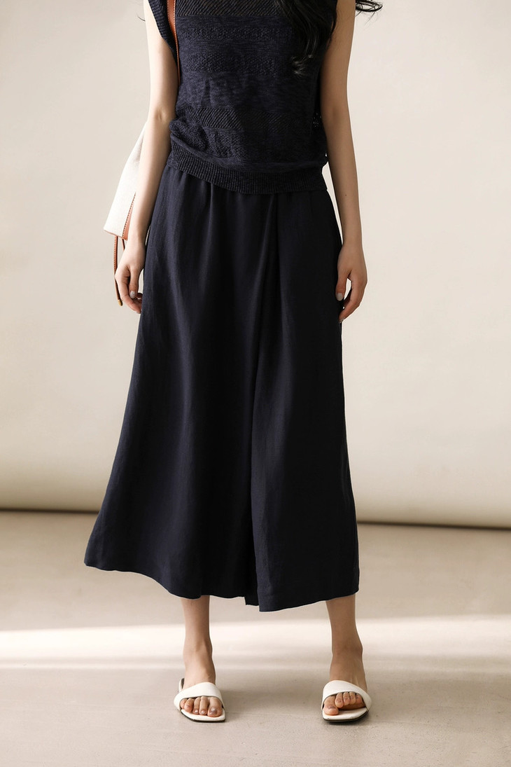 ✨【亚麻天丝凉感阔腿九分裙裤】,甄选汉麻斜纹布料,手感蓬松韧劲有质感,看着是裙子,其实是裤子,安全感爆棚, 巨显瘦!