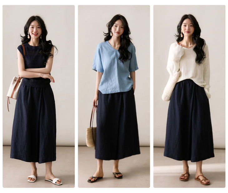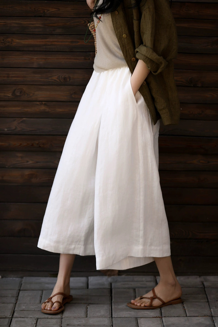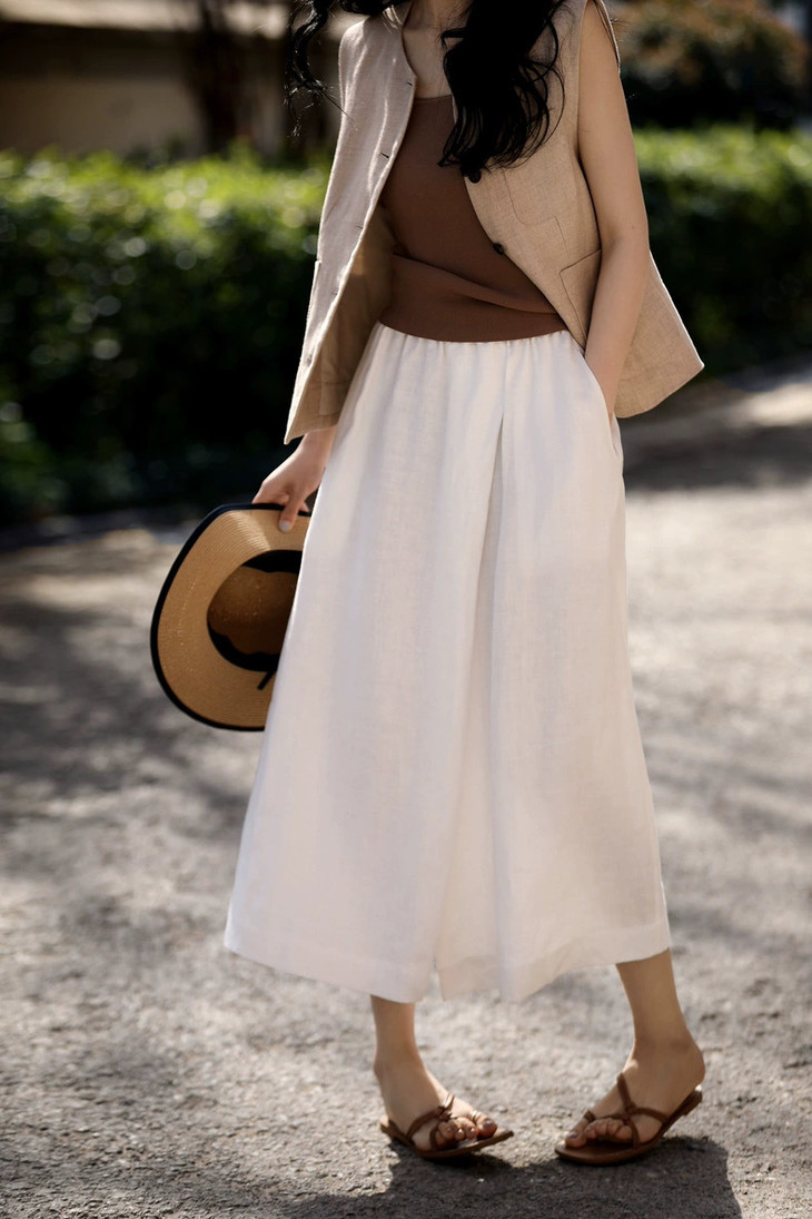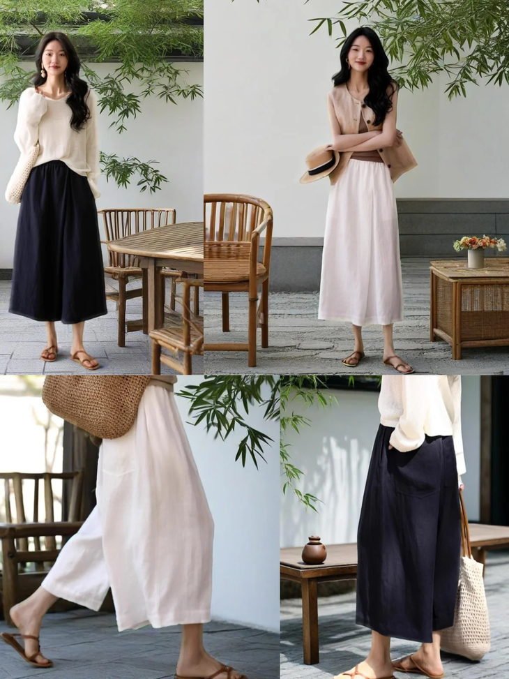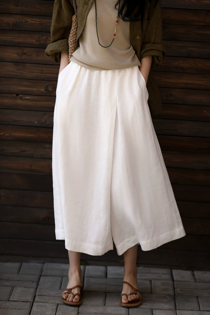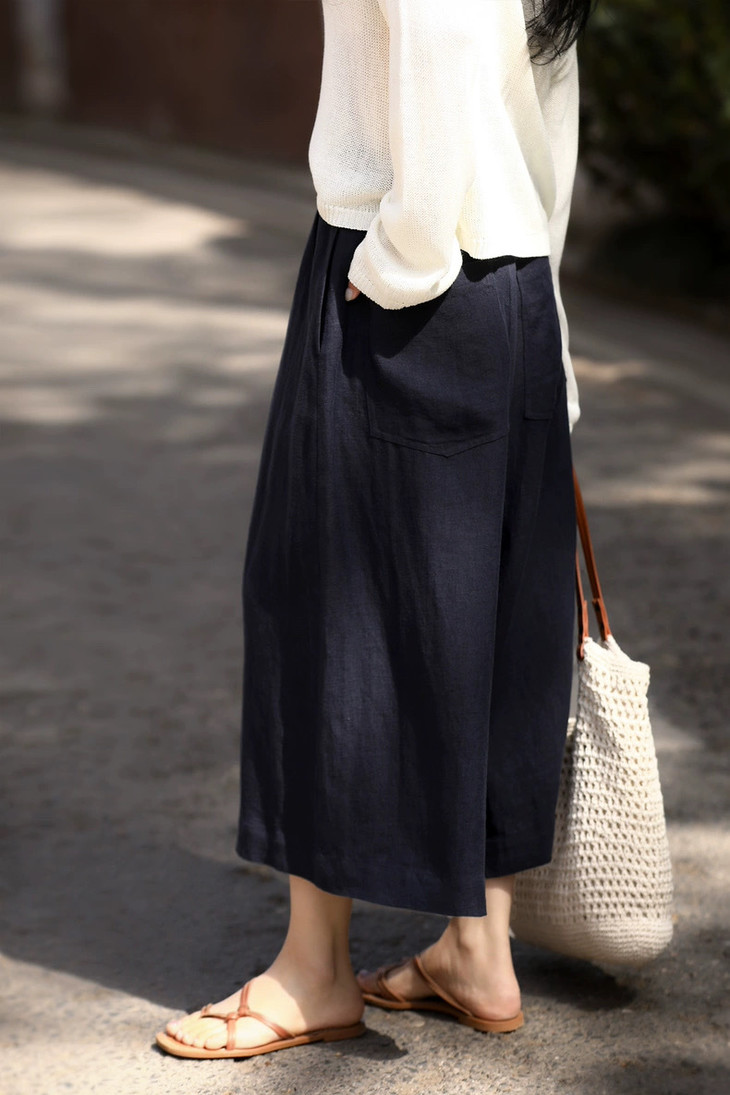 ✨【亚麻天丝凉感阔腿九分裙裤】,甄选汉麻斜纹布料,手感蓬松韧劲有质感,看着是裙子,其实是裤子,安全感爆棚, 巨显瘦!