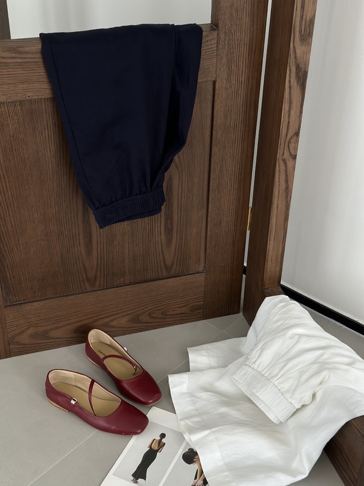 轻盈透气九分的裤长,刚好露出纤细的脚踝
