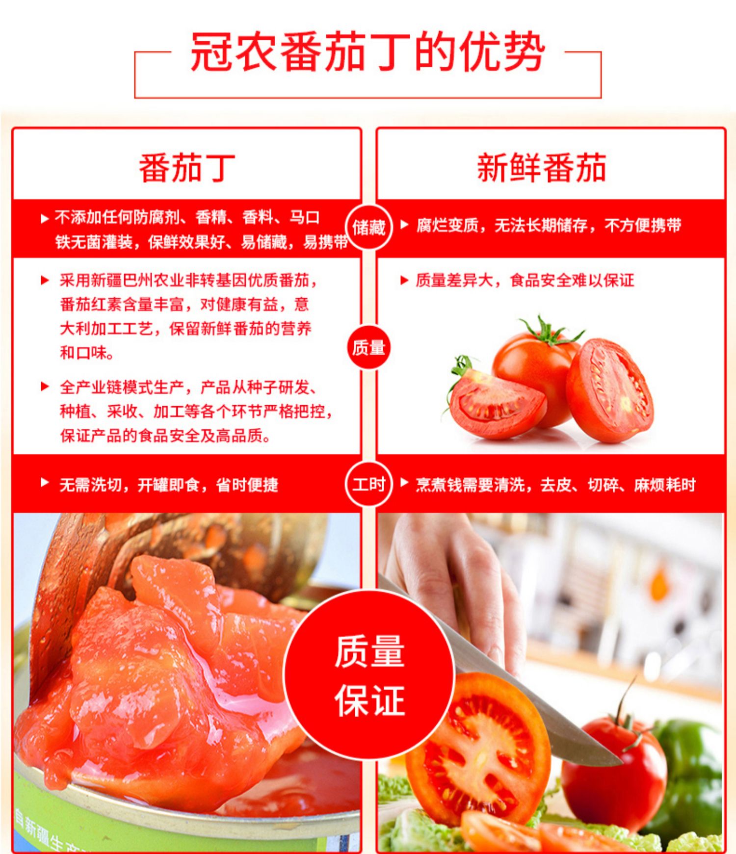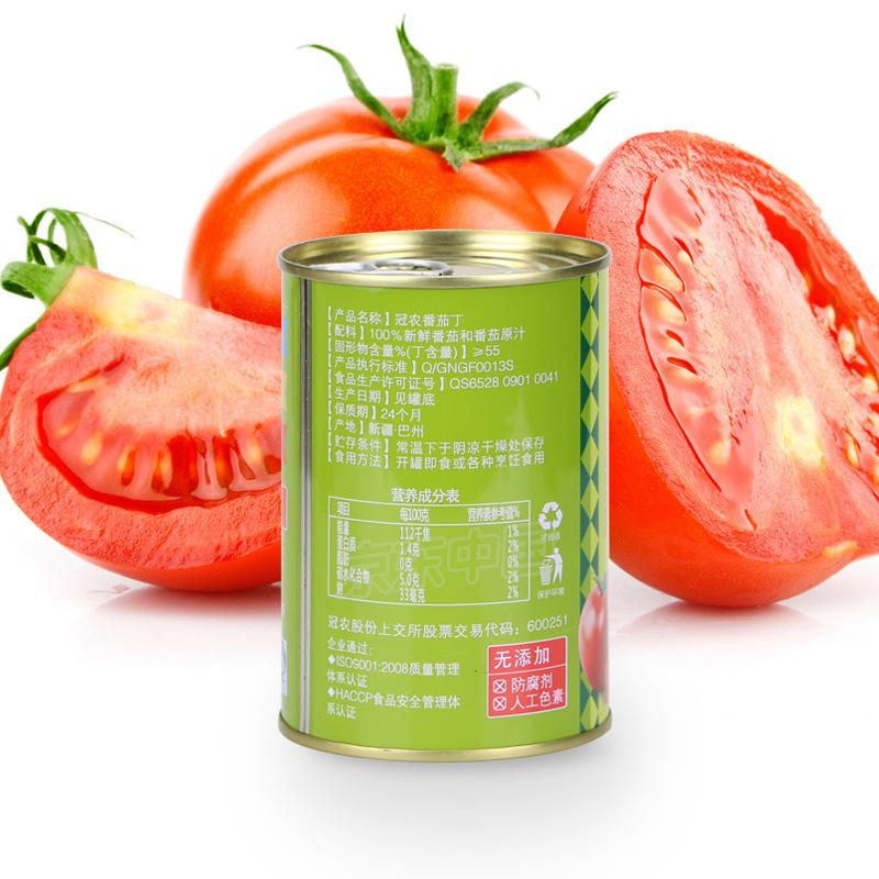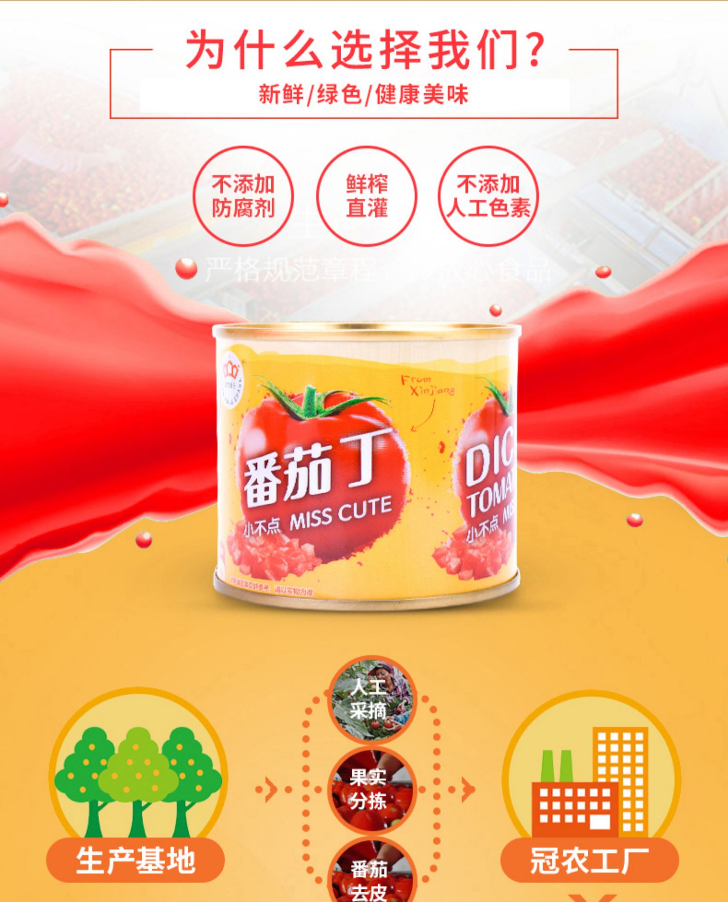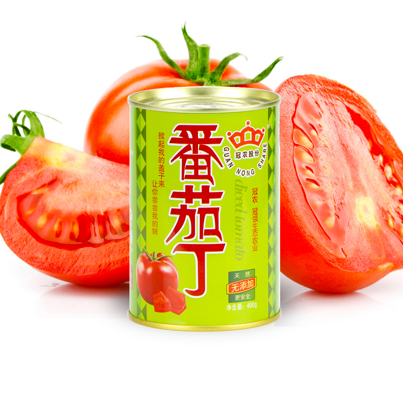 丨生态丨新疆番茄丁罐头400g*12罐 新鲜去皮西红柿自然熟绿食低脂番茄酱 冠农