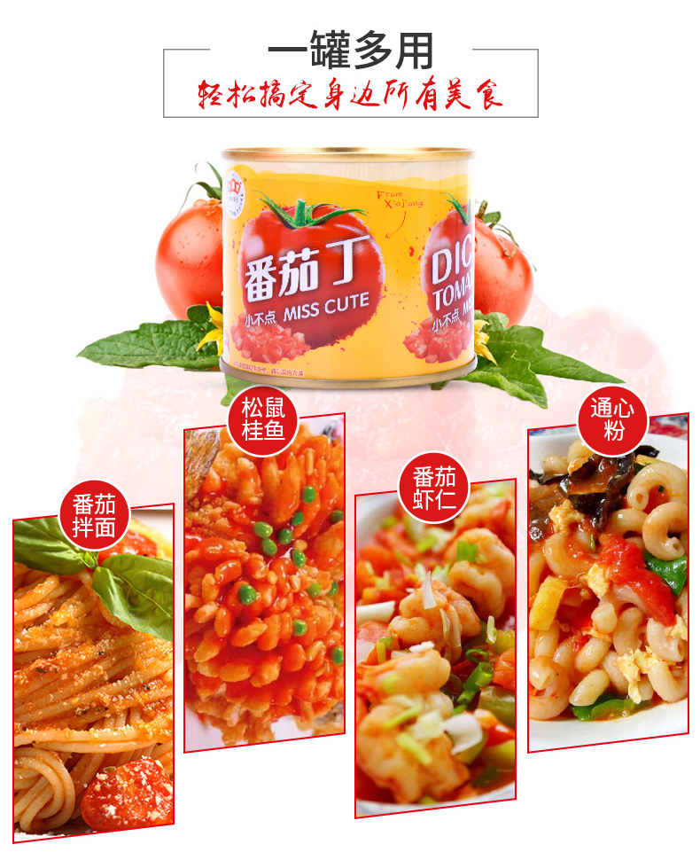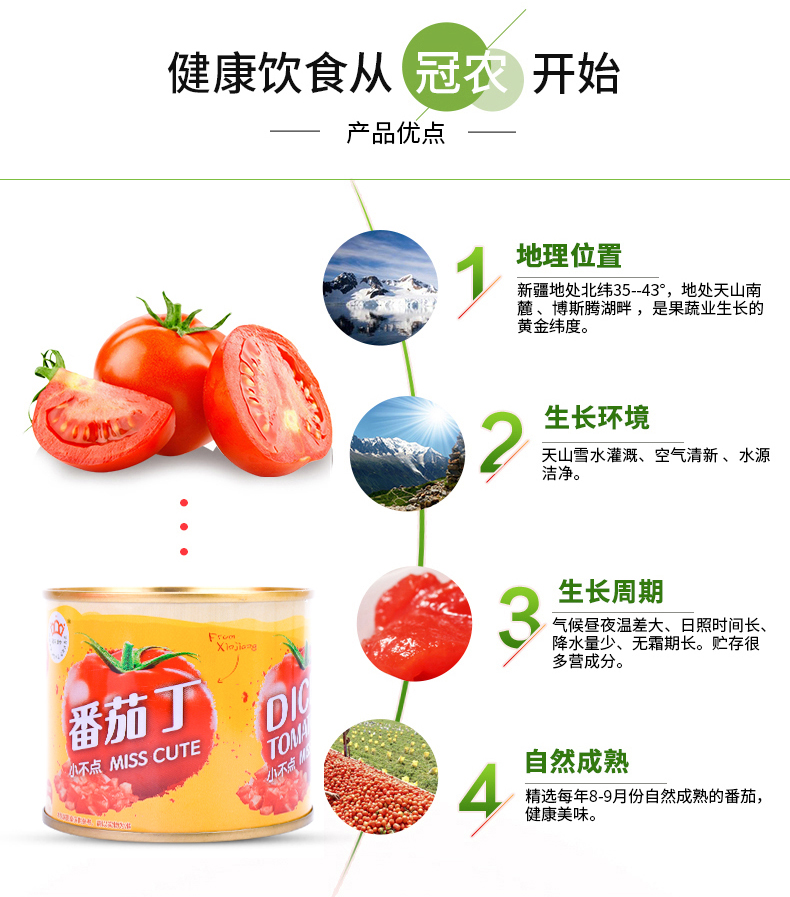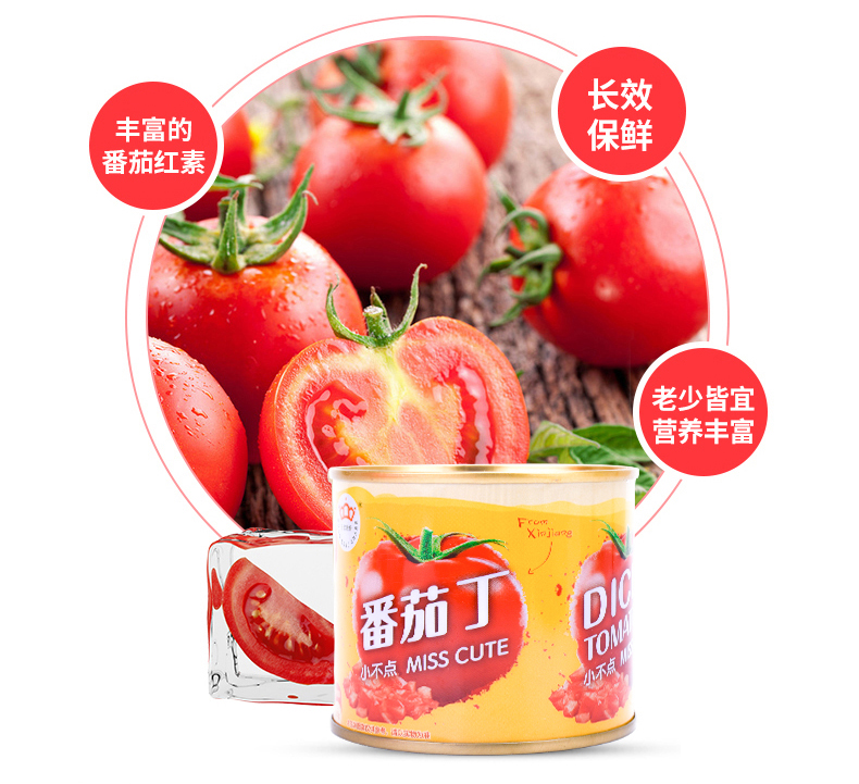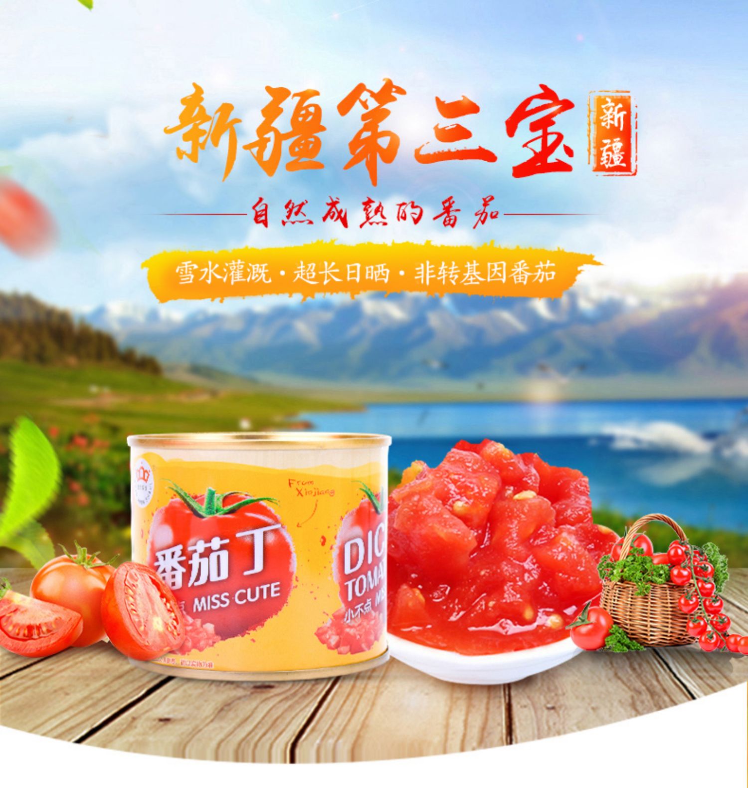 丨生态丨新疆番茄丁罐头400g*12罐 新鲜去皮西红柿自然熟绿食低脂番茄酱 冠农