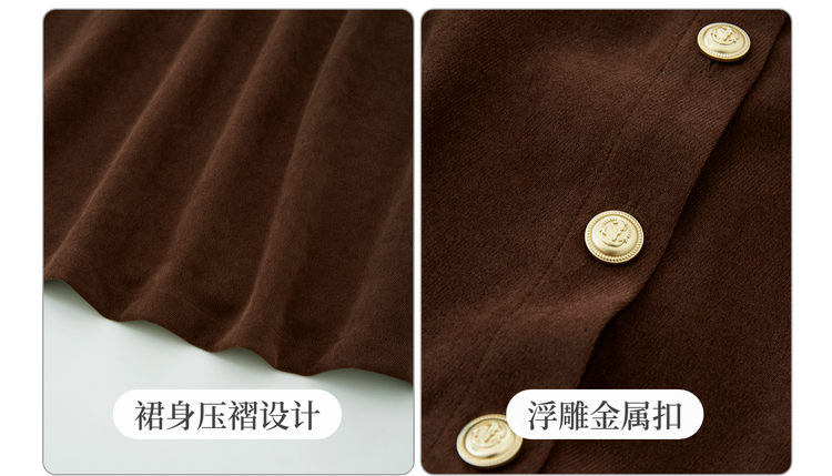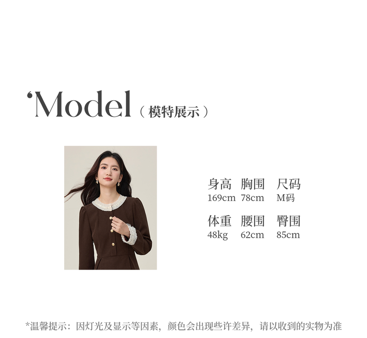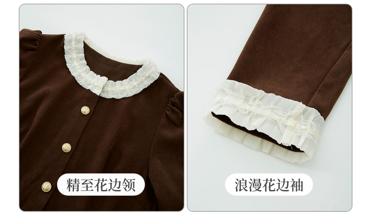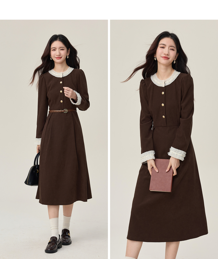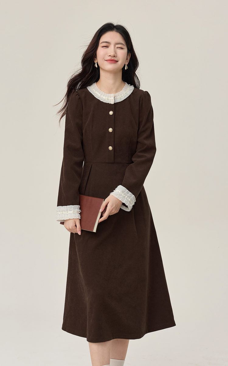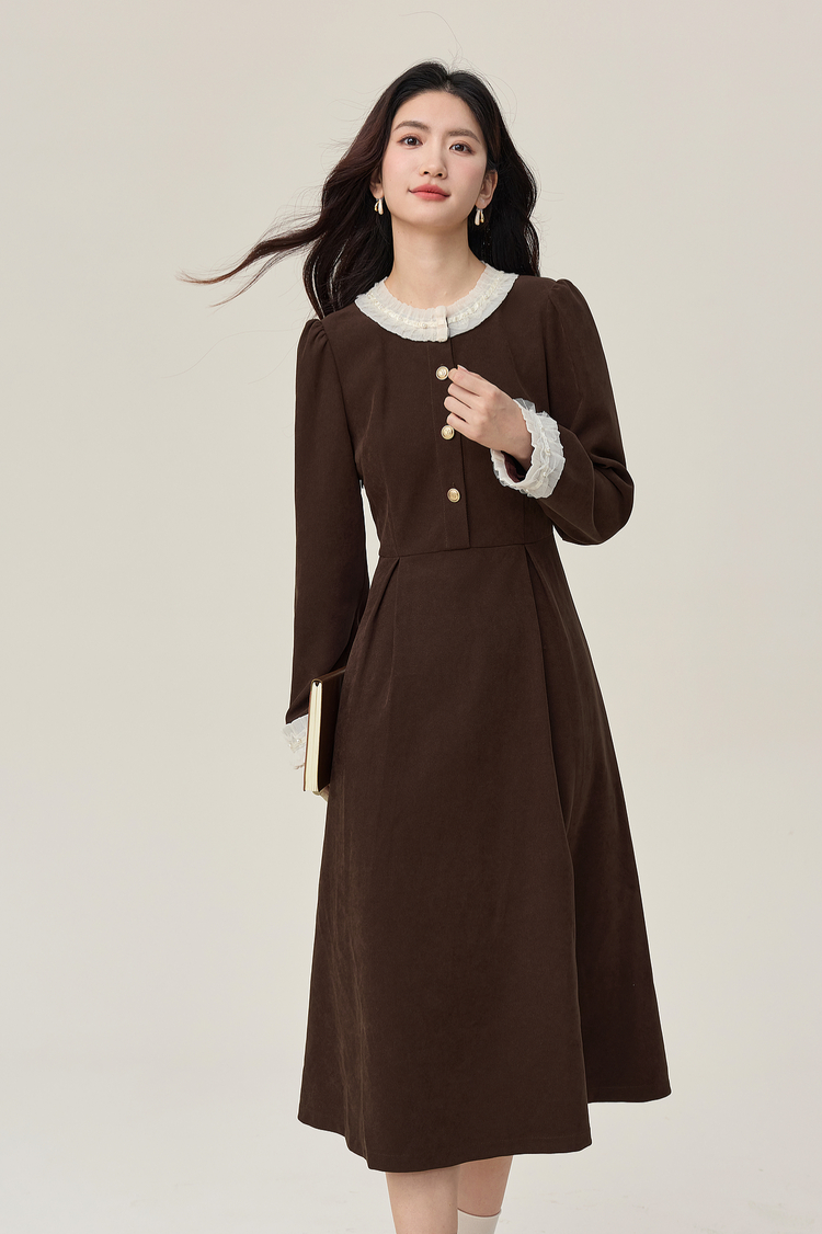 【年货节】熙世界2025秋冬新款千金赫本风磨毛连衣裙女长袖法式优雅收腰裙子