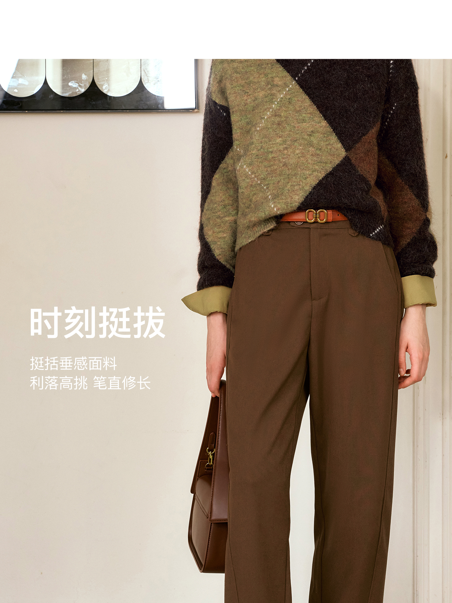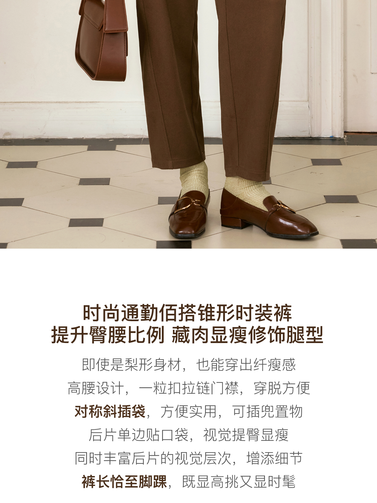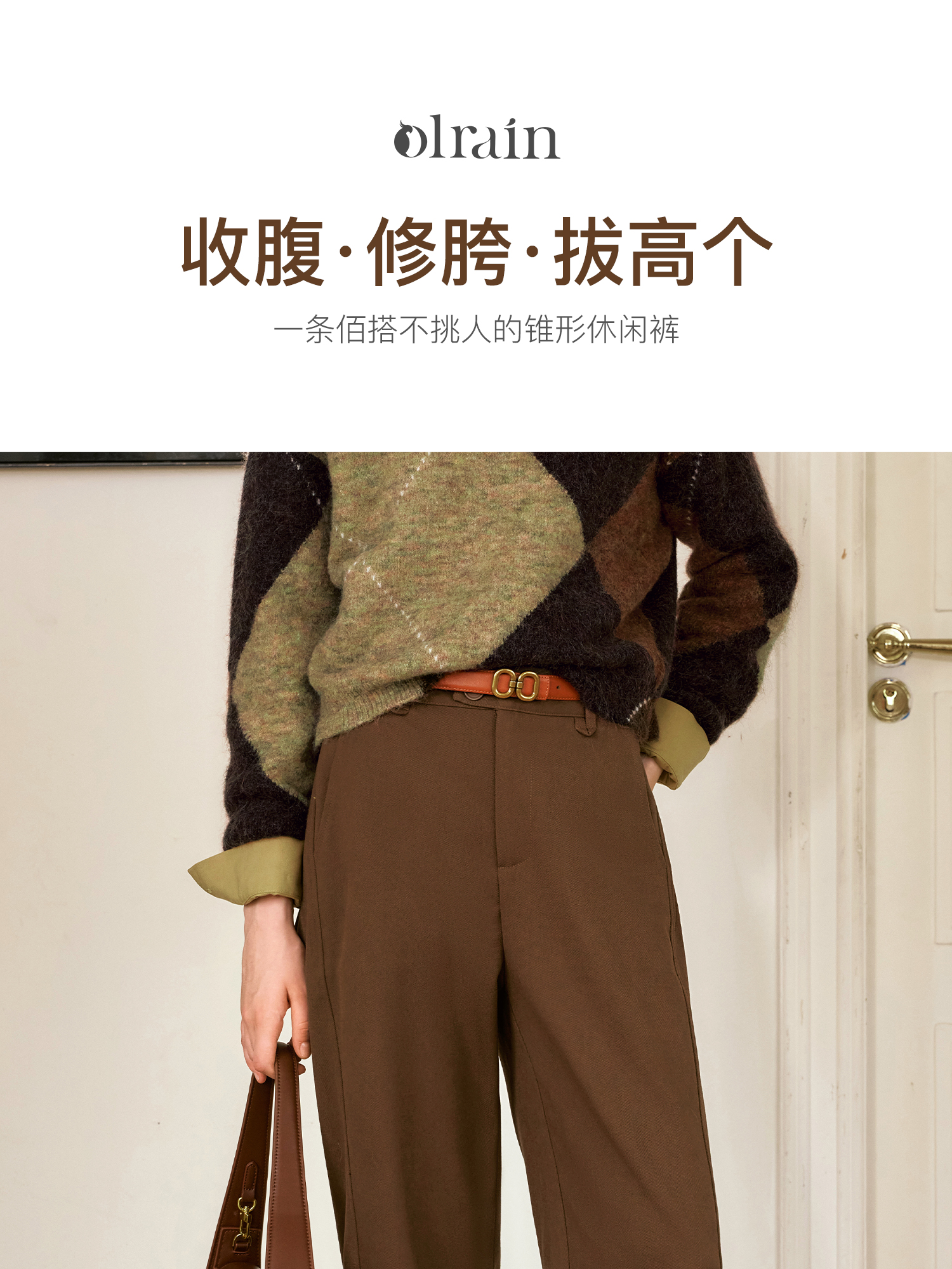 OLrain欧芮儿摩卡色休闲裤女秋季2024年新款通勤百搭锥形西裤