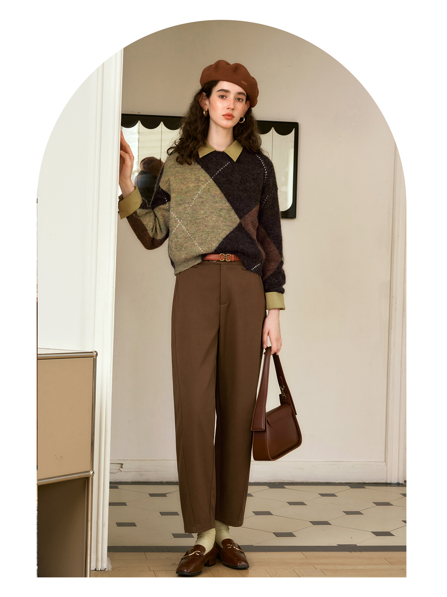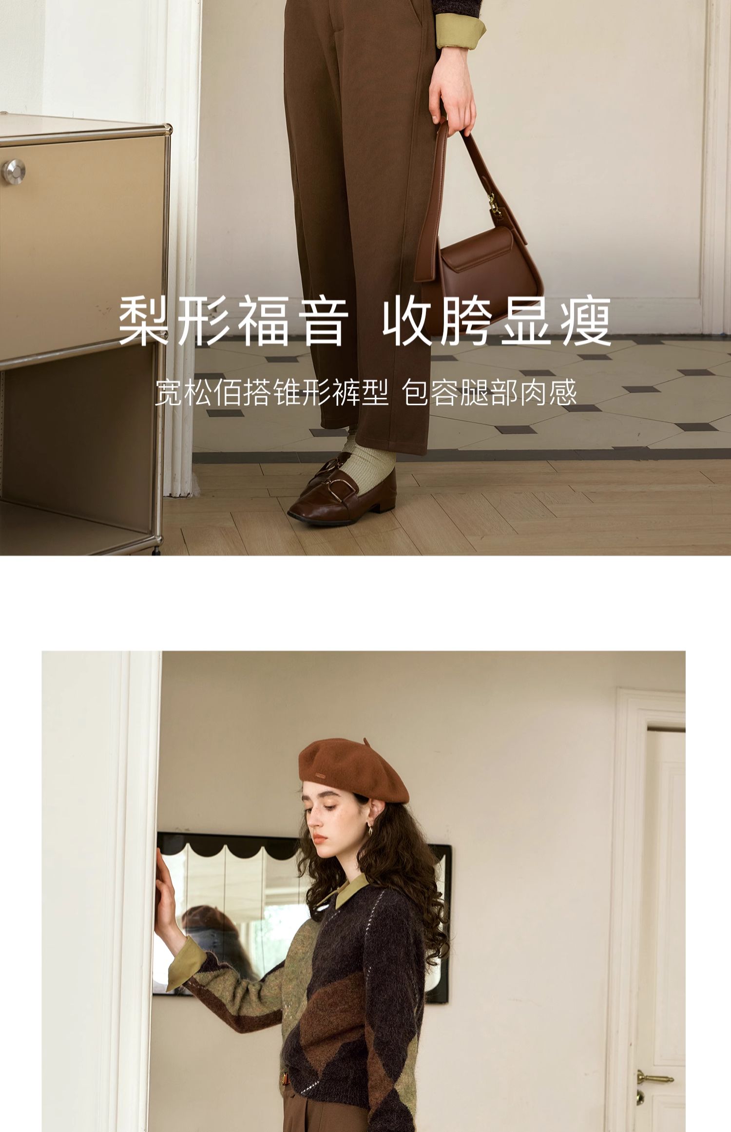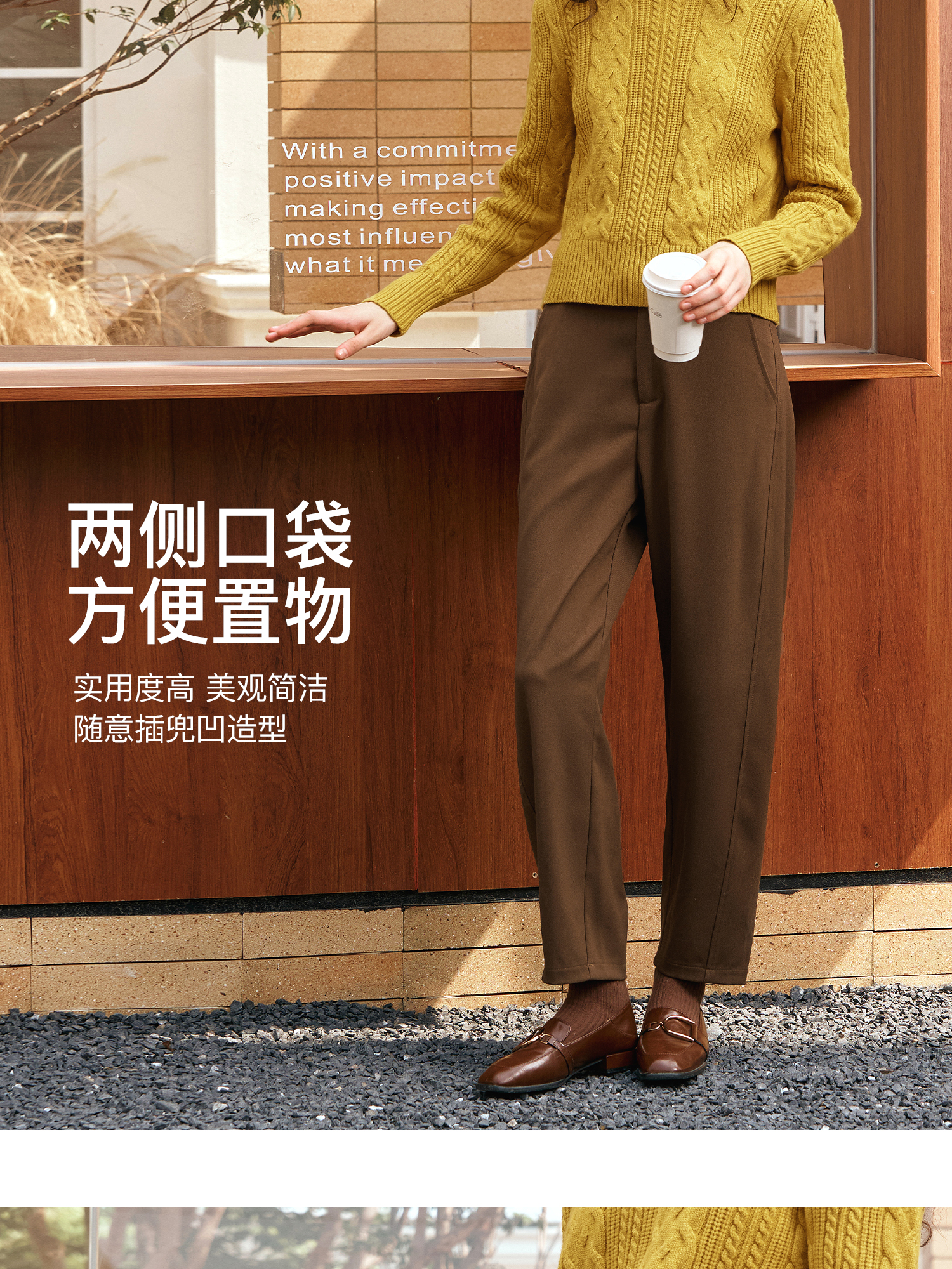 OLrain欧芮儿摩卡色休闲裤女秋季2024年新款通勤百搭锥形西裤