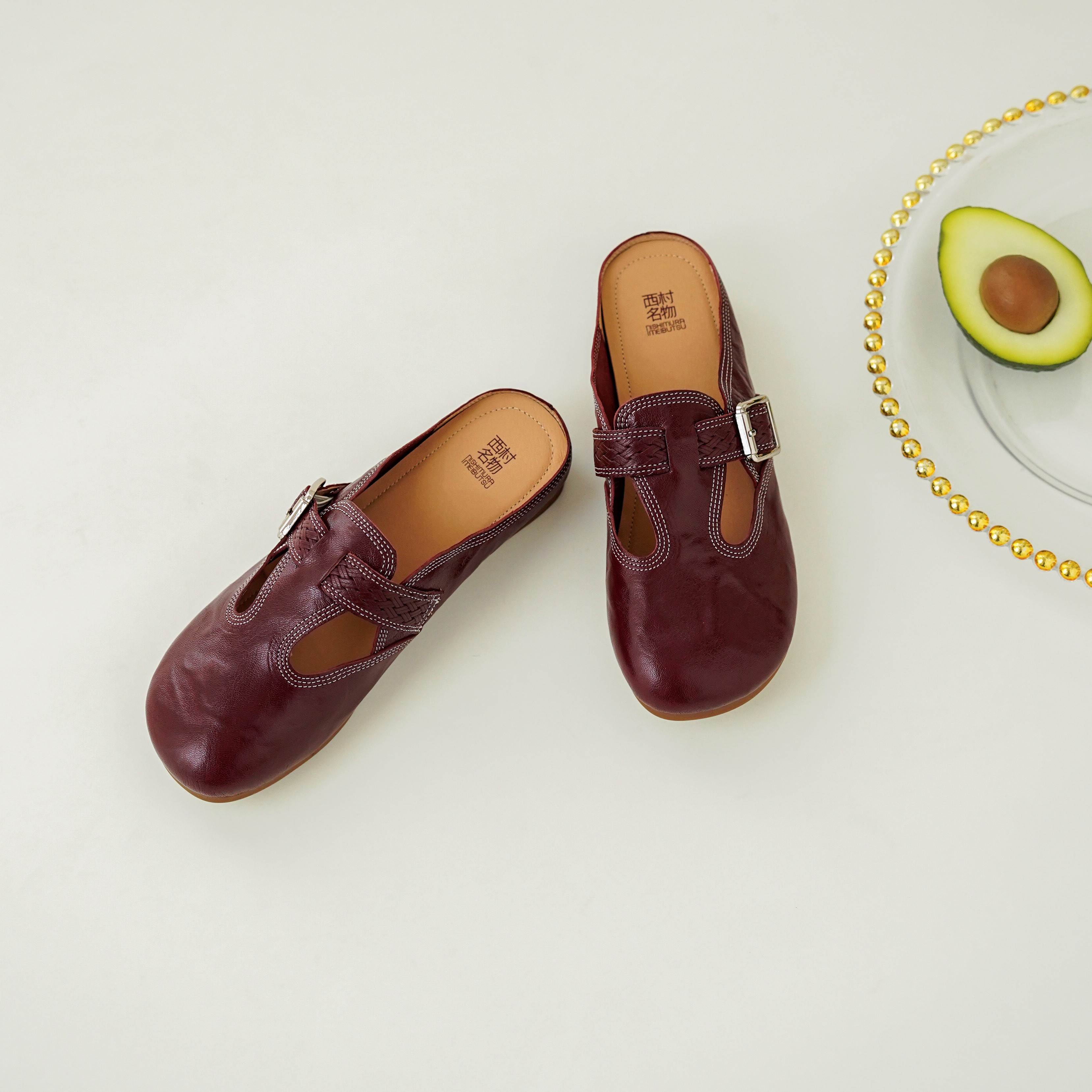 【羊皮革】西村名物2026年夏季新款猪皮半里/猪皮垫前包后空一脚蹬穆勒拖鞋X26AH1789
