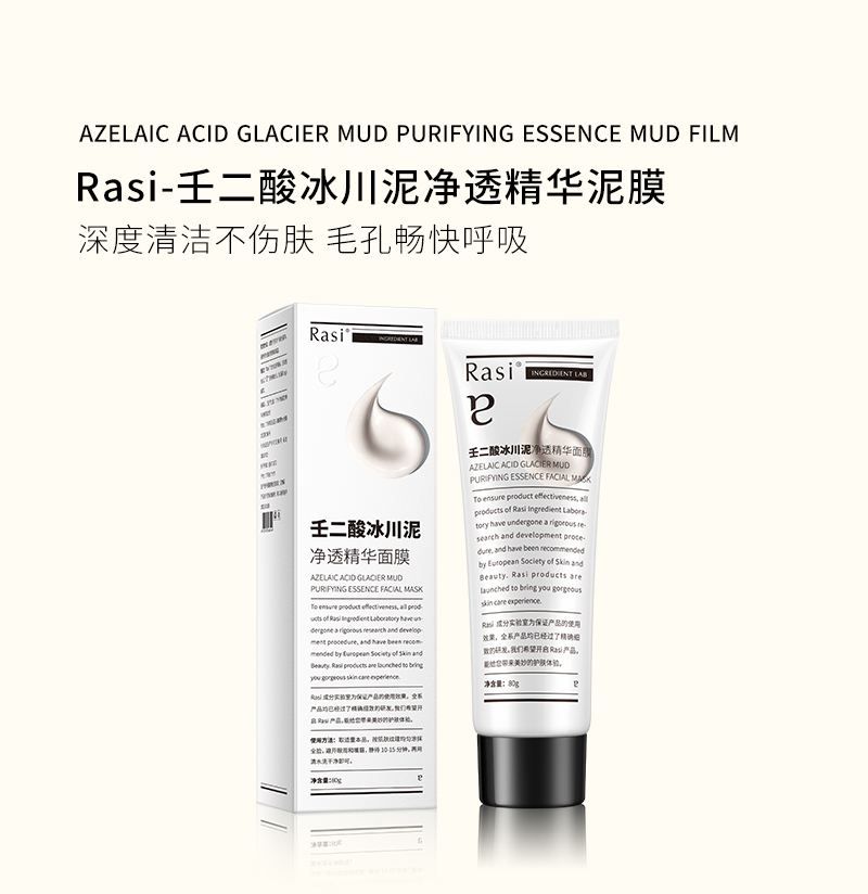 【Rasi壬二酸冰川泥净透精华泥膜】皮肤清道夫