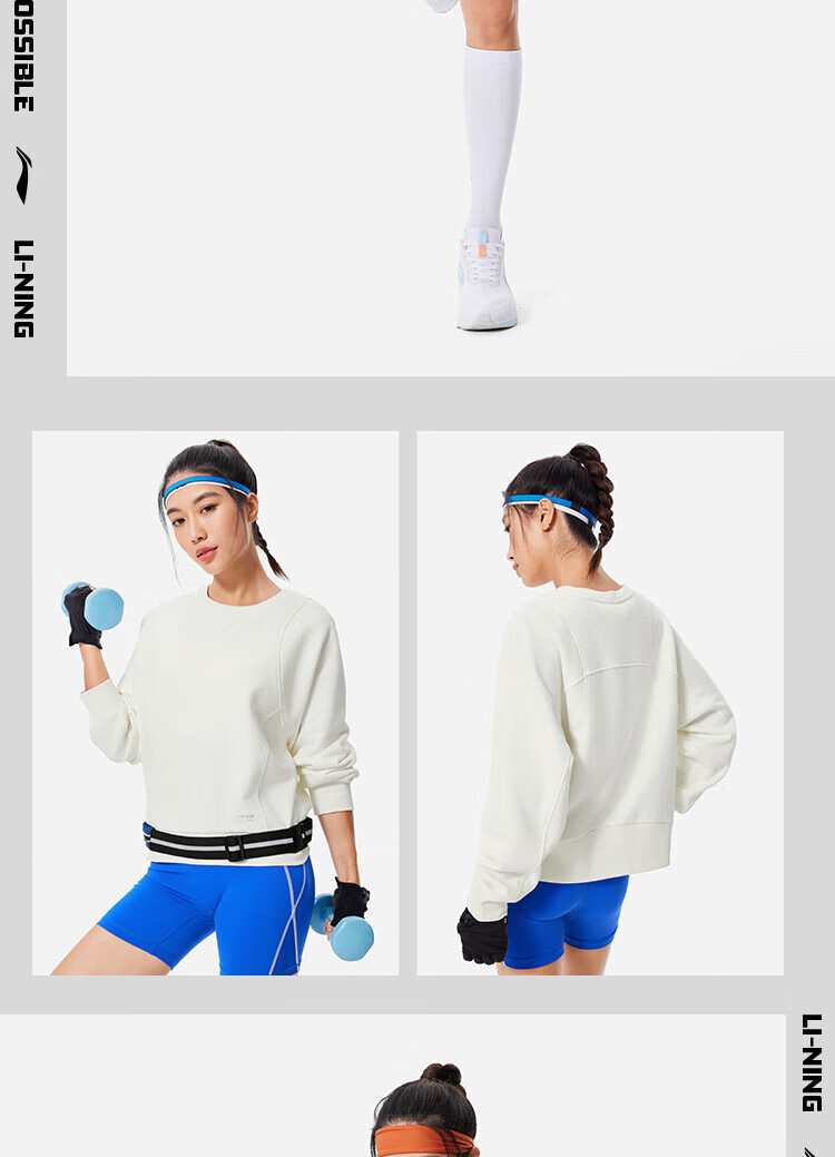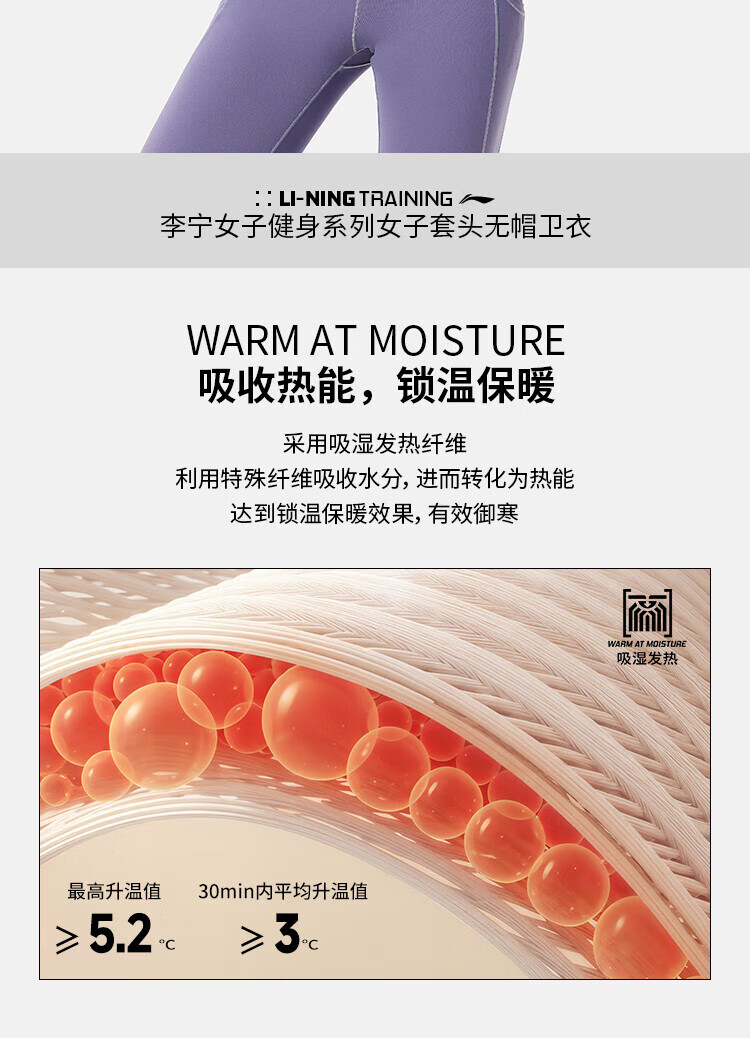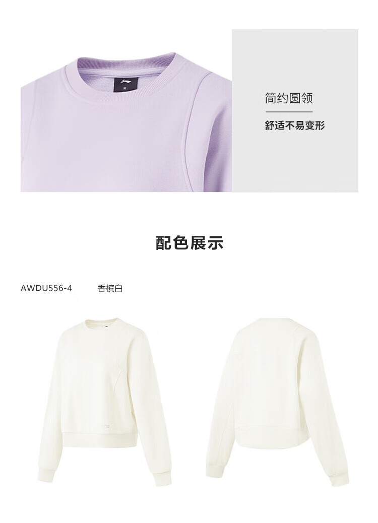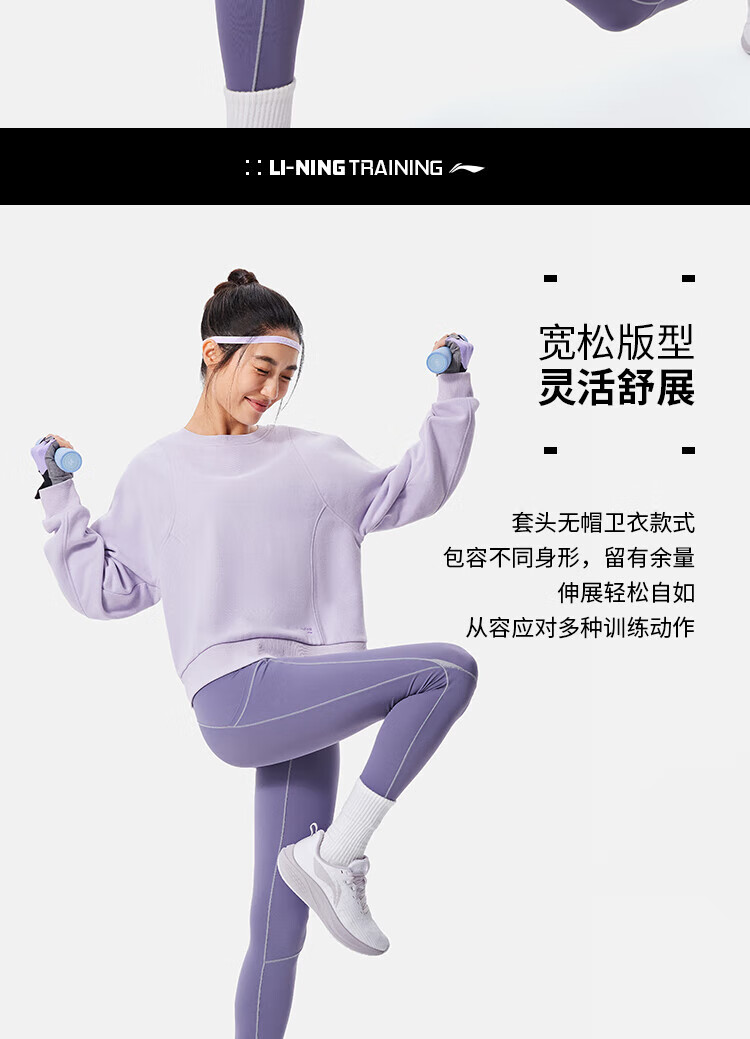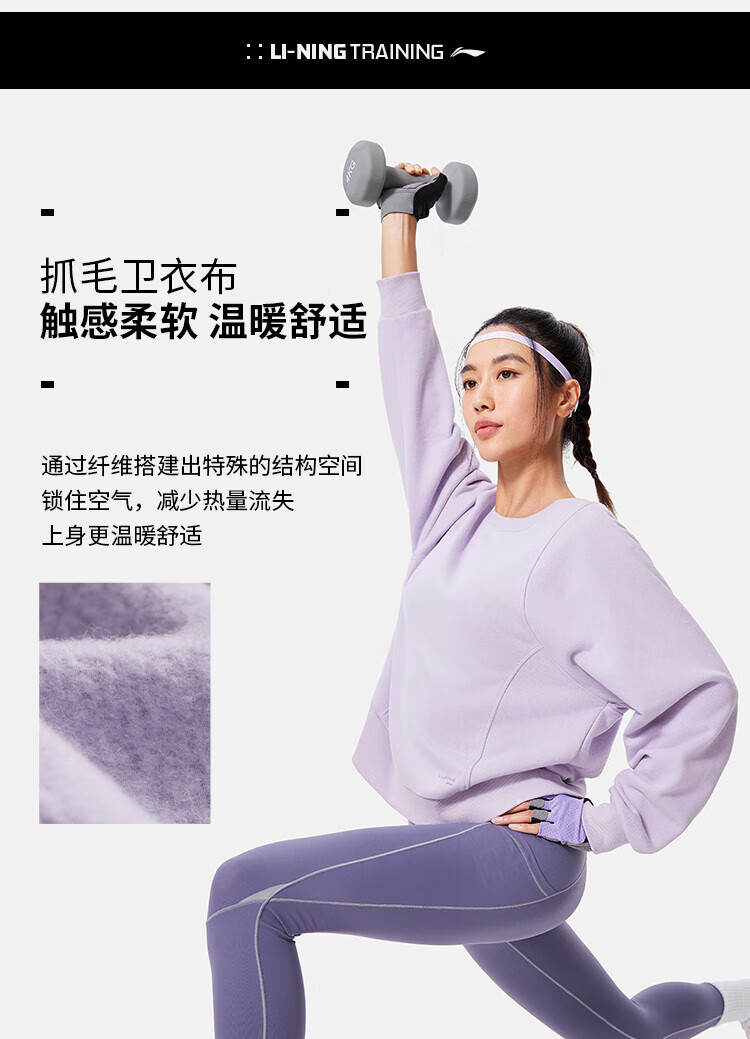 李宁卫衣女加绒圆领套头衫冬季新款宽松运动上衣AWDU556