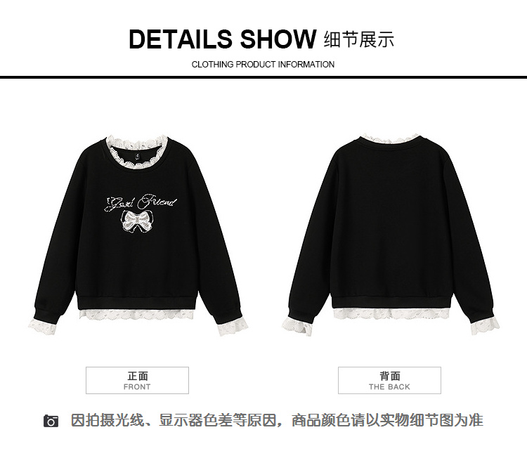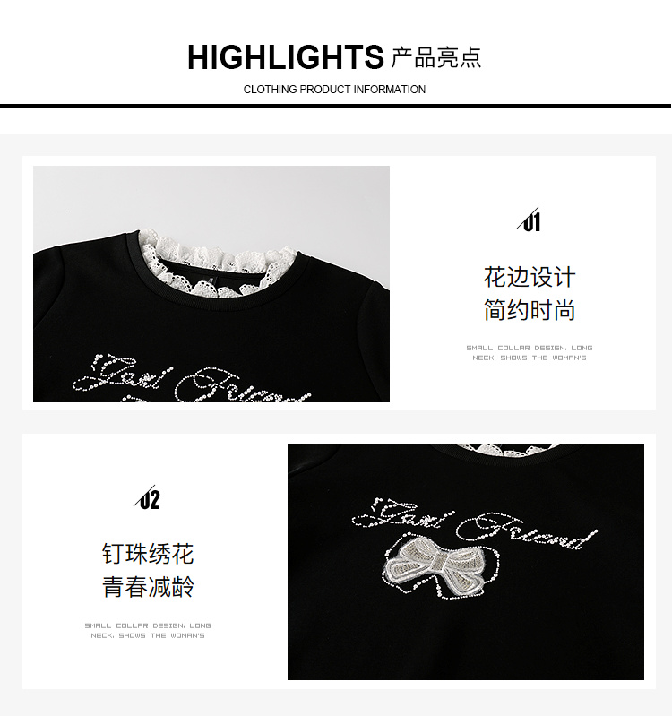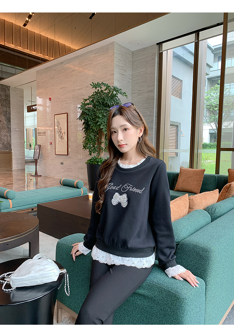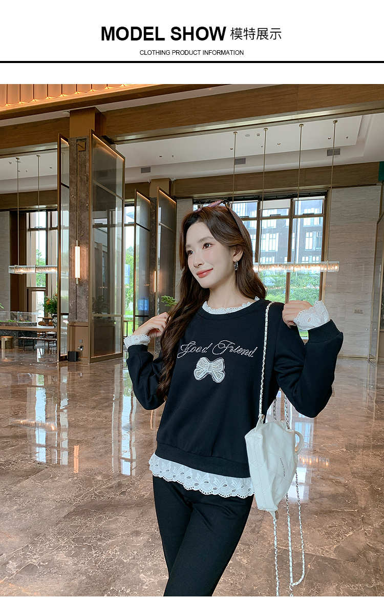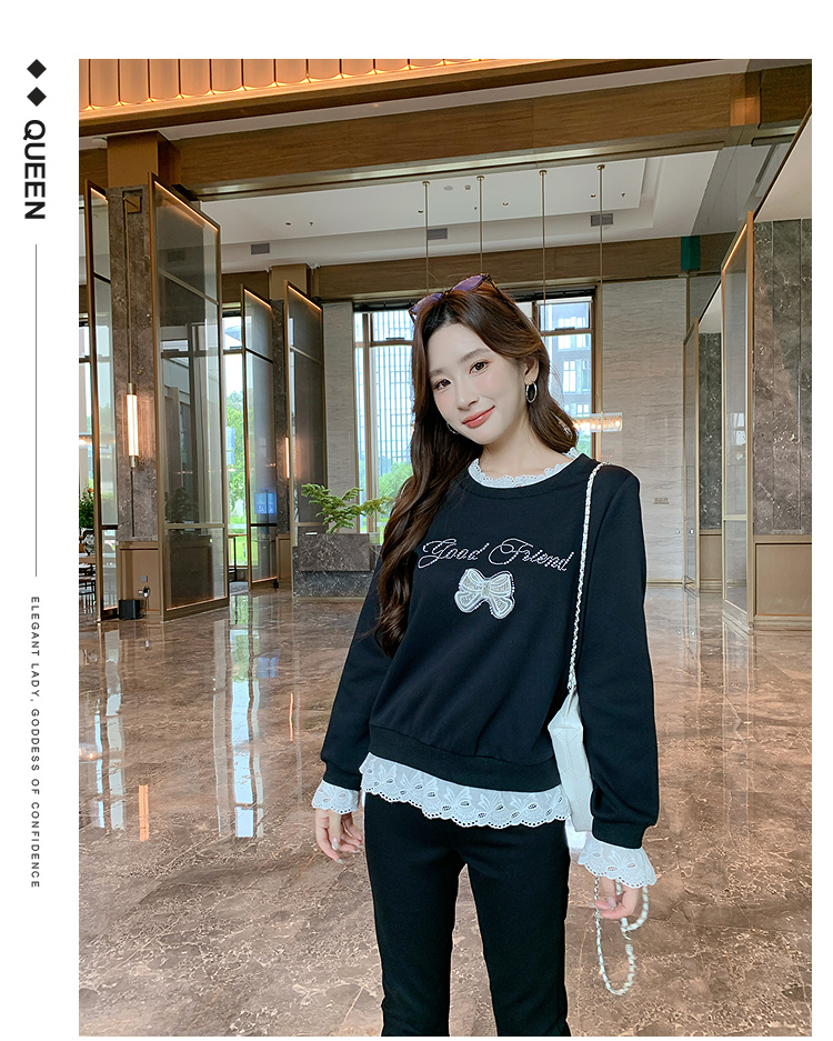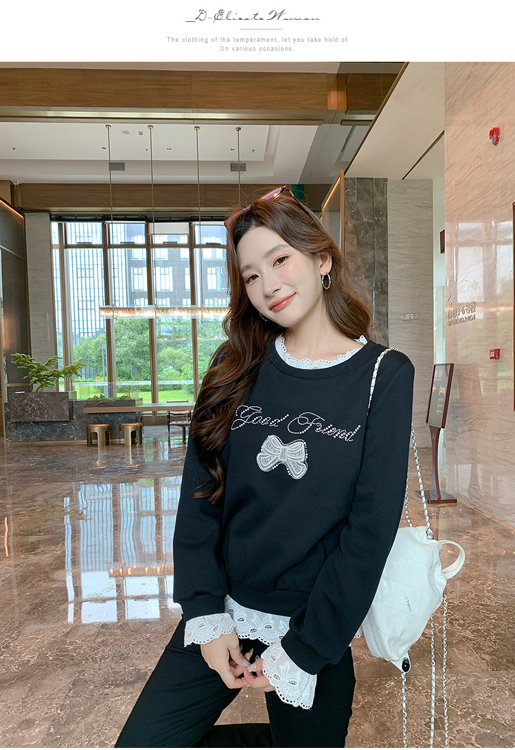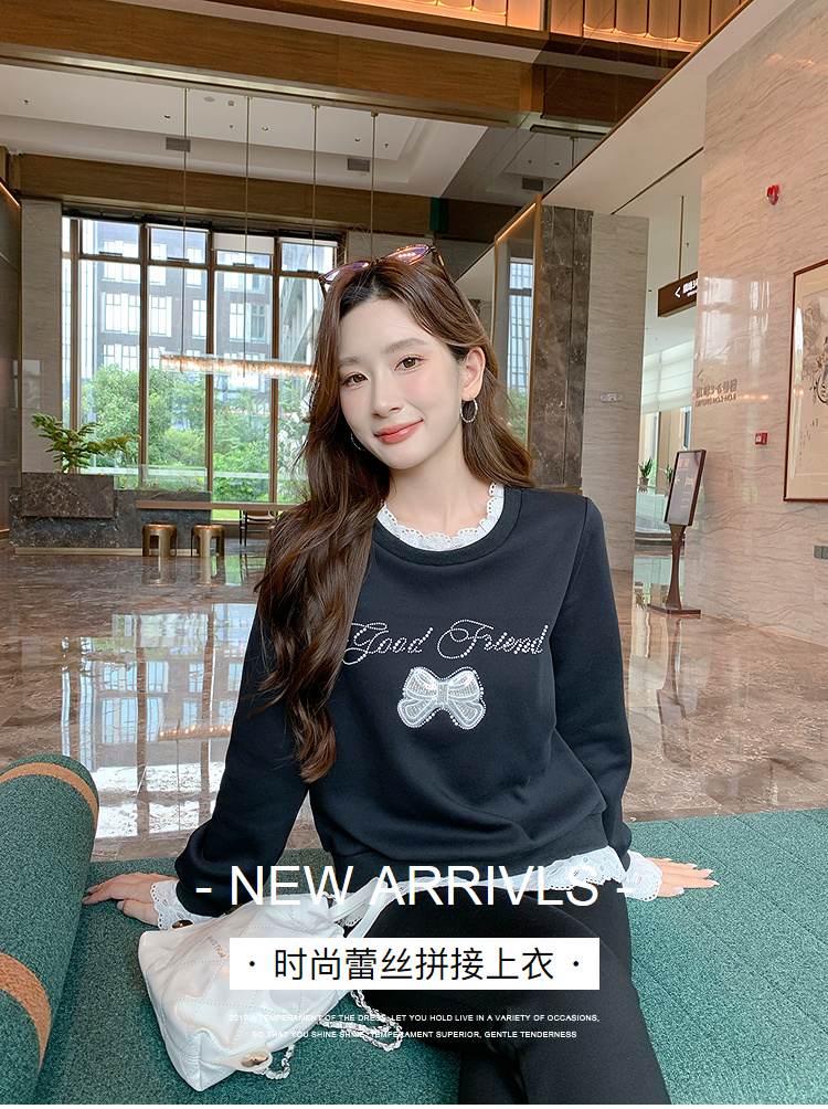奢姿大码女装2025秋季时尚蕾丝拼接卫衣胖妹妹气质烫钻设计上衣9953190639